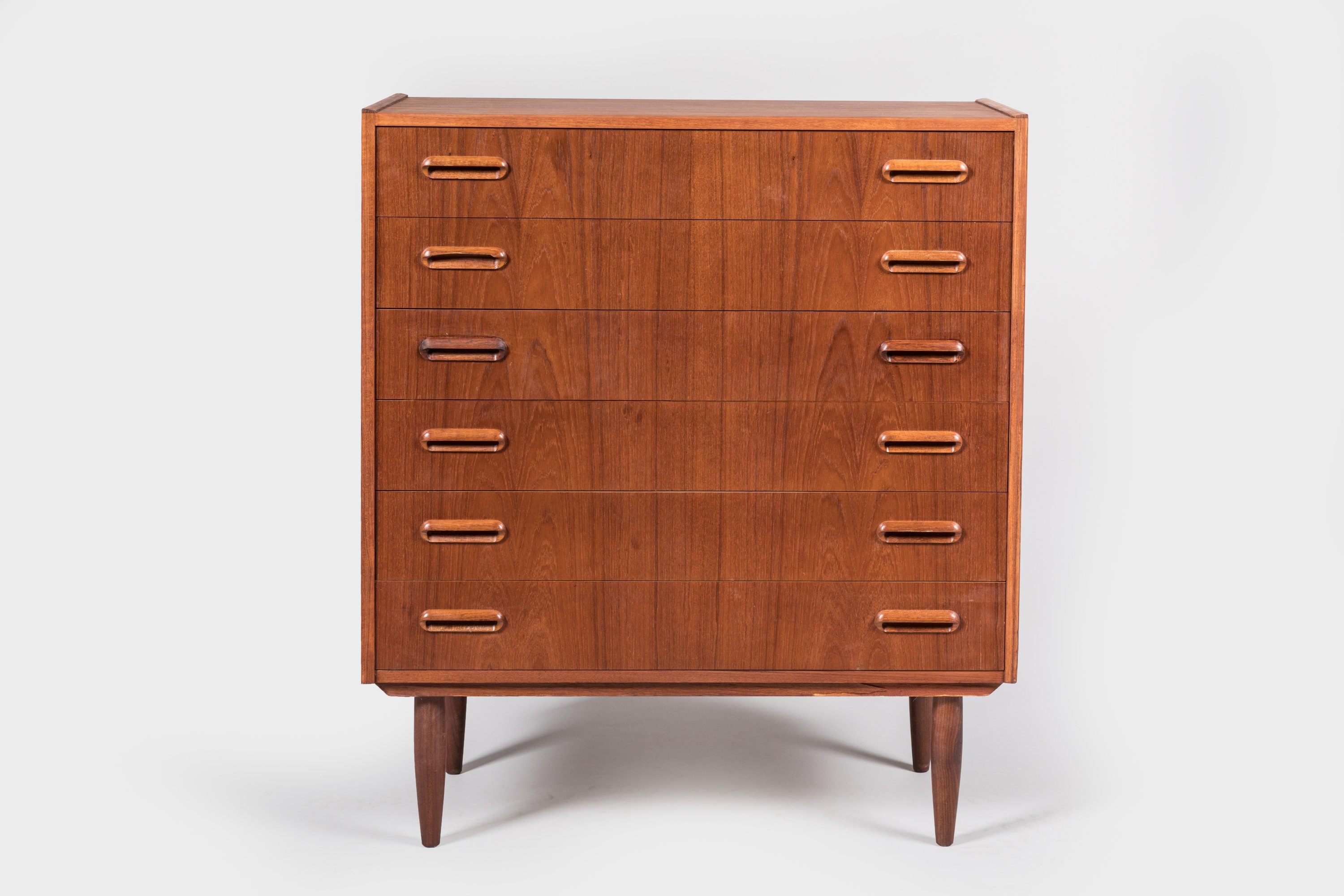 ouvrant par six tiroirs à deux poignées reposant sur quatre pieds fuseaux.