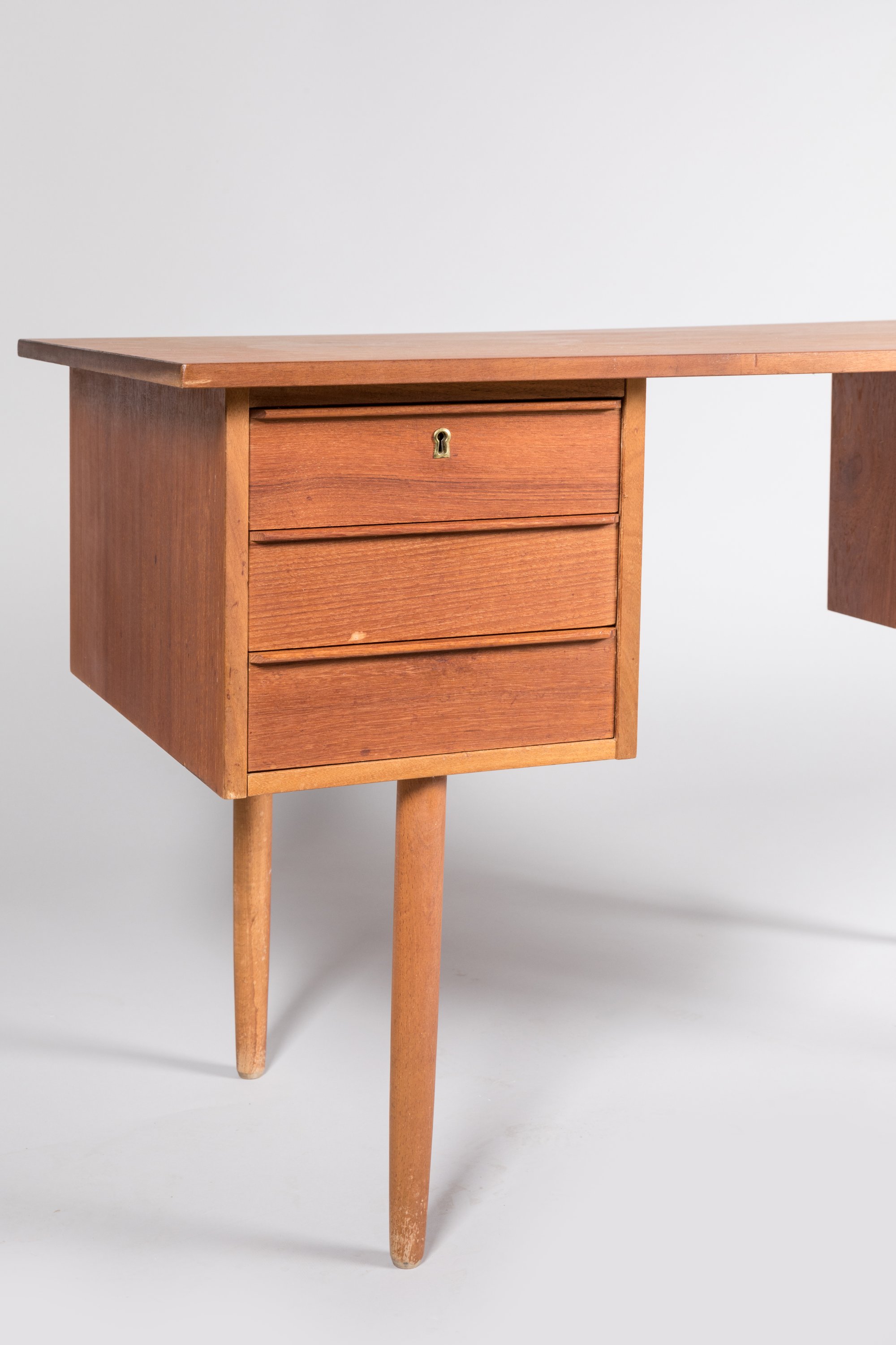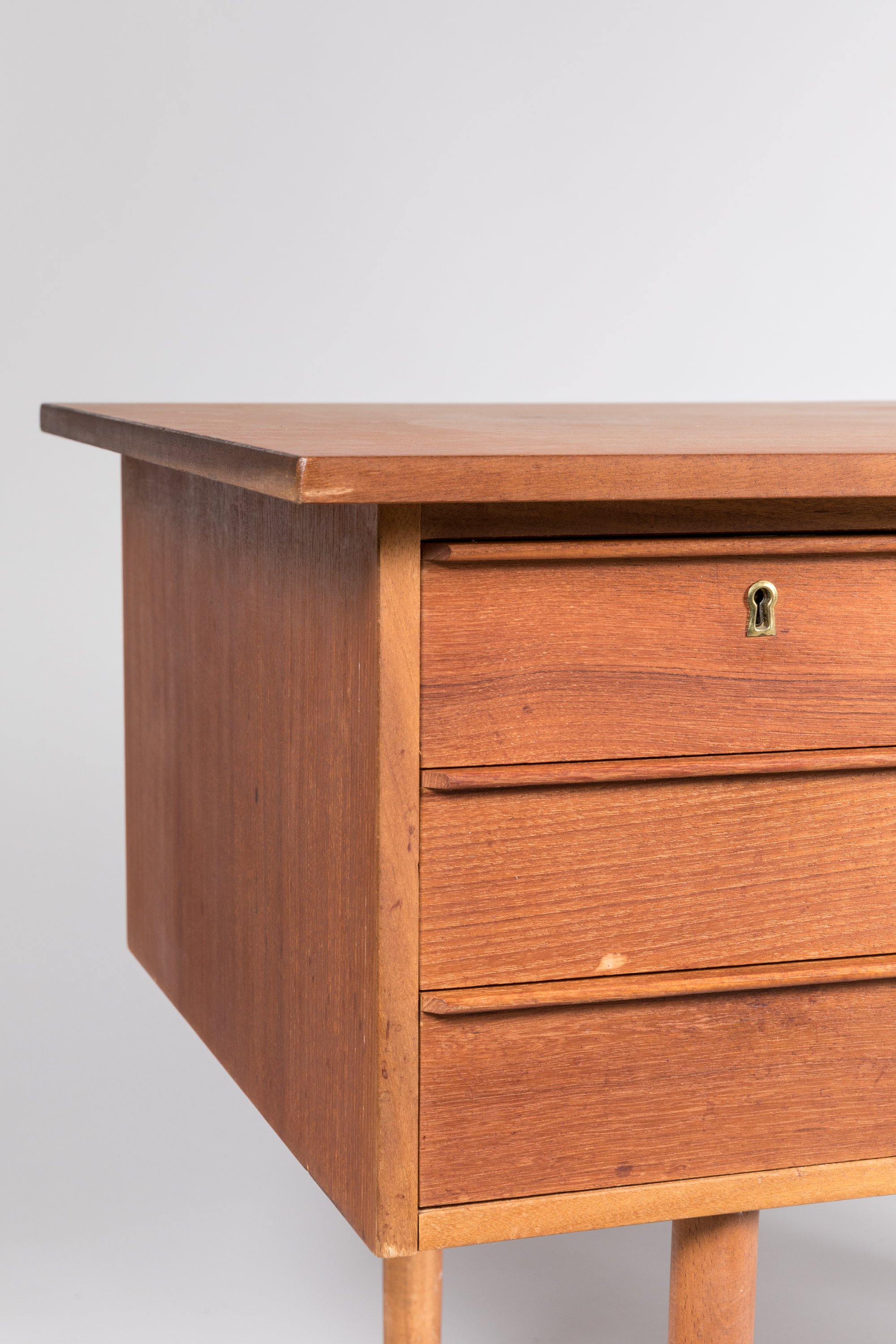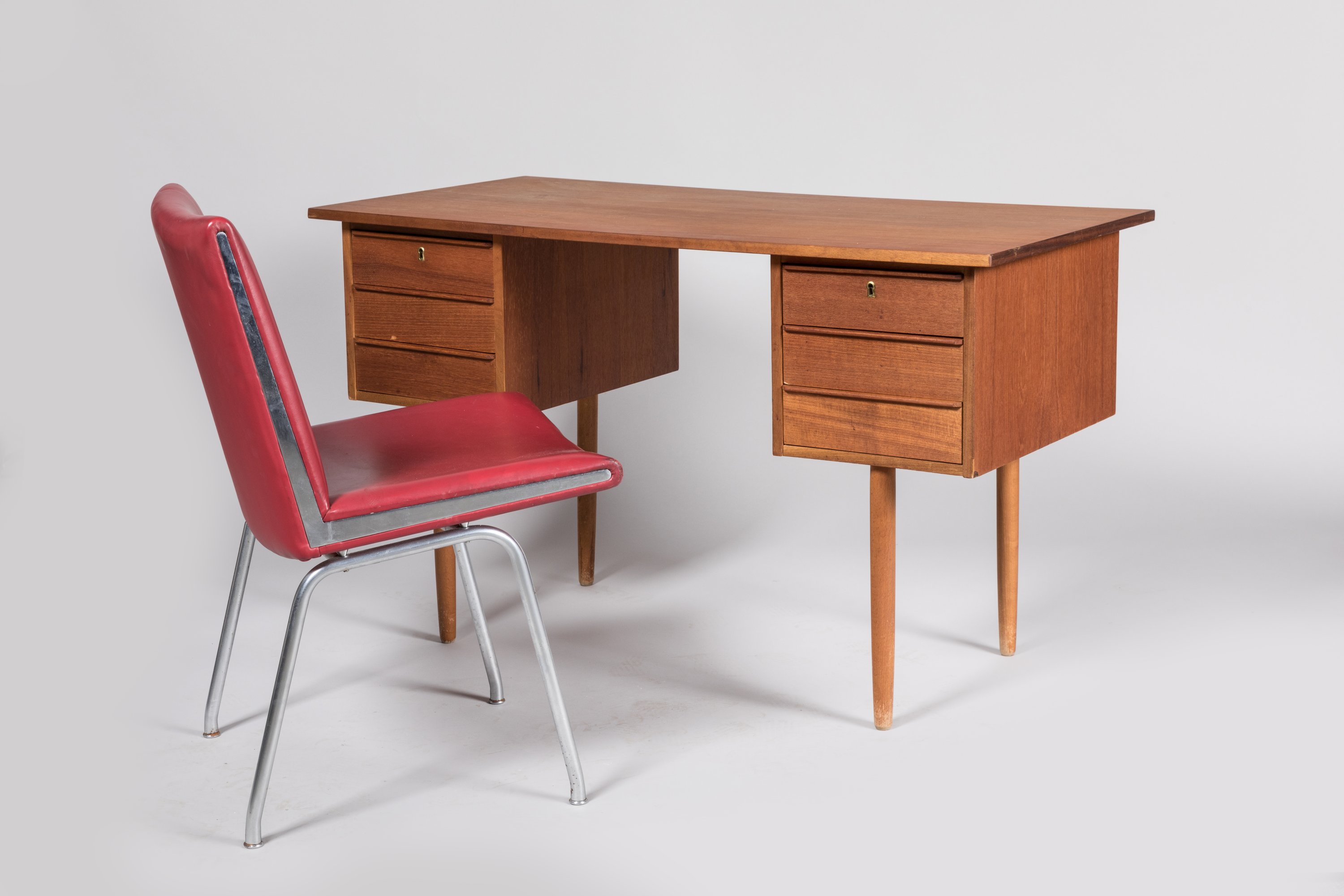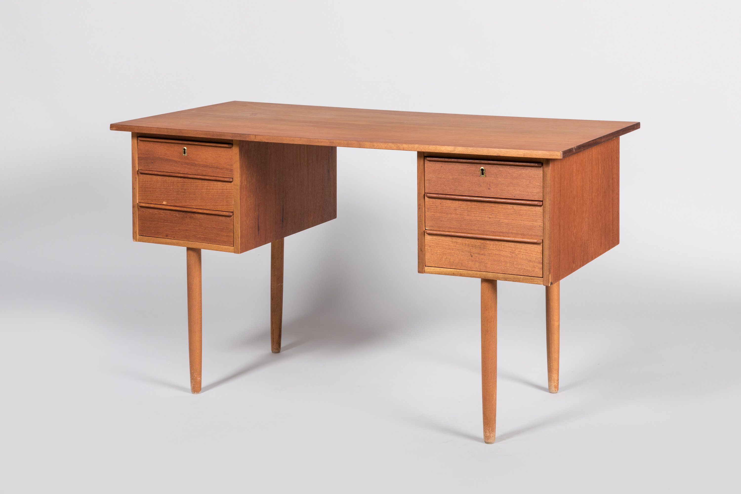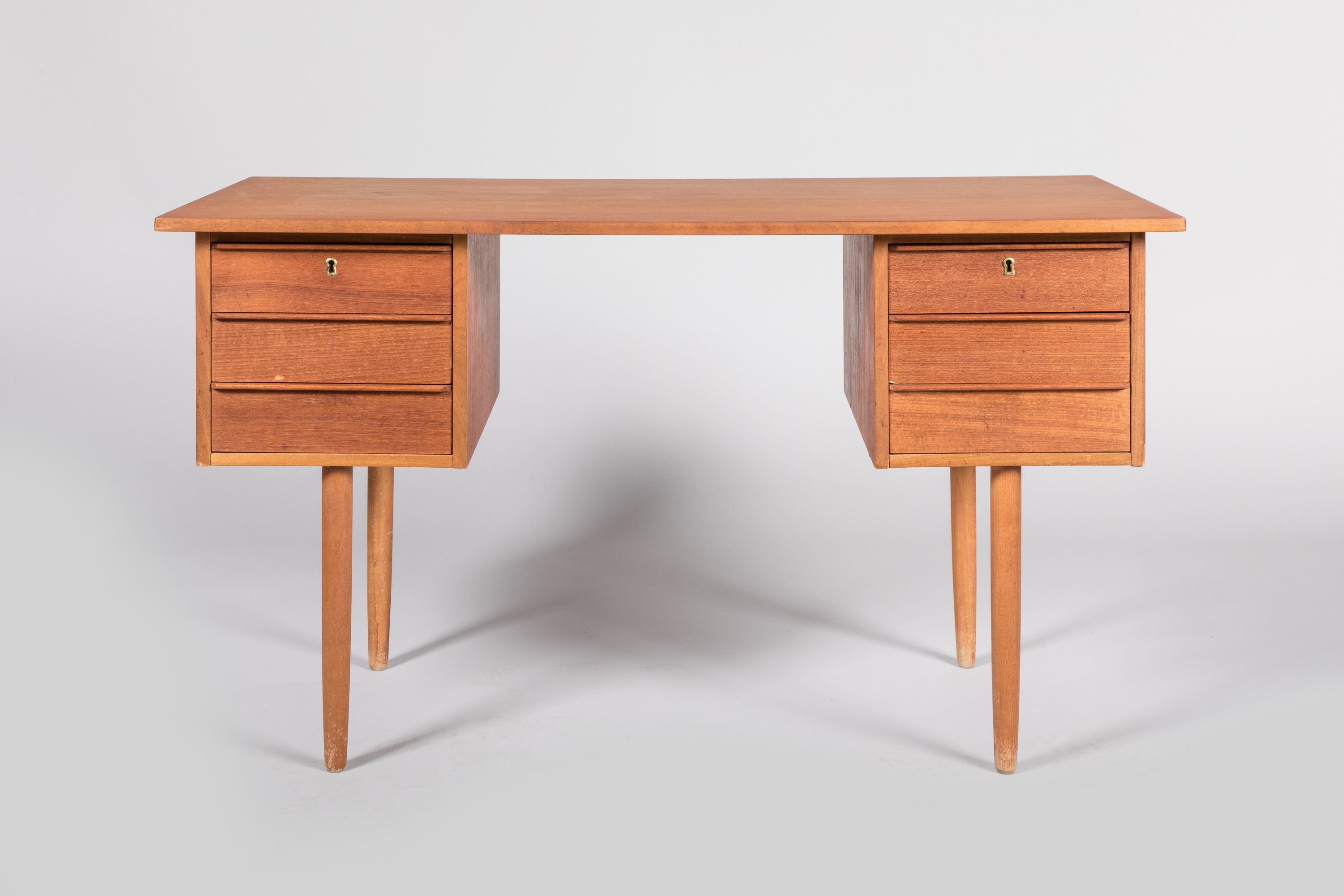 de forme quadrangulaire ouvrant par trois tiroirs de chaque côtés, reposant sur quatre pieds fuseaux.