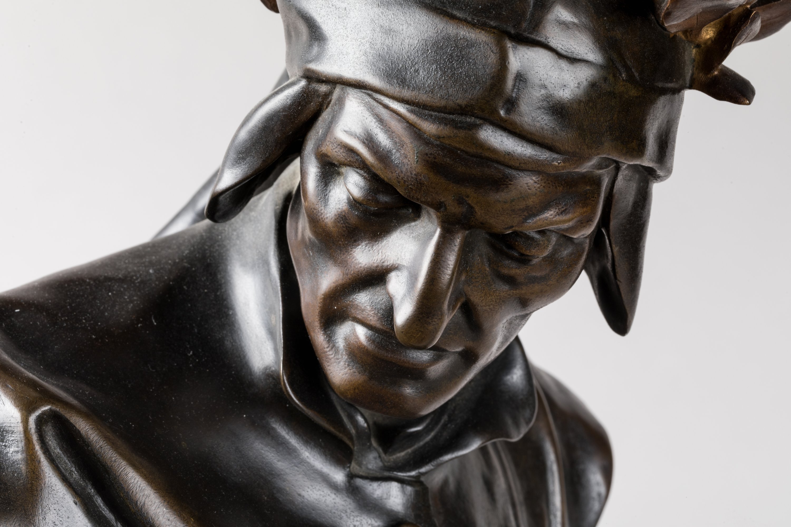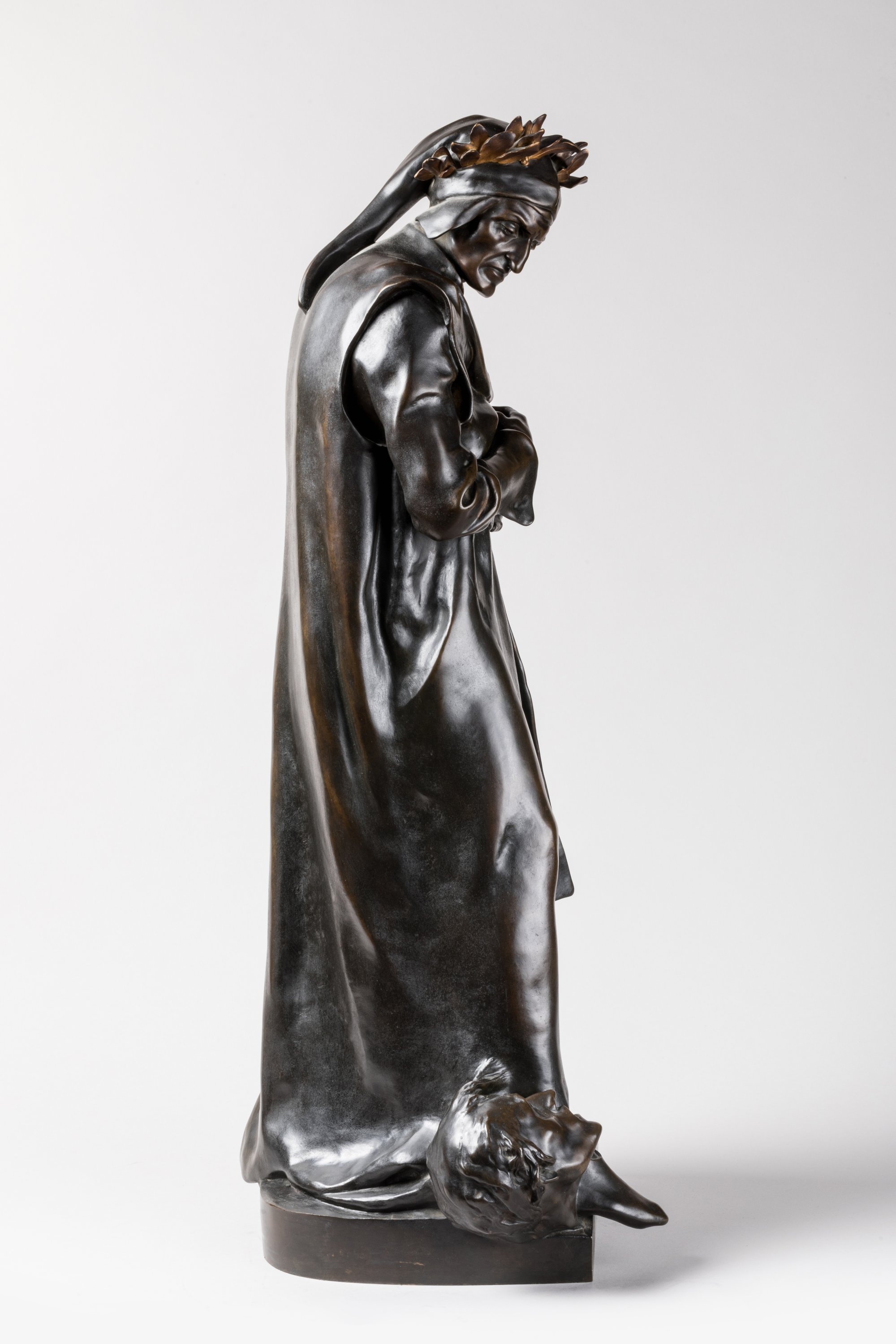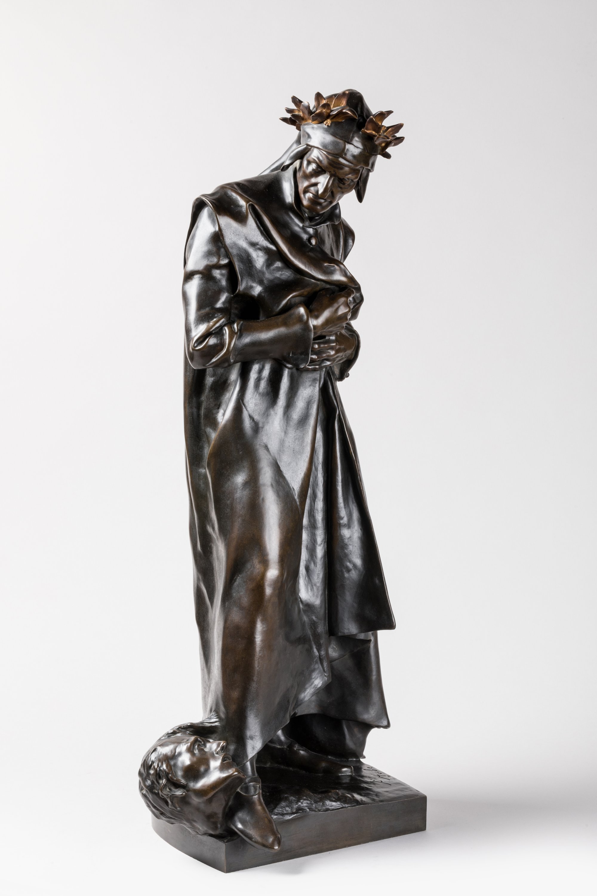 Le musée d'Orsay conserve la réduction en plâtre (RF 2622) de cette statue, dont le grand plâtre original a été acquis pour 5000 francs par la ville de Paris au Salon de 1879 (n°4765). Le tirage en bronze en grandeur est situé devant le college de France depuis 1880, tandis que le fondeur Thiébaut frères édite la plus grande des réductions en bronze de ce célèbre Dante.