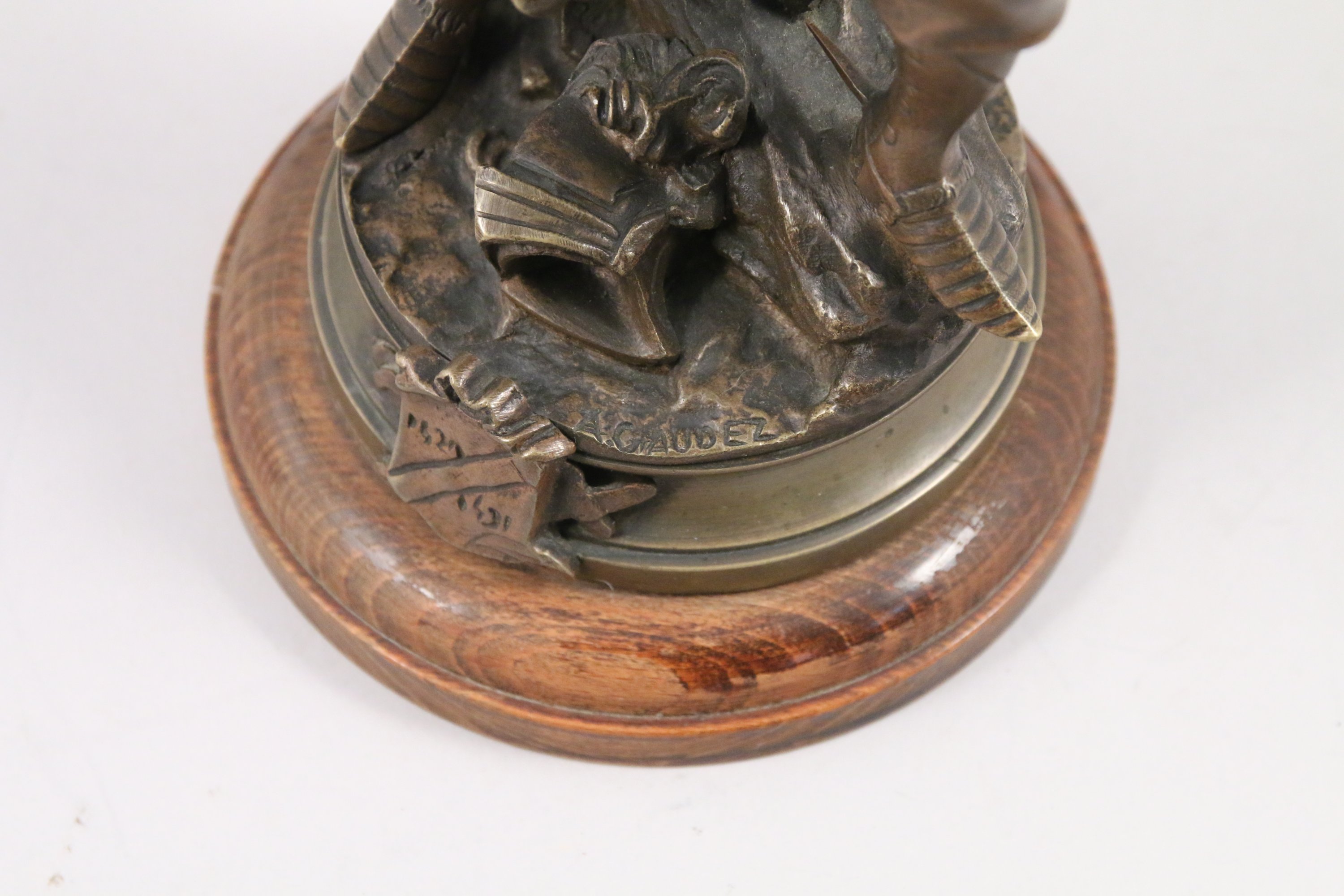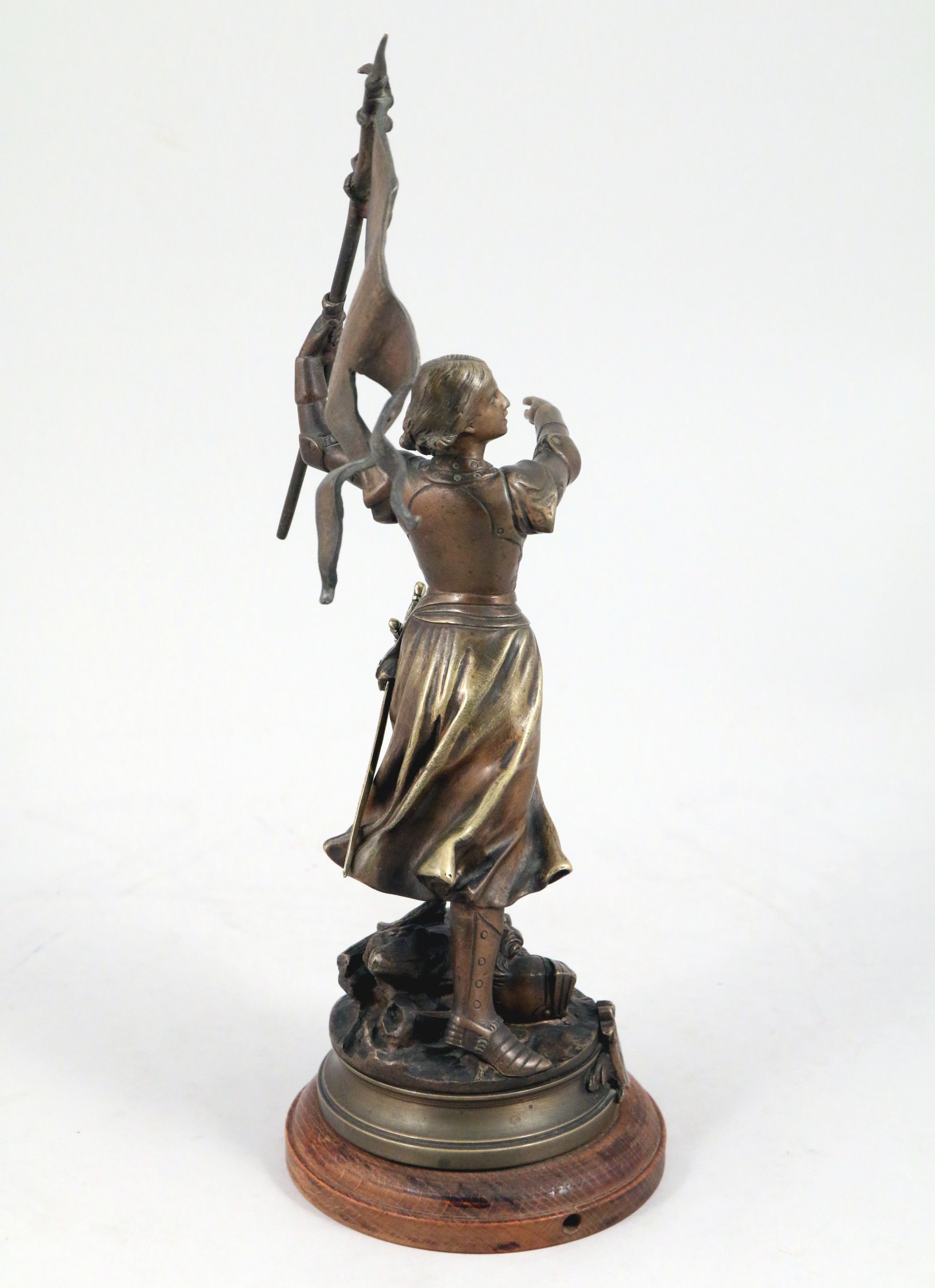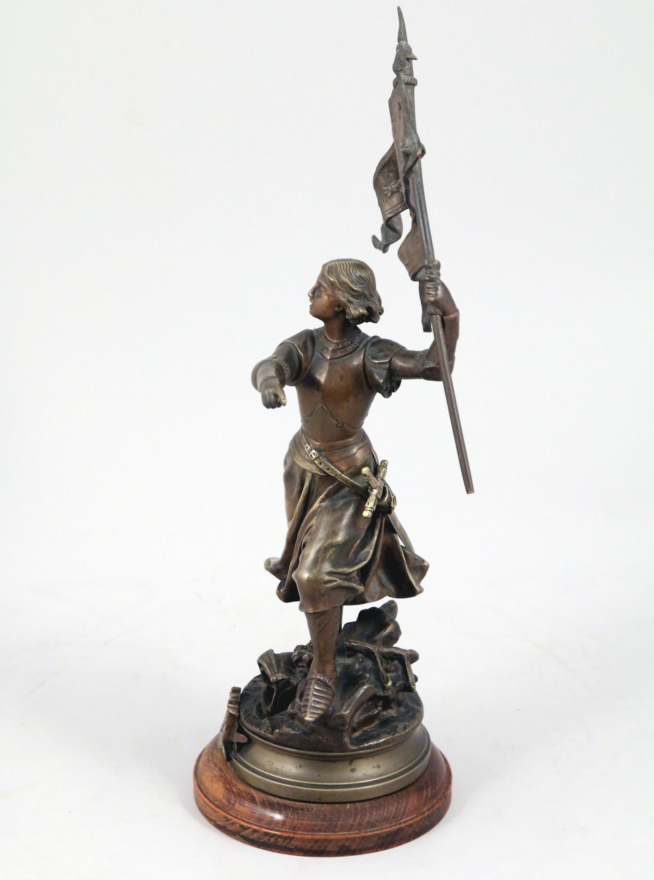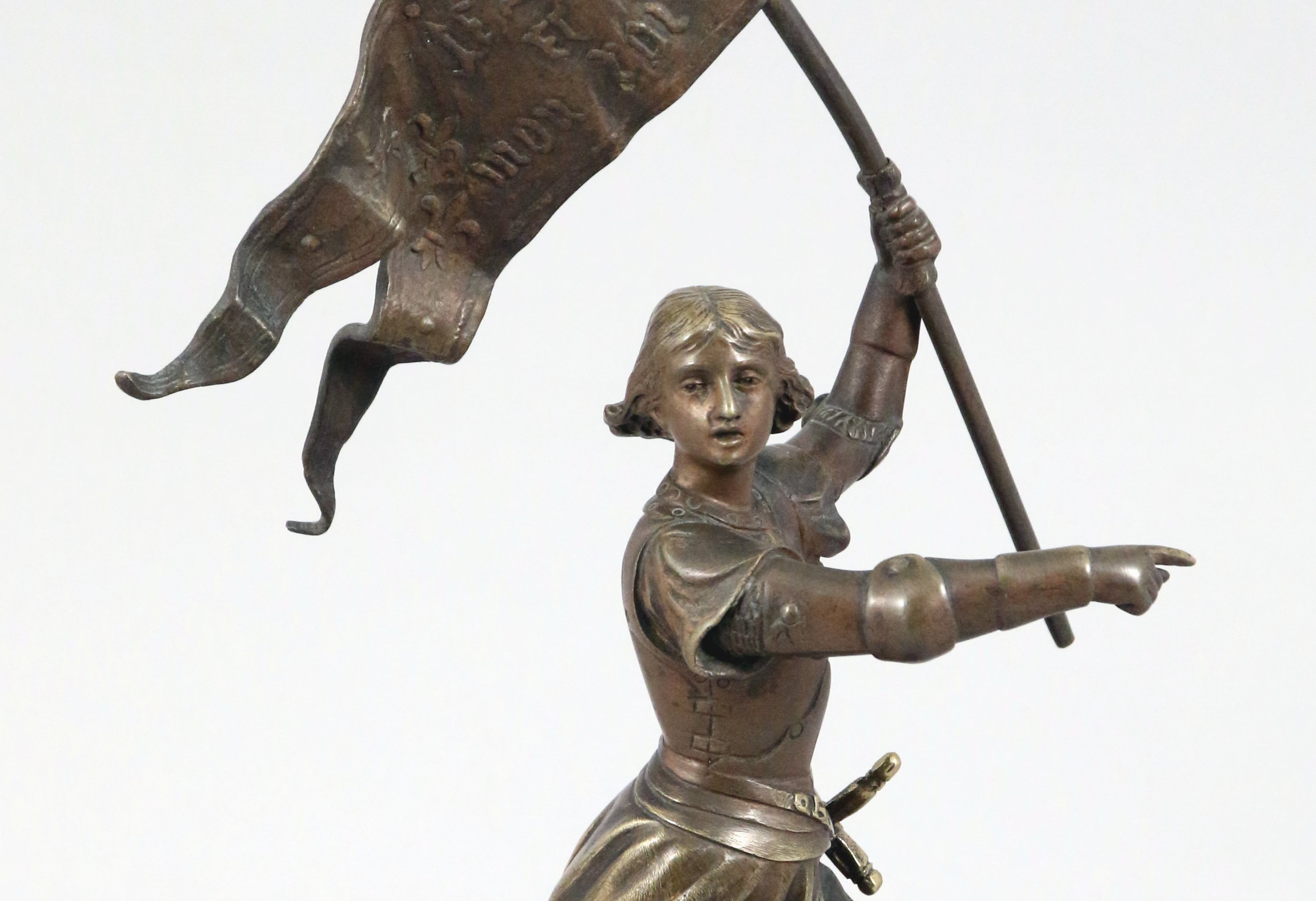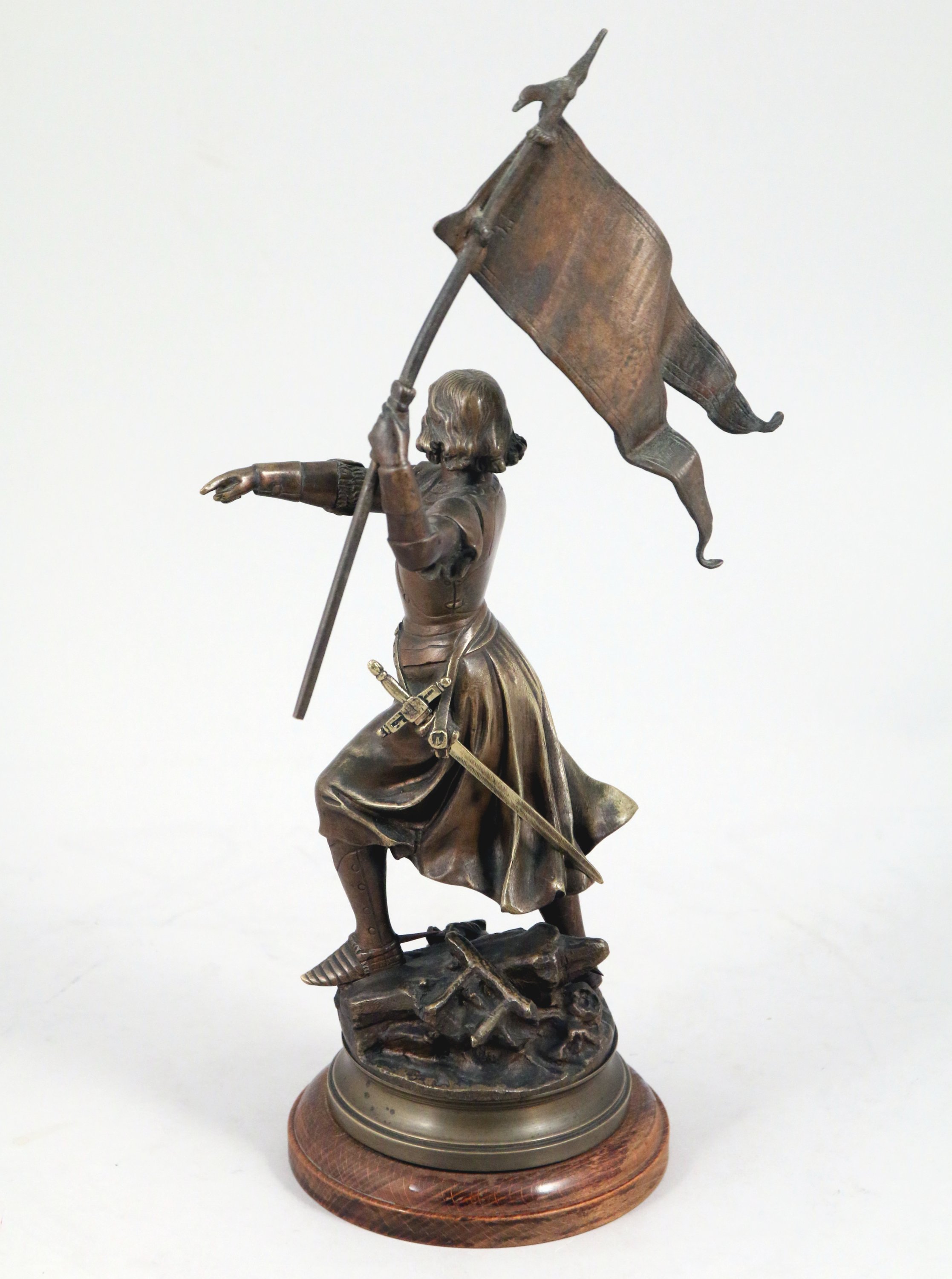 Bronze à patine médaille, l'étandanrd incris "JESUS ET MON ROI", l'épée amovible à sa ceinture. Signée sur la terrasse "A .GAUDEZ".