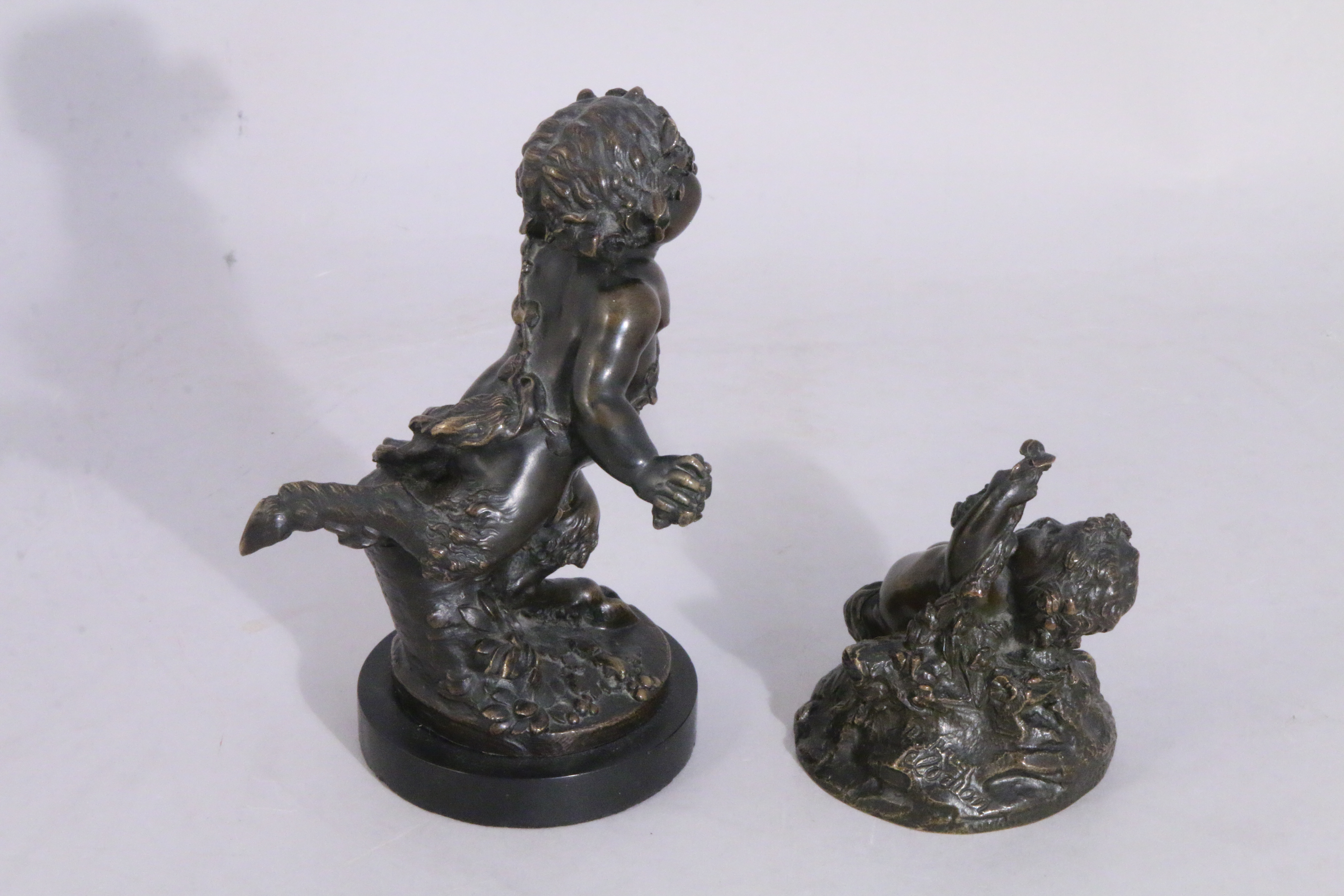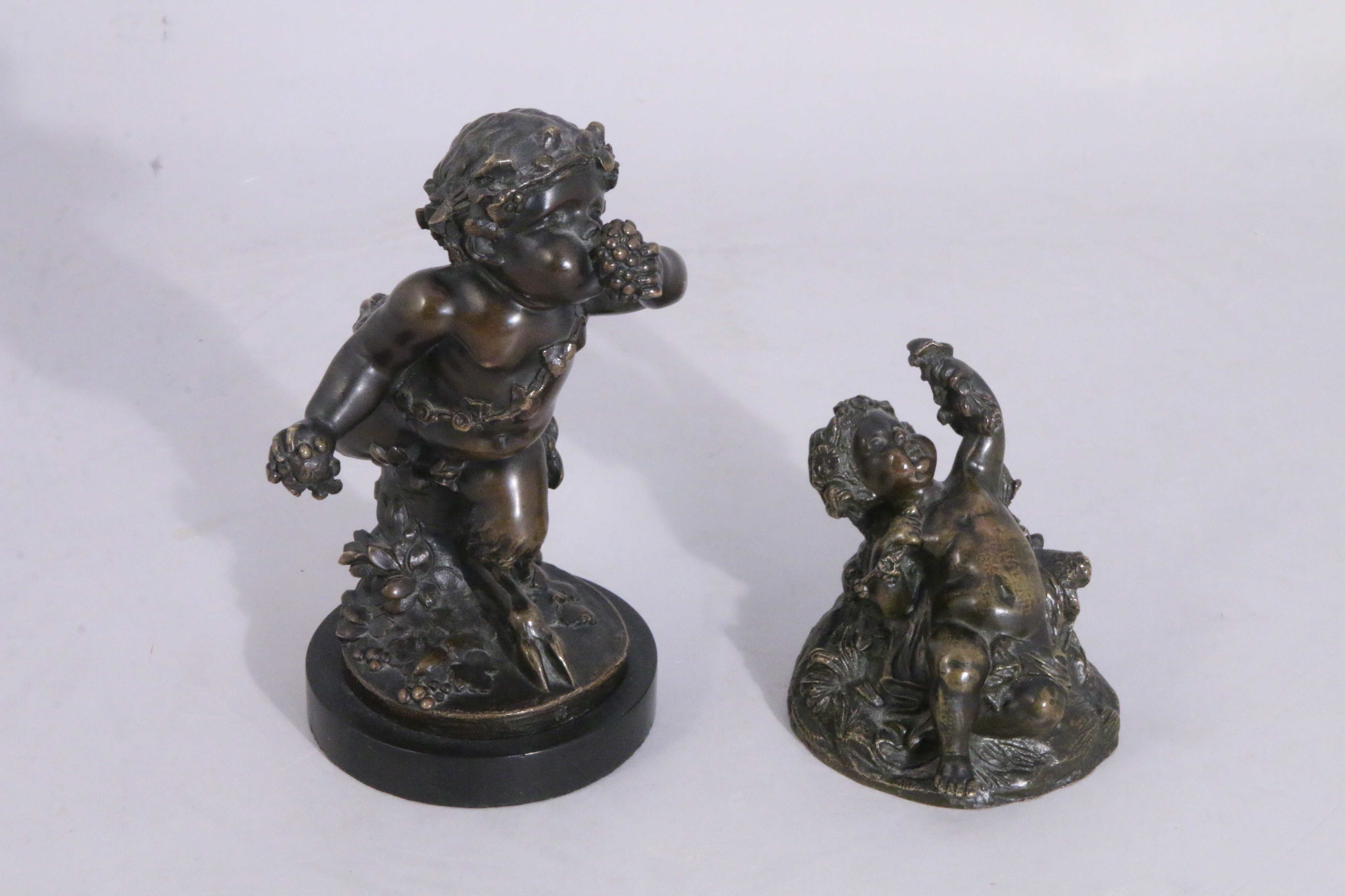 Deux bronzes patinés, l'un signé "d'après Clodion", le plus grand avec le cachet de fondeur de Victor Paillard..