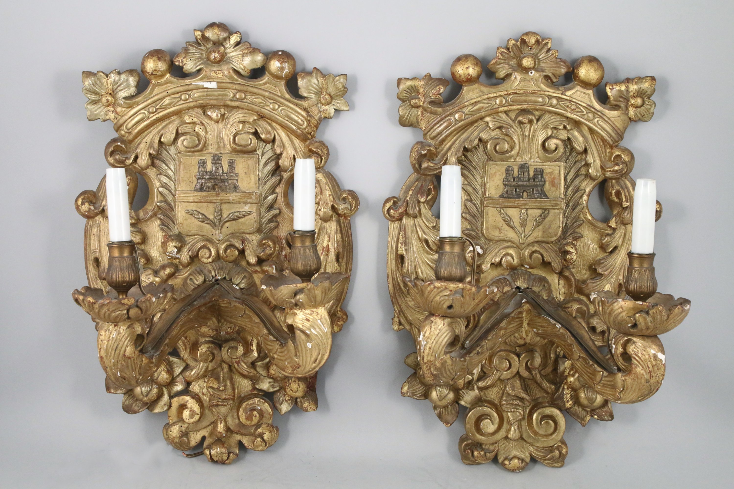 en bois sculpté et doré aux armes attribuées au Marquis Thomas de Graneri.