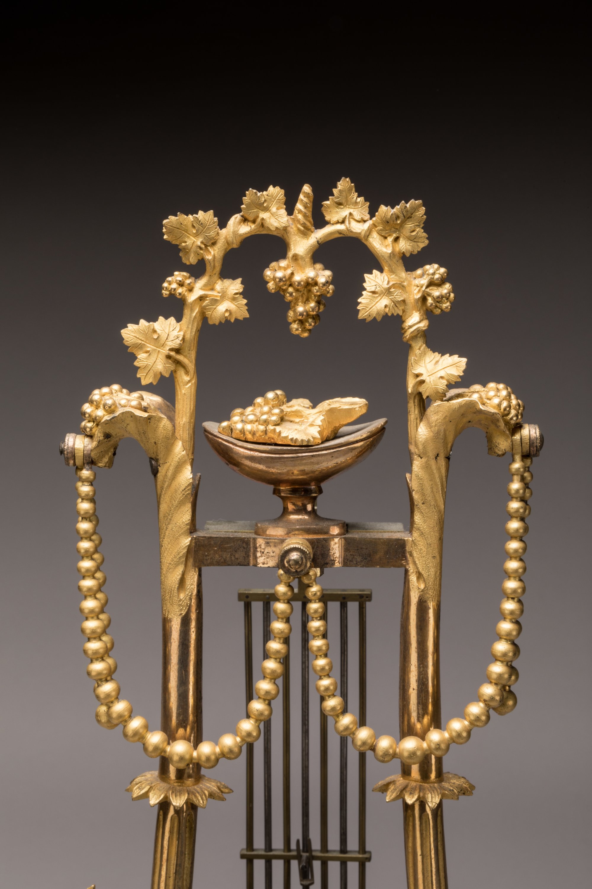 Les montants figurant des feuillages terminés par des épis de blés, se terminant au sommet par des pampres de vignes et des chutes de perles. Ils forment à l'amortissement une niche dans laquelle repose une coupe garnie de grappes de raisins.