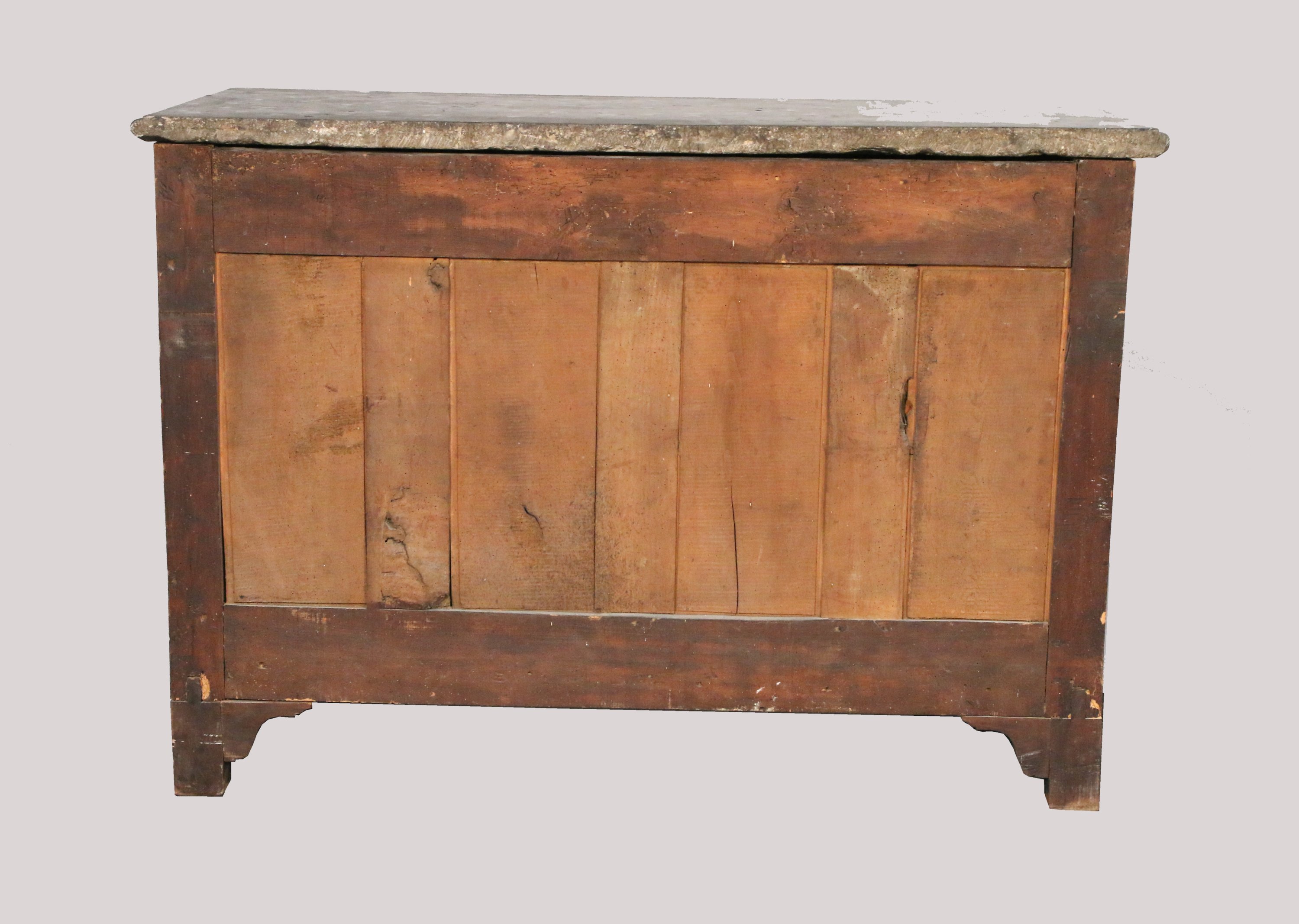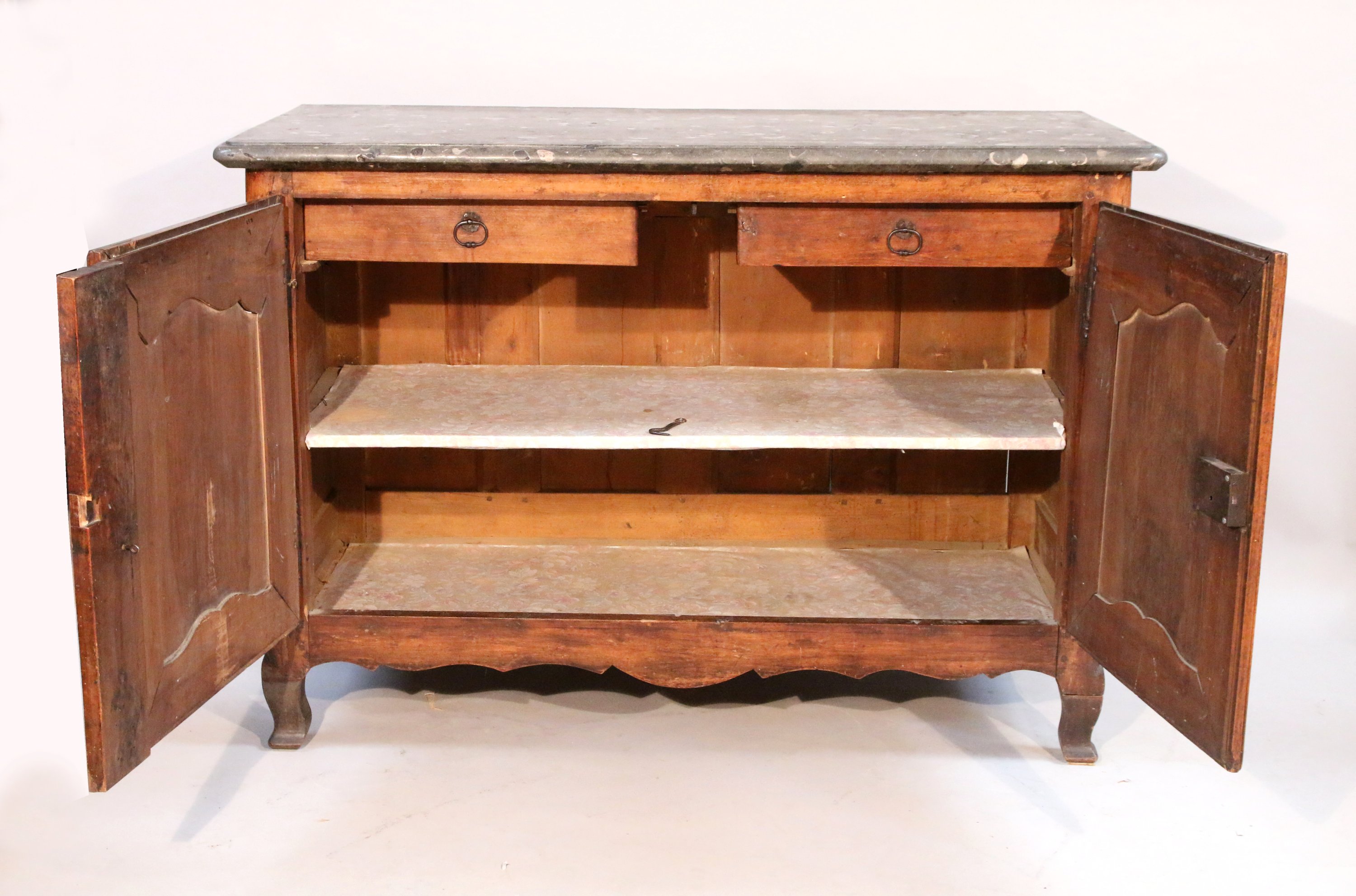 ouvrant en façade par deux portes battantes moulurées, le tablier de forme chantournée. Il repose sur quatre pieds, les antérieurs courbes, les postérieurs droits. Dessus de marbre noir.