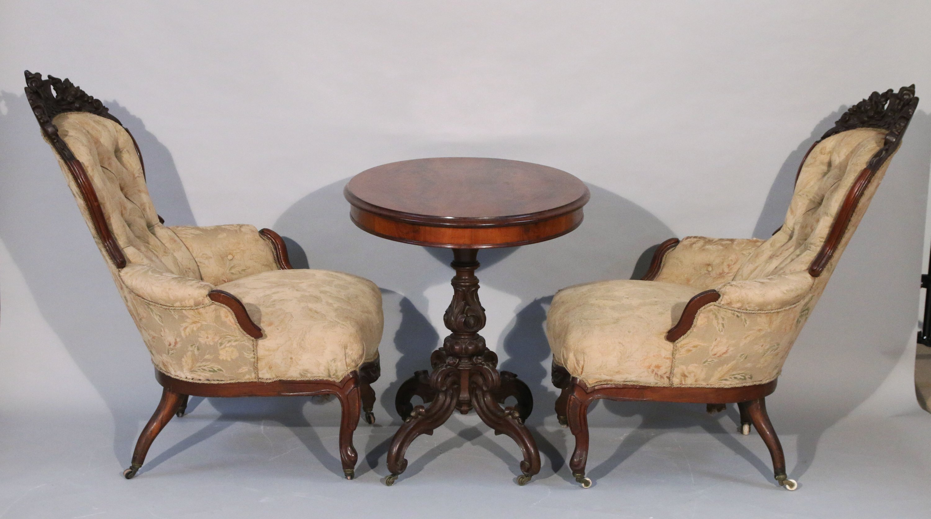 comprenant: un guéridon, deux fauteuis évasés et un canapé