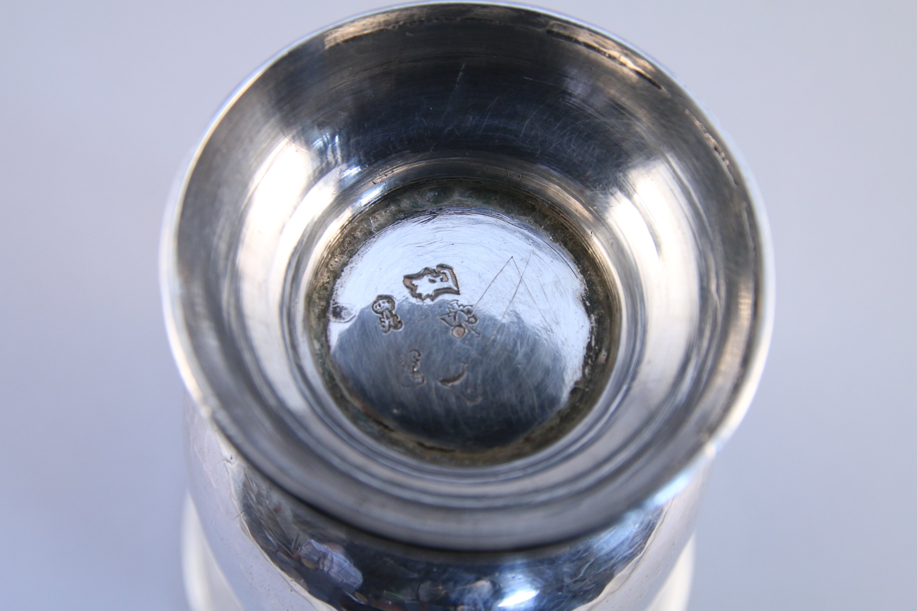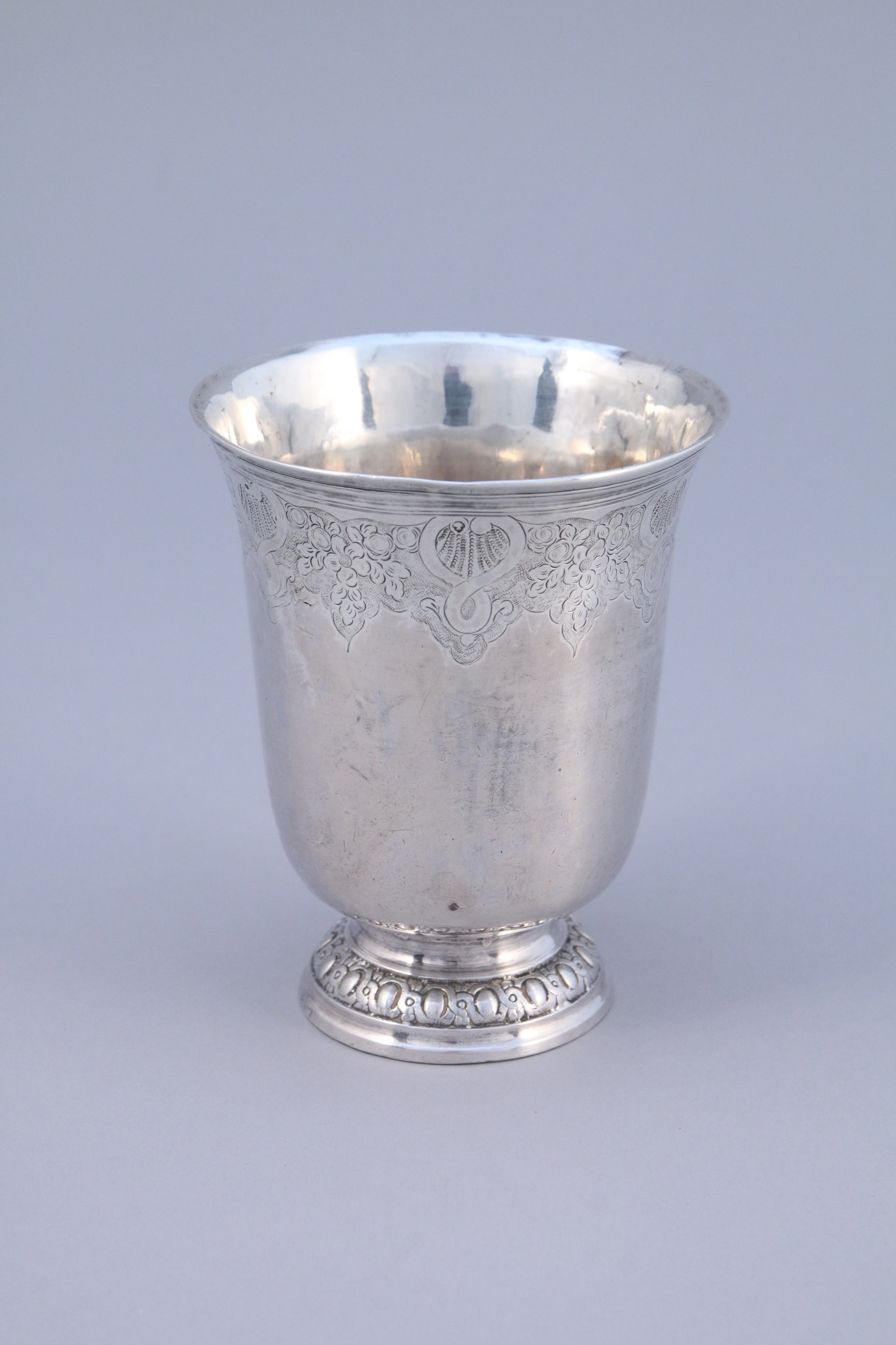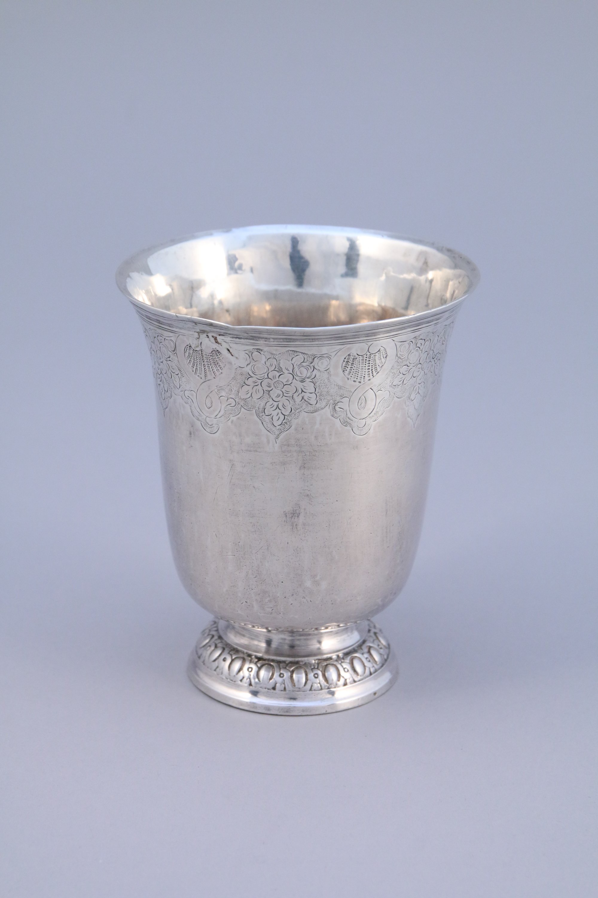 PARIS. TIMBALE TULIPE en argent gravé de filets et d'une frise de lambrequins sur le pourtour. Piédouche à motifs d'une frise d'oves gravé "L G CHABERT".