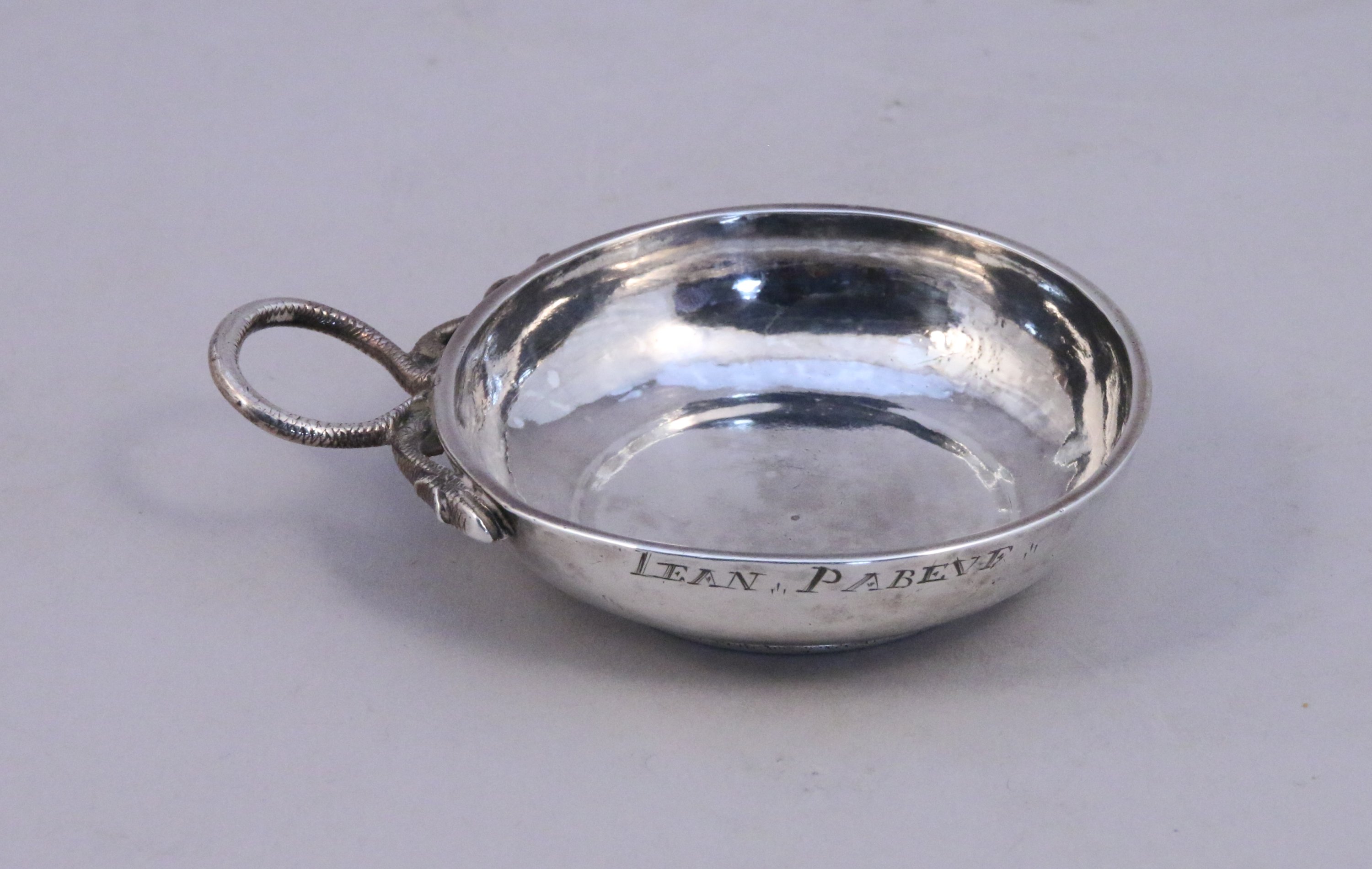 NANTES. TASTEVIN en argent uni gravé "LEAN PABEVF". Anse serpentiforme.