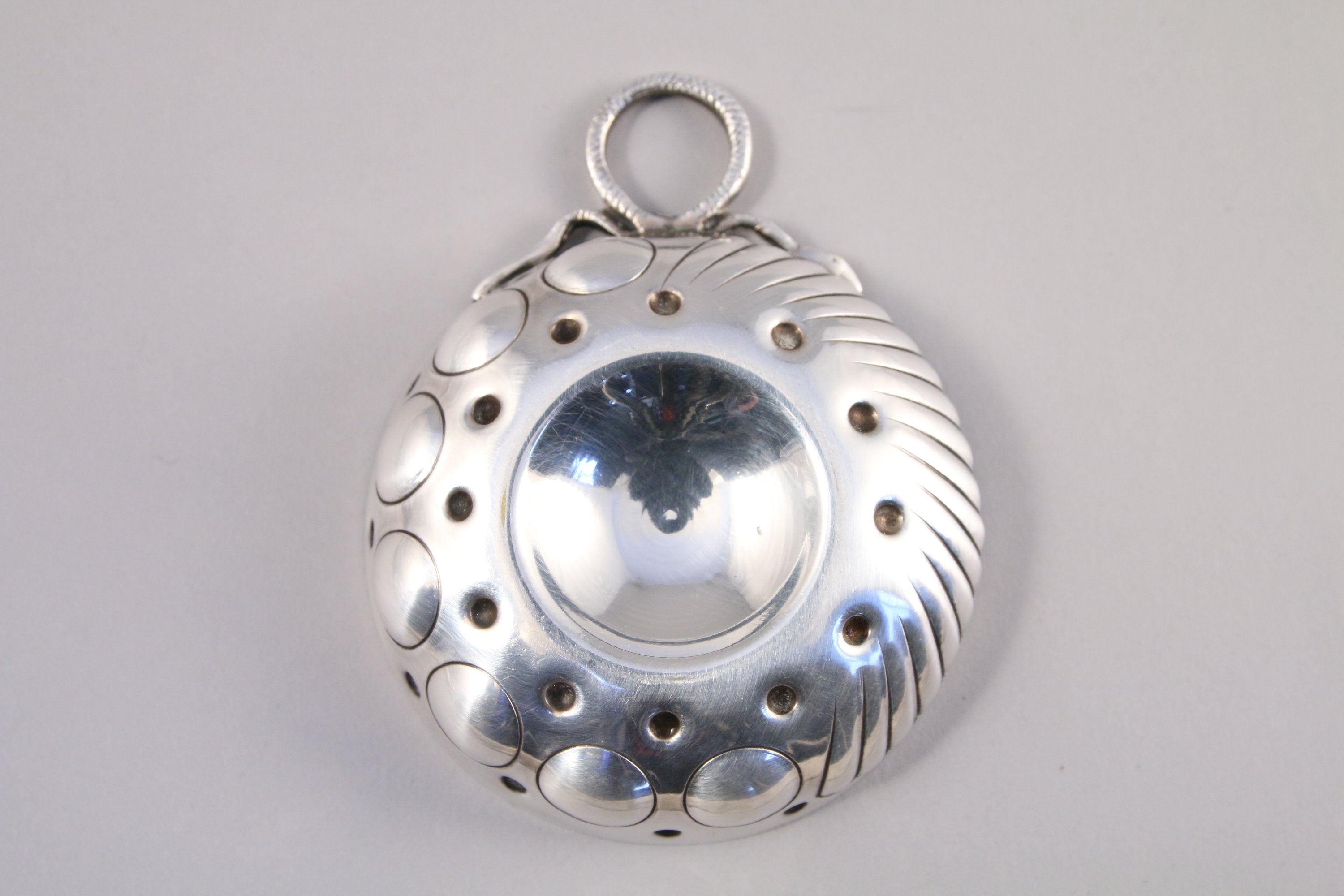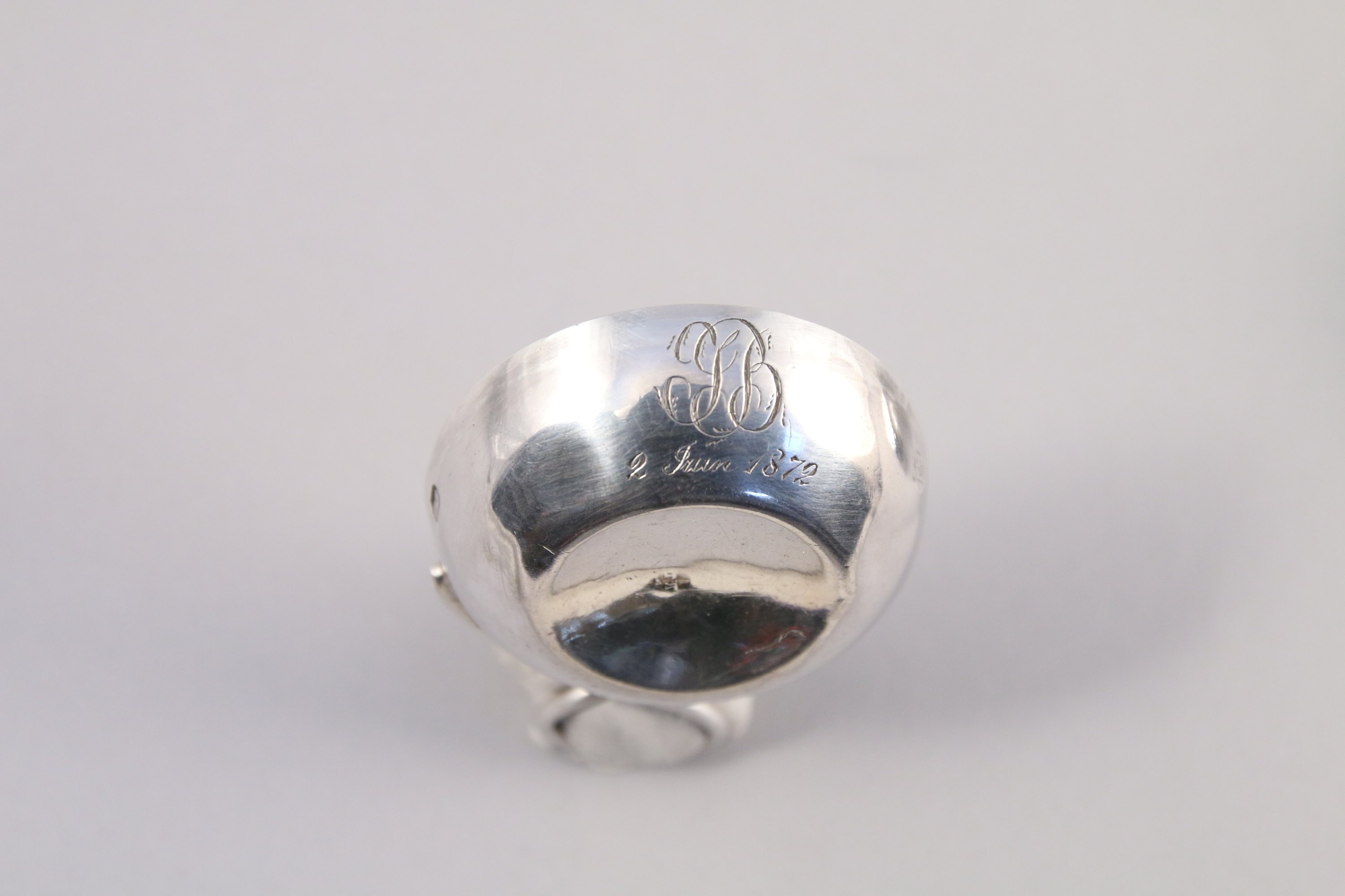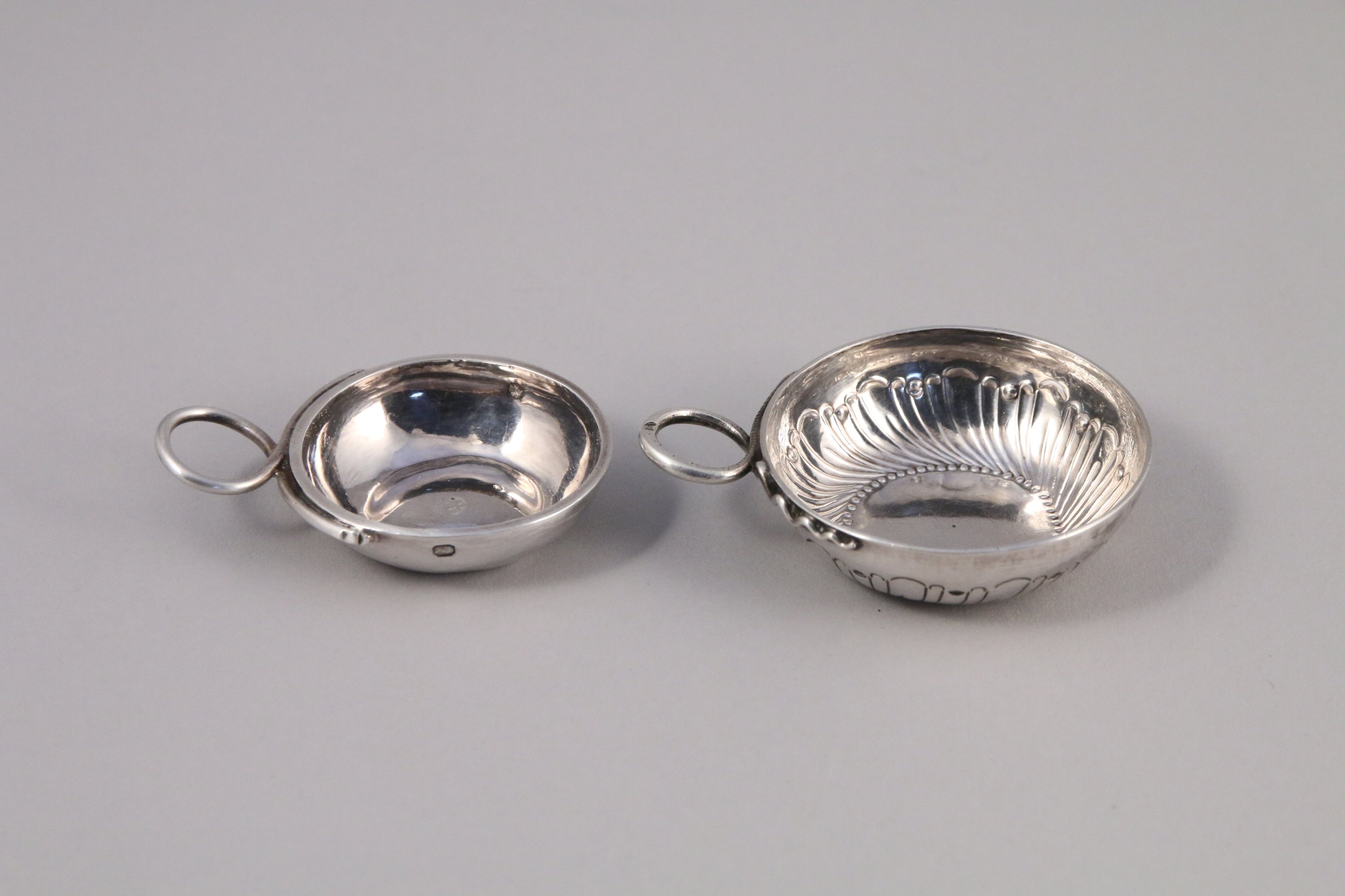 - TASTE-VIN, le corp uni gravé "JB 2 Juin 1872". Poinçon Vielllard premier titre Paris. Orfèvre: Theodor Tonnelier. Diam. 5 cm. Poids 25 g.