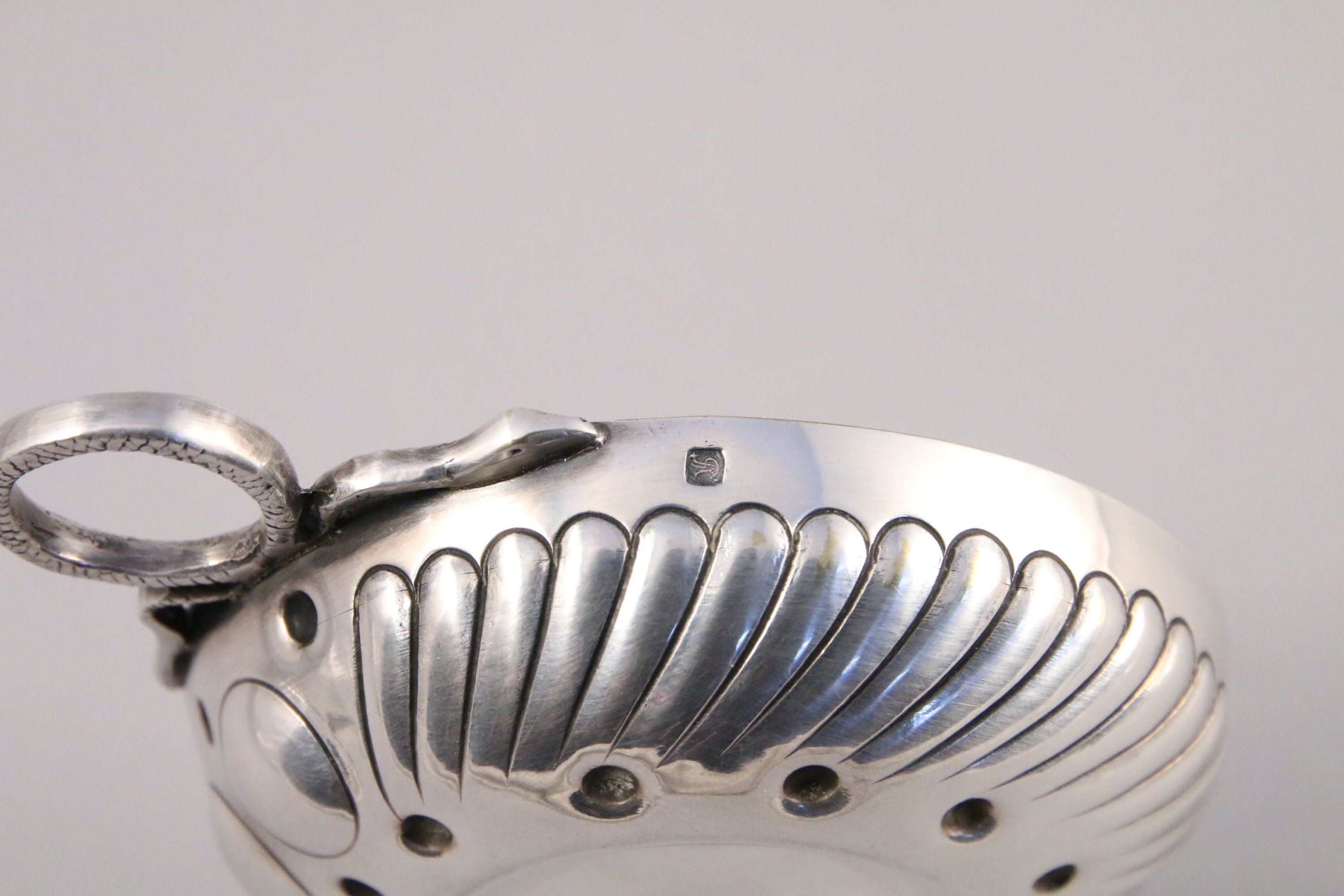 -TASTE-VIN. Le fond à godrons et perles. Anse sepentiforme. Poinçon Minerve XXe. Diam.6 cm. Poids30 g.