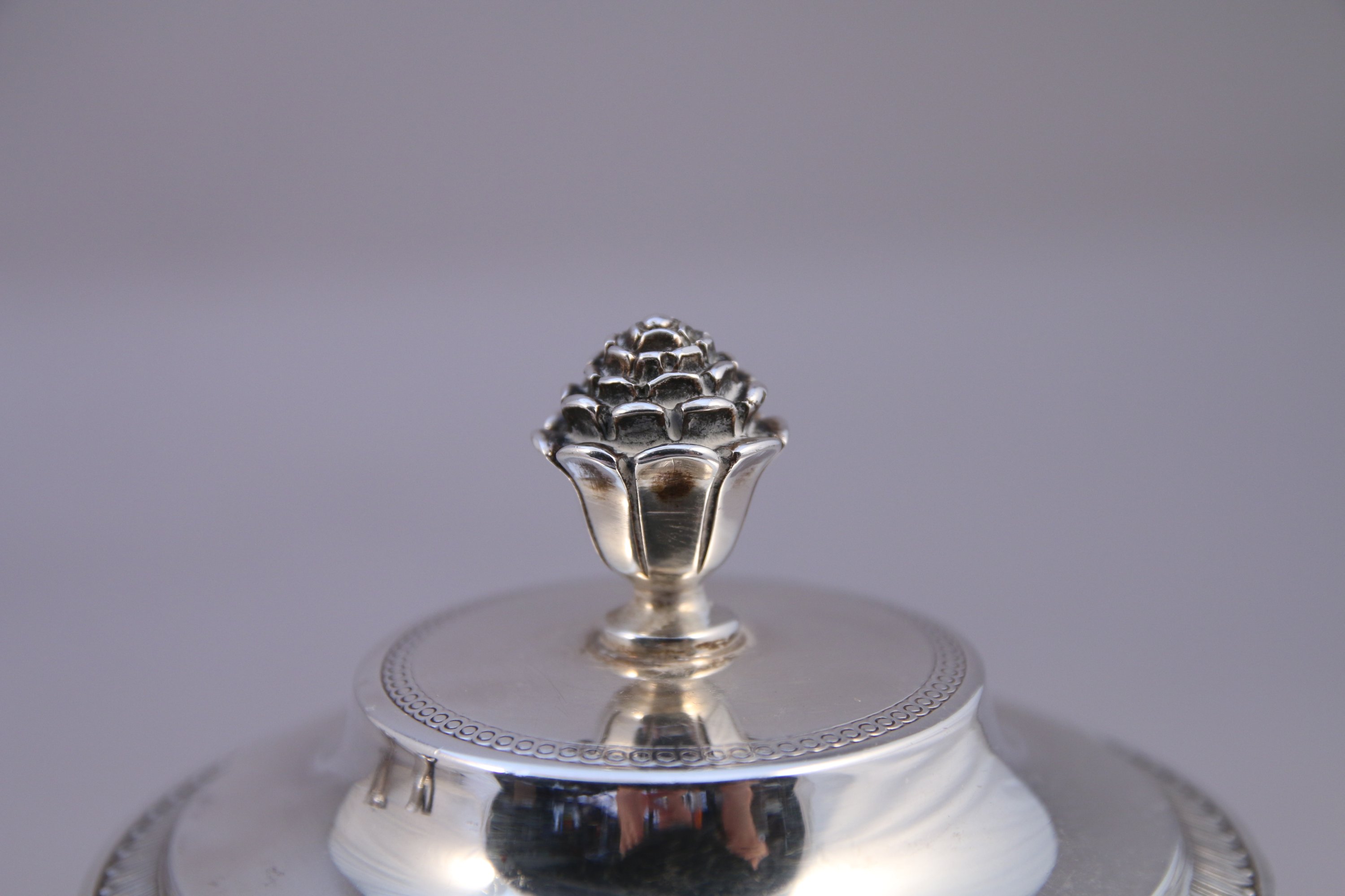 Haut. sucrier. 18, Larg. 14 cm. Poids 665 g. (deformation au couvercle).