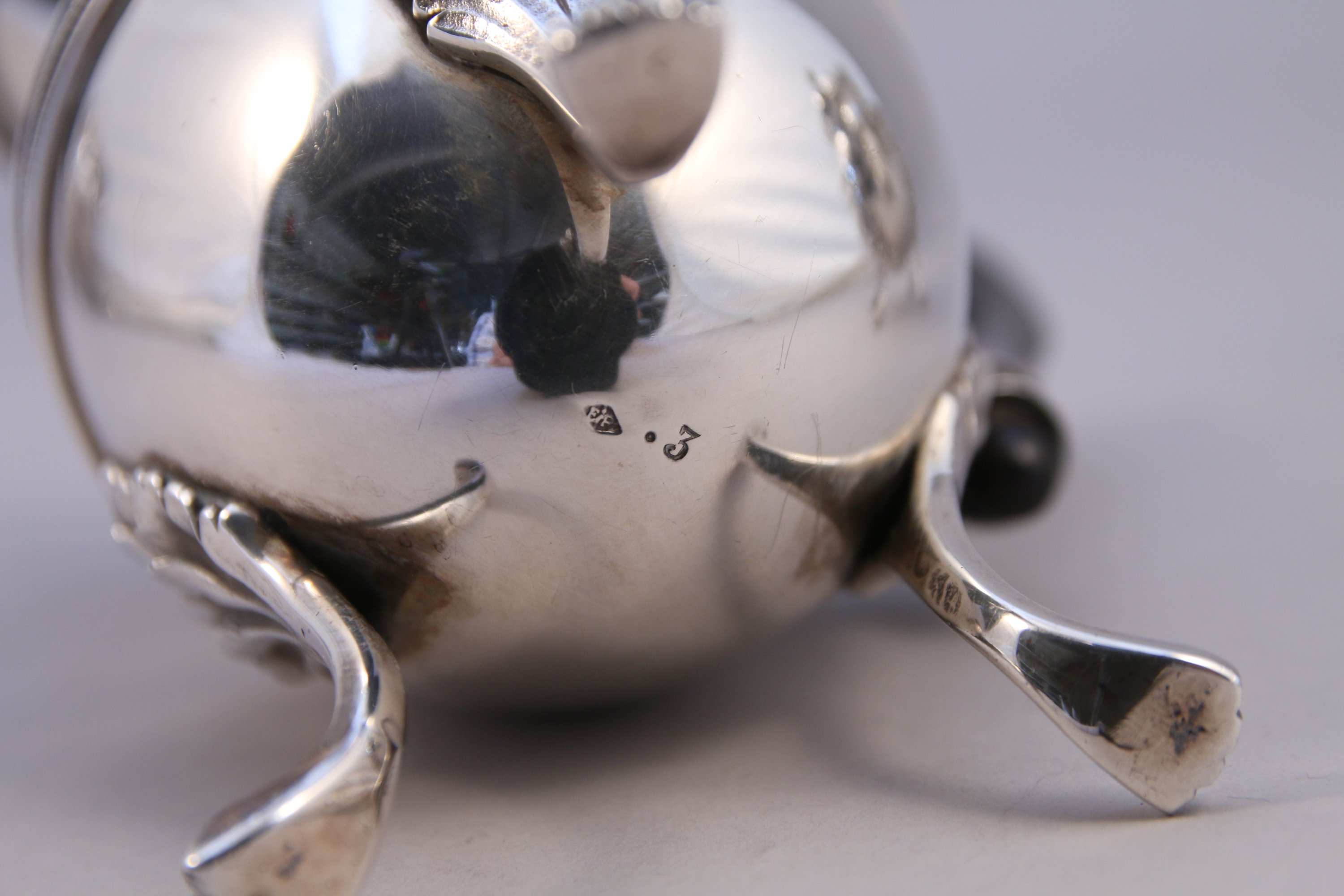 Haut. cafetière: 22, Larg. 23 cm. Poids brut 820 g. (déformation à un pied).