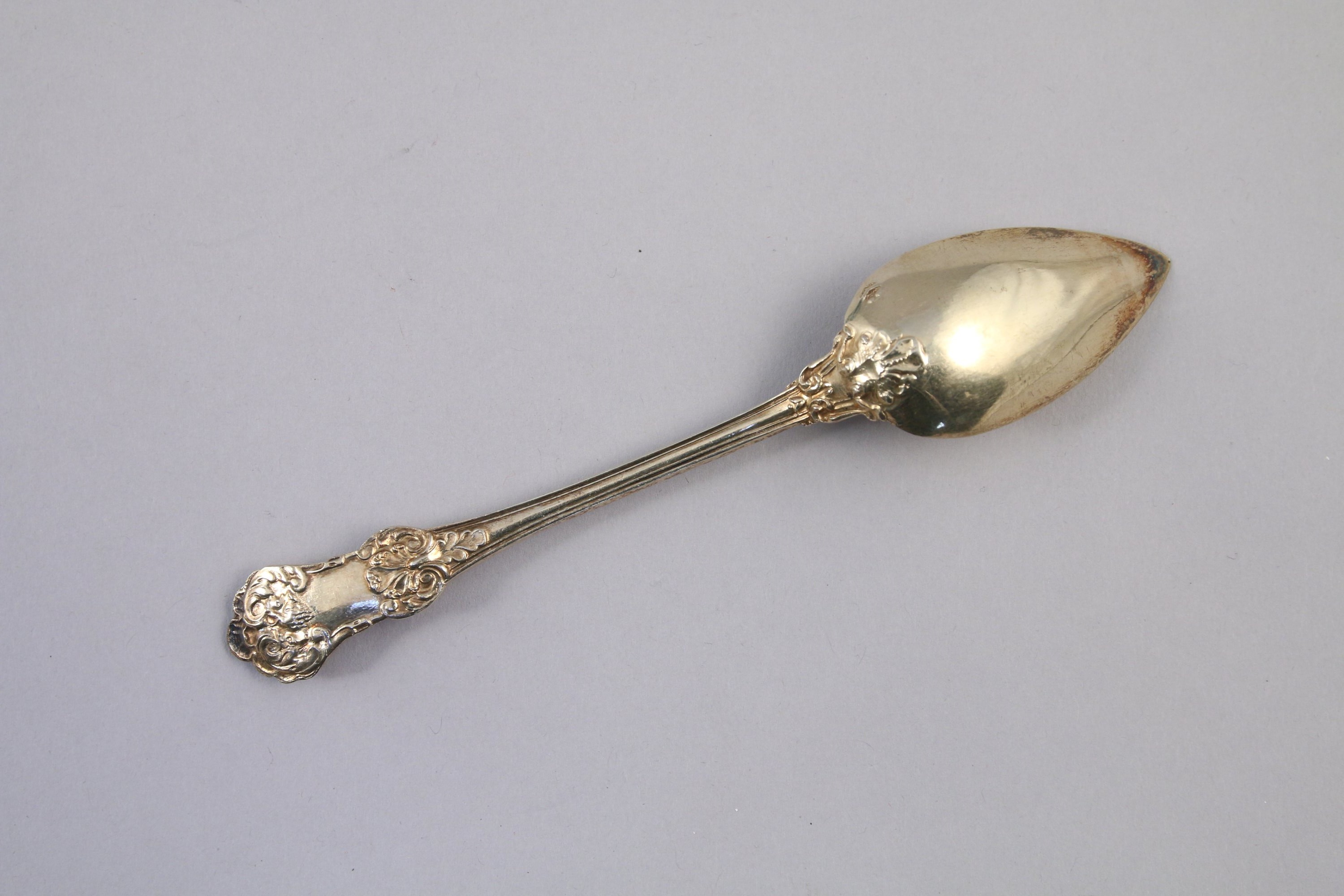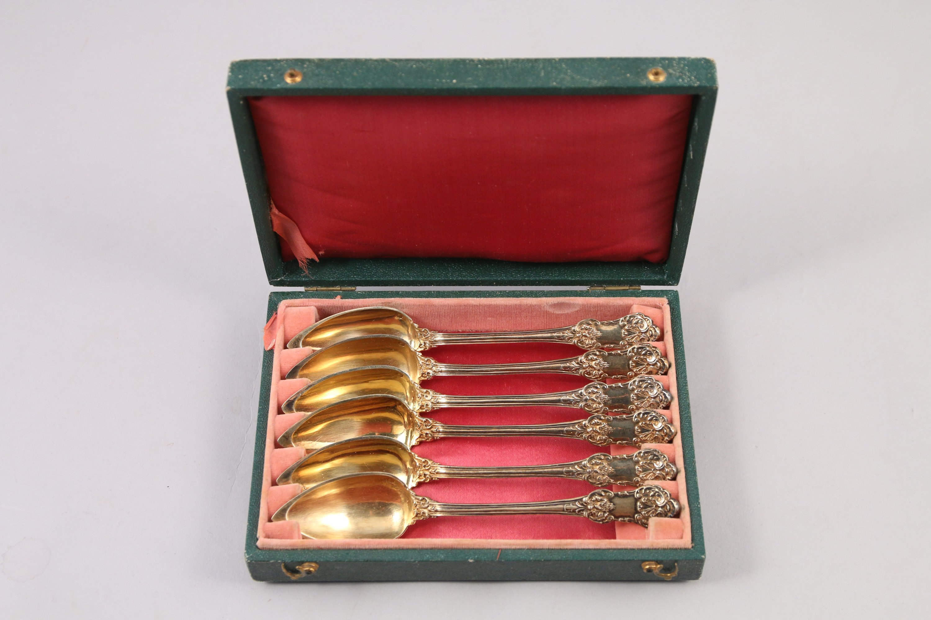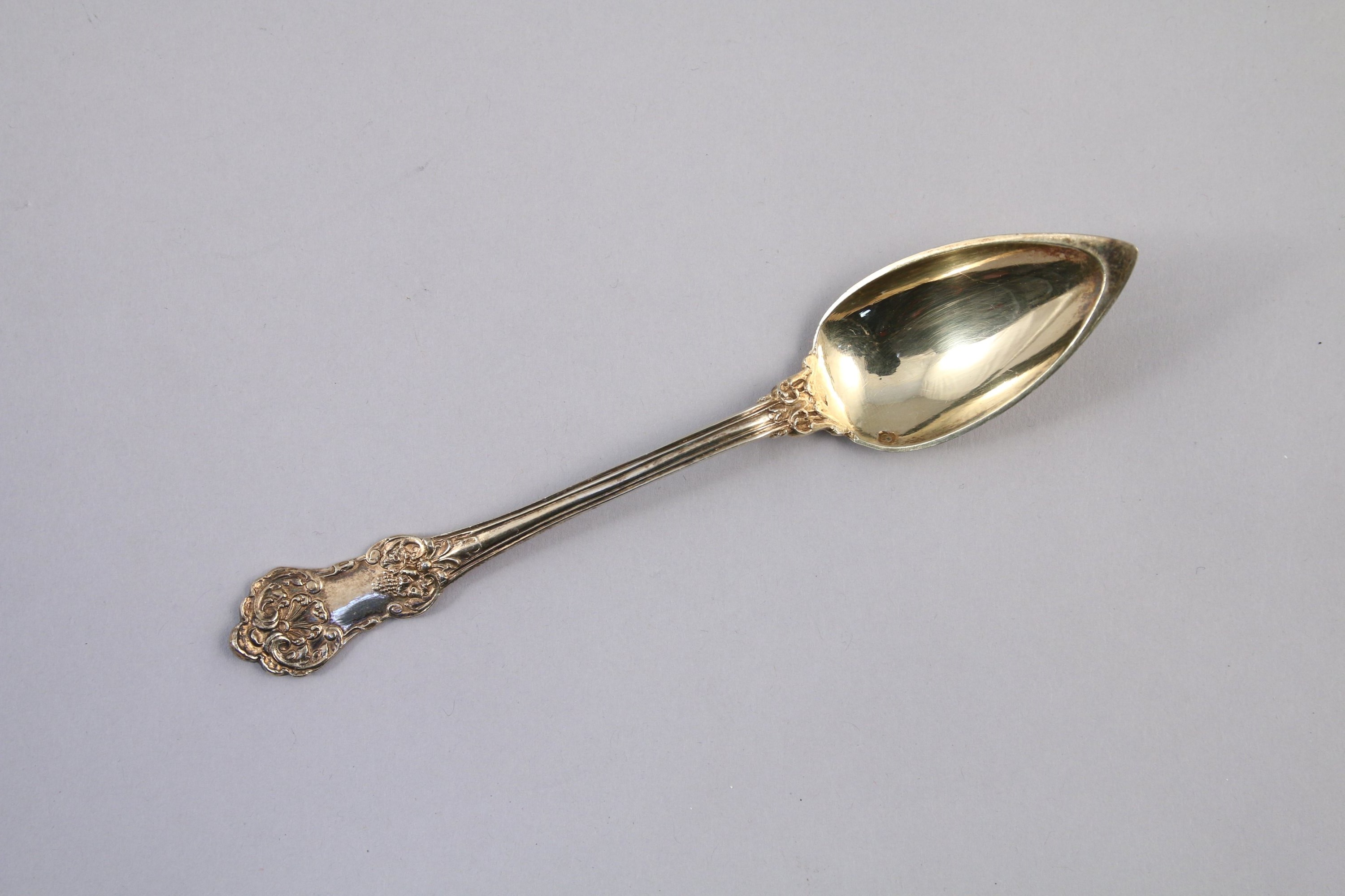 SUITE de six CUILLÈRES en vermeil à décor de style Louis XV composé de palmettes et motifs végétaux.