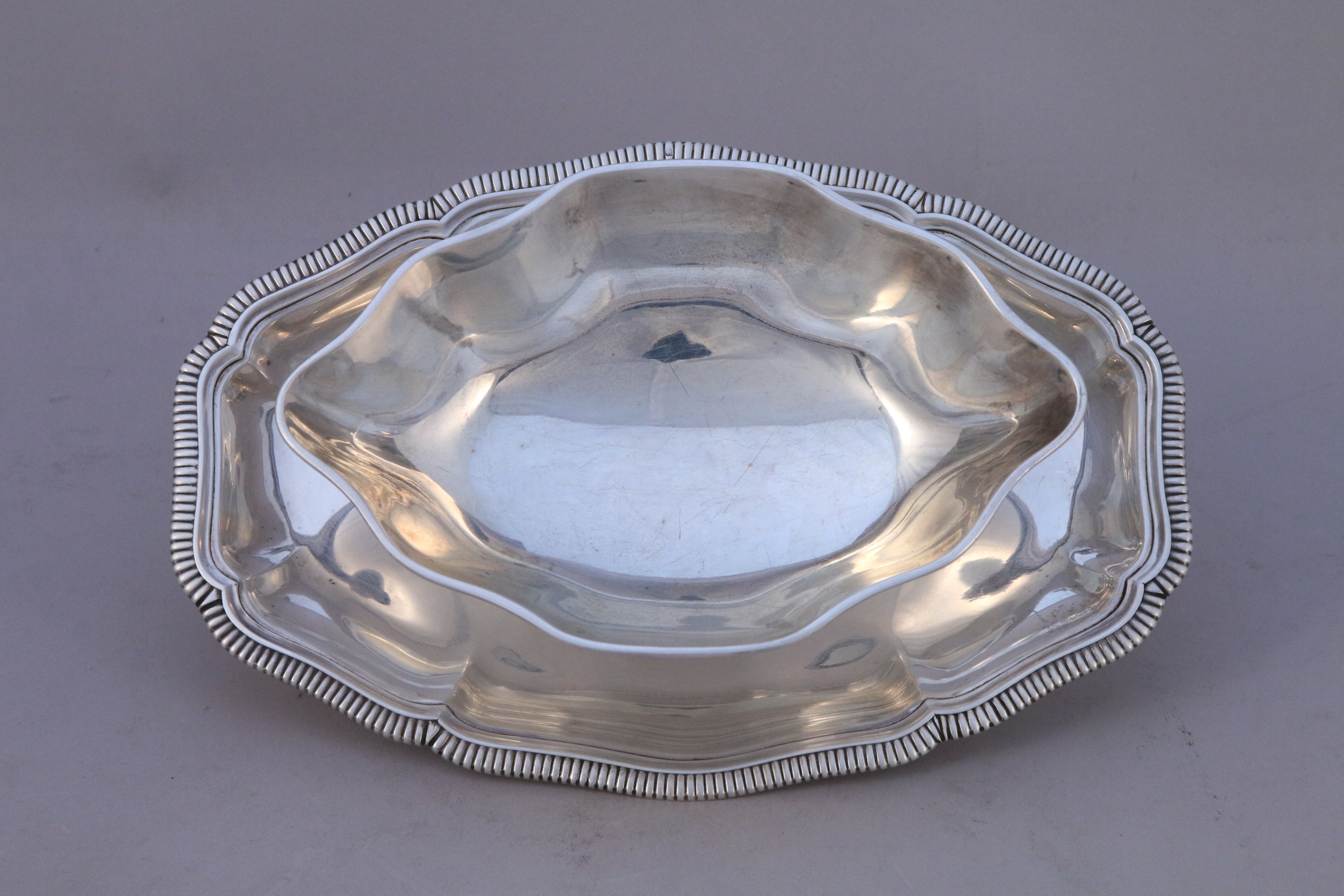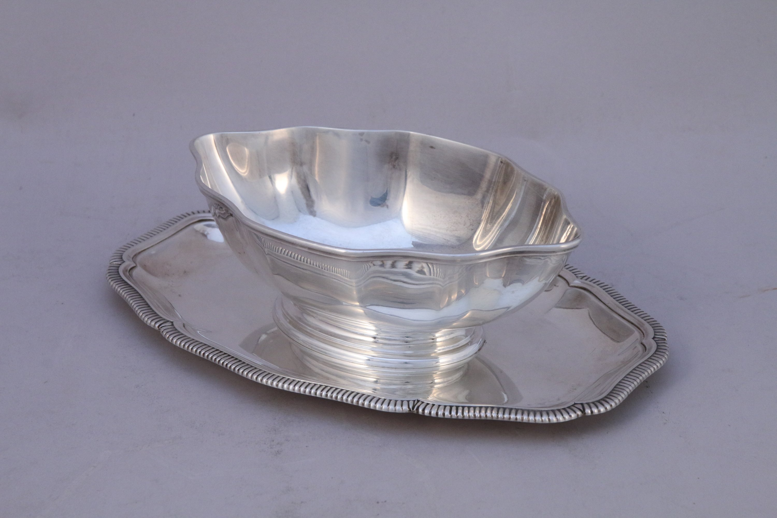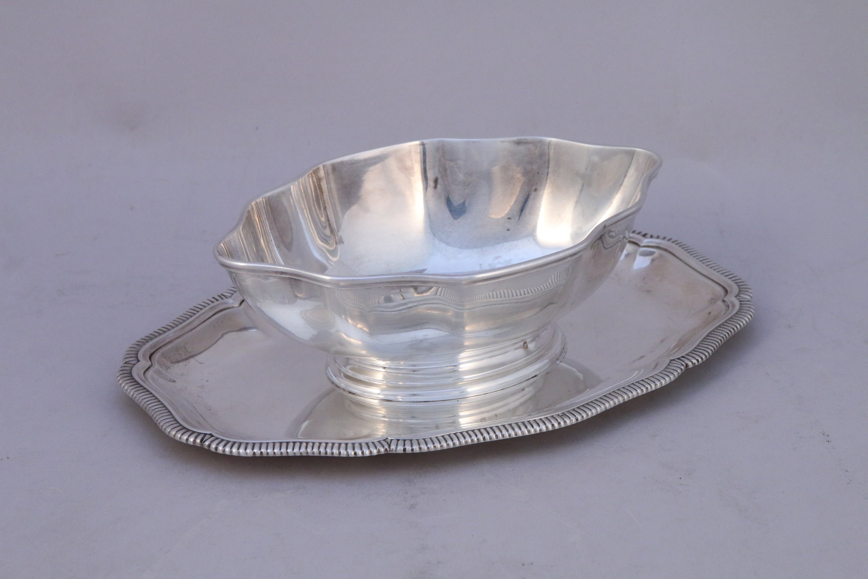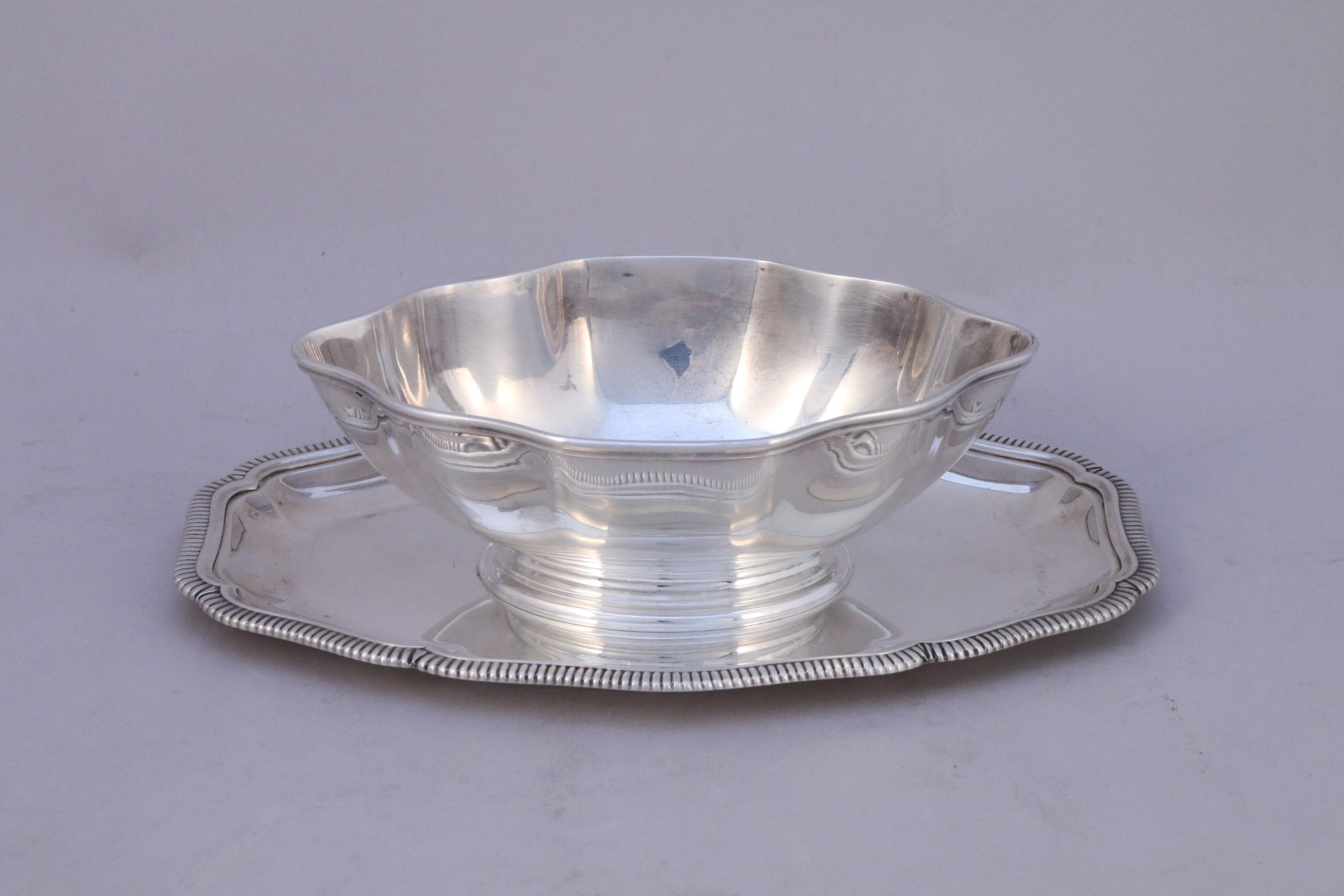 PUIFORCAT. Belle SAUCIÈRE en argent à côtes et dormant mouvementée de style Louis XV.