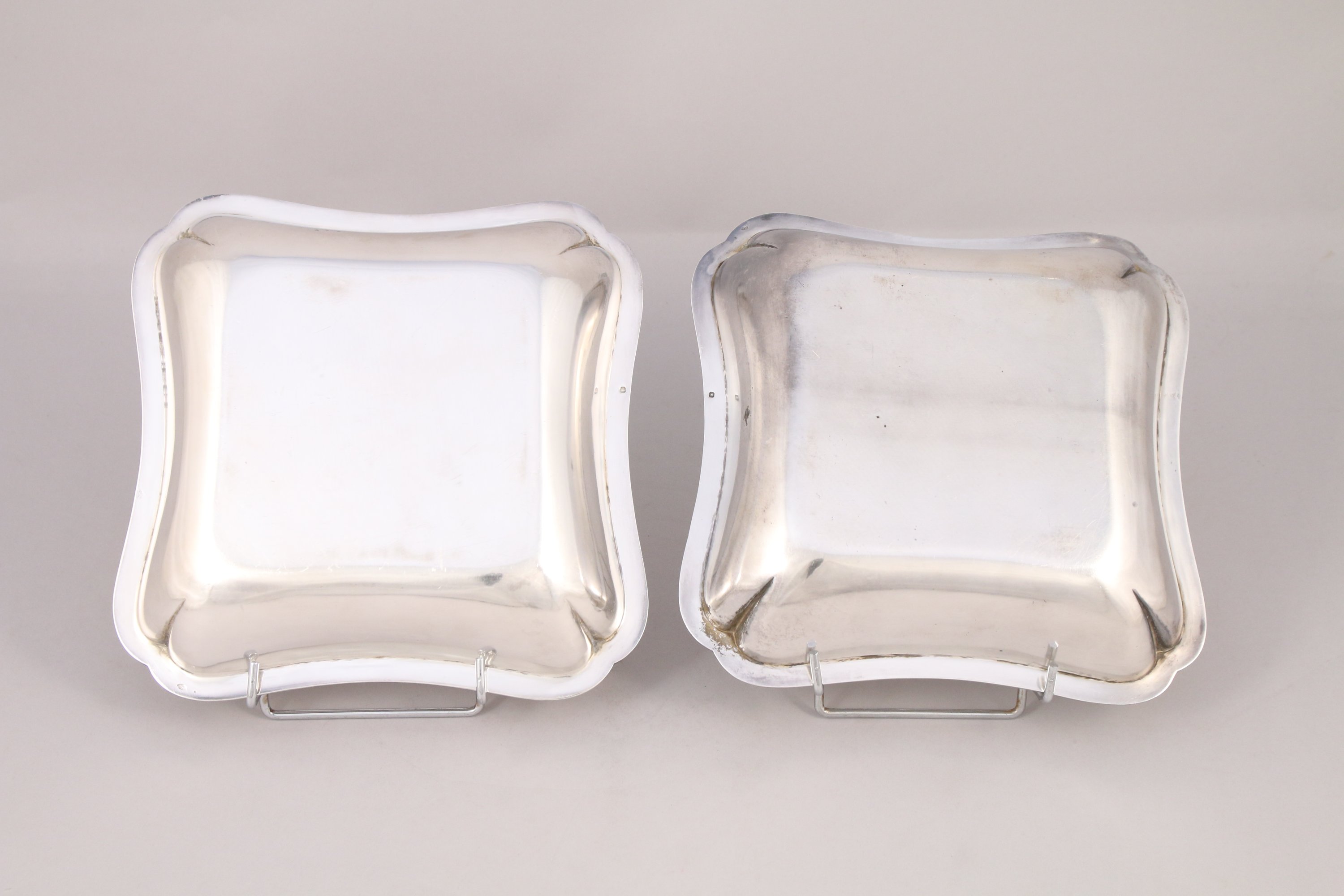 SOUFFLOT. Paire de PLATS quadrangulaires à la bordure mouvementée ornée de joncs rubanés.
