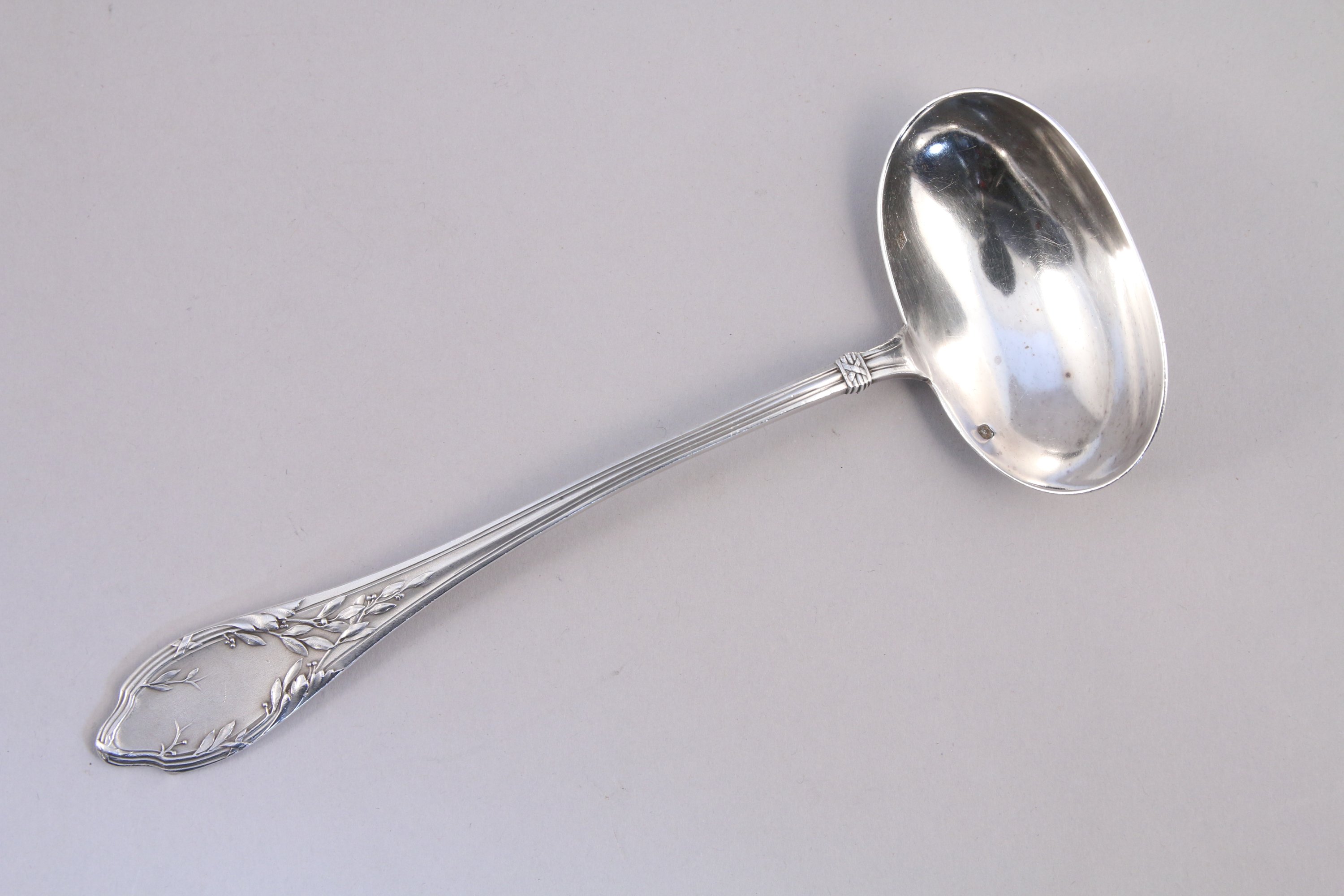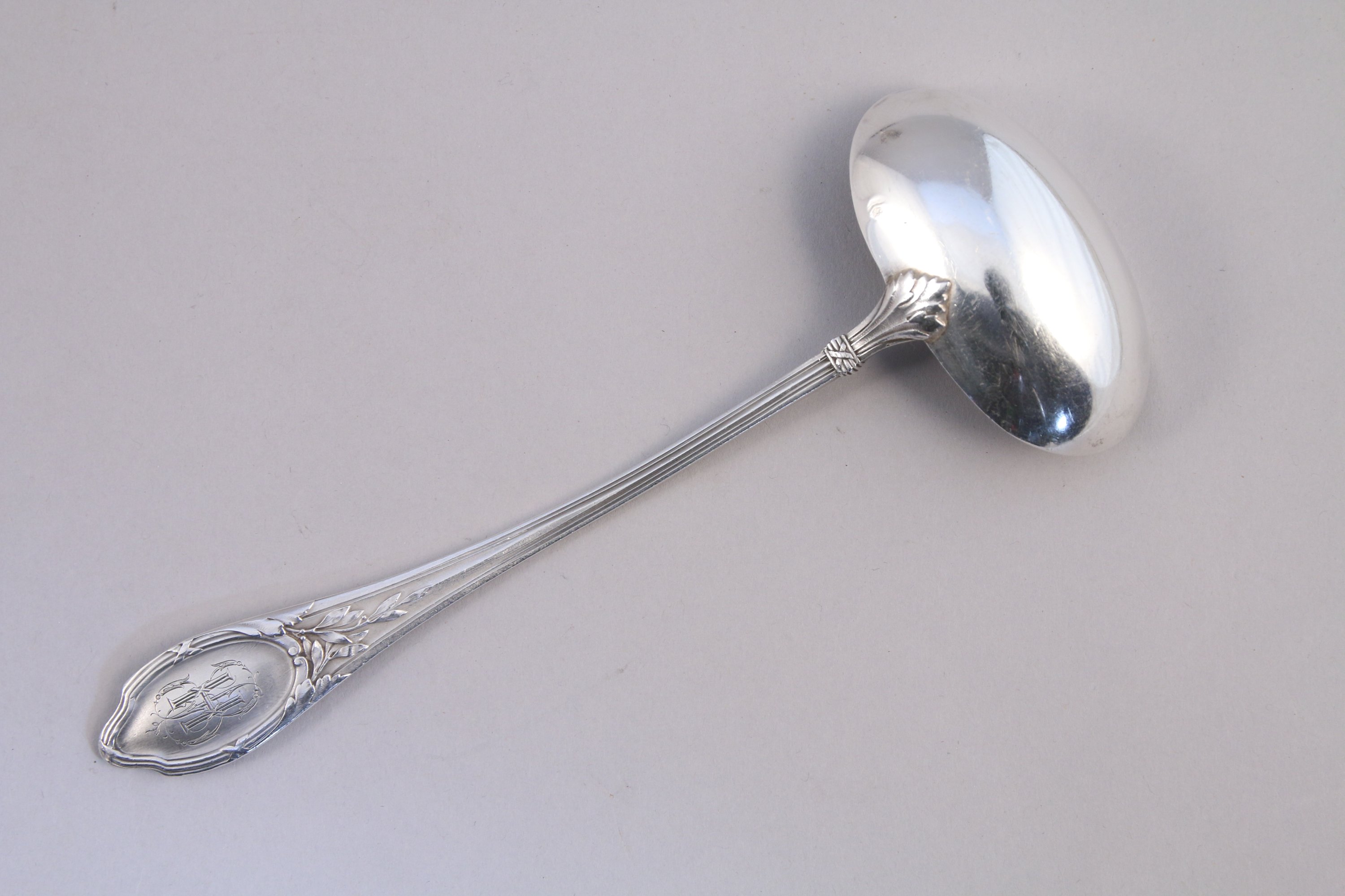 JOINT: la cuiller à motif de branches de laurier. Poids 75 g.
