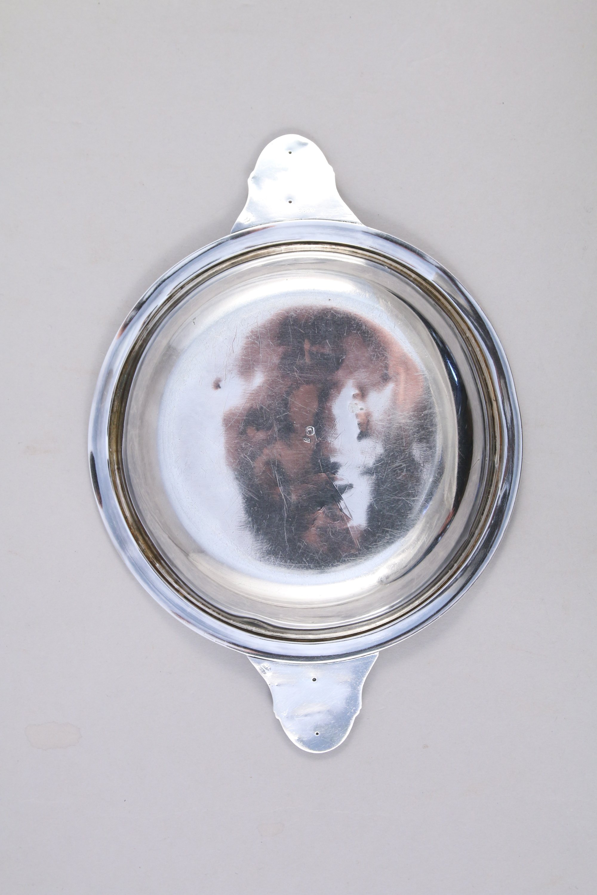 COUPELLE à OREILLES en argent. Modèle filet, les oreilles ornées d'une branche fleurie.