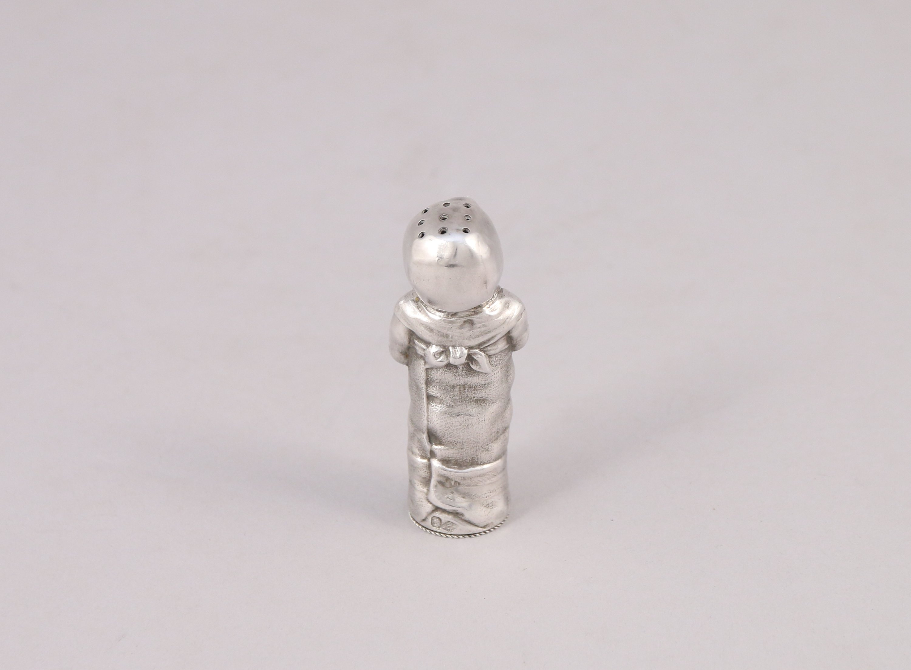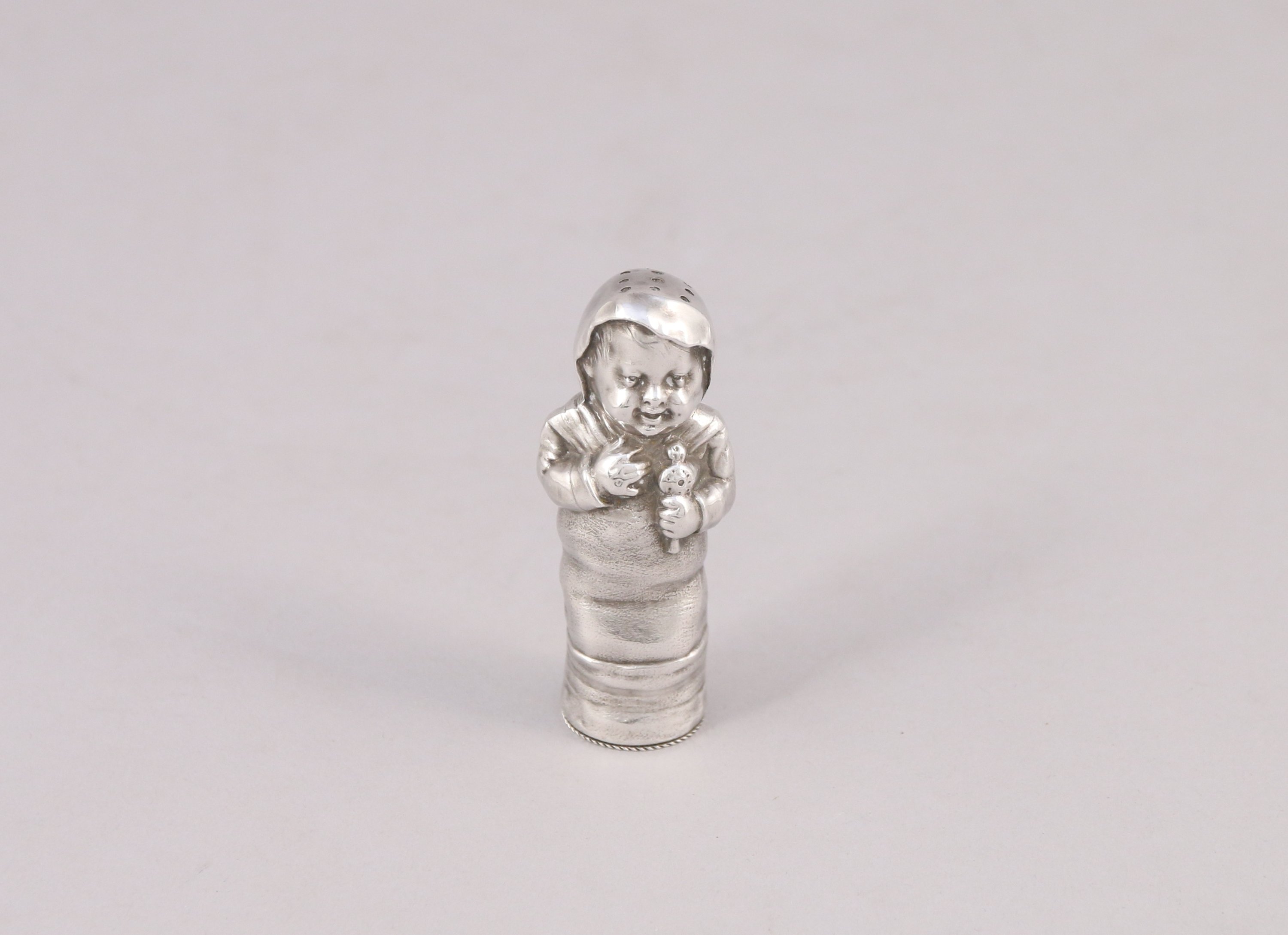 SOUFFLOT. SALERON en argent en forme d'enfant tenant un hochet.