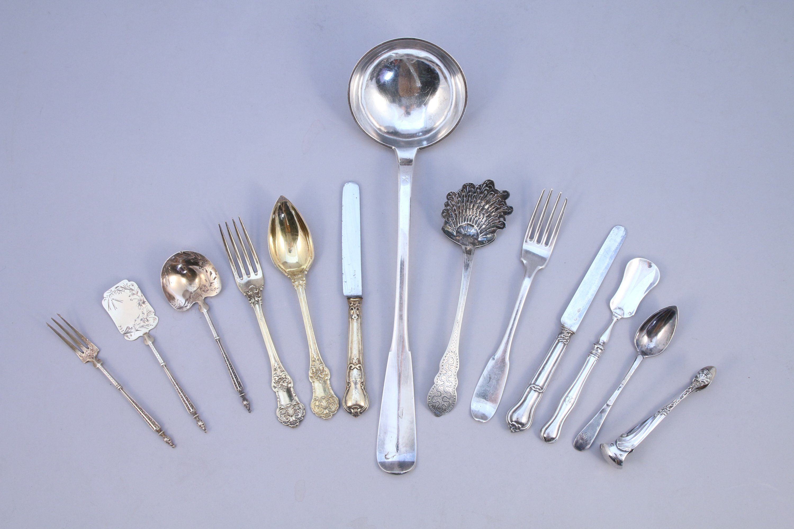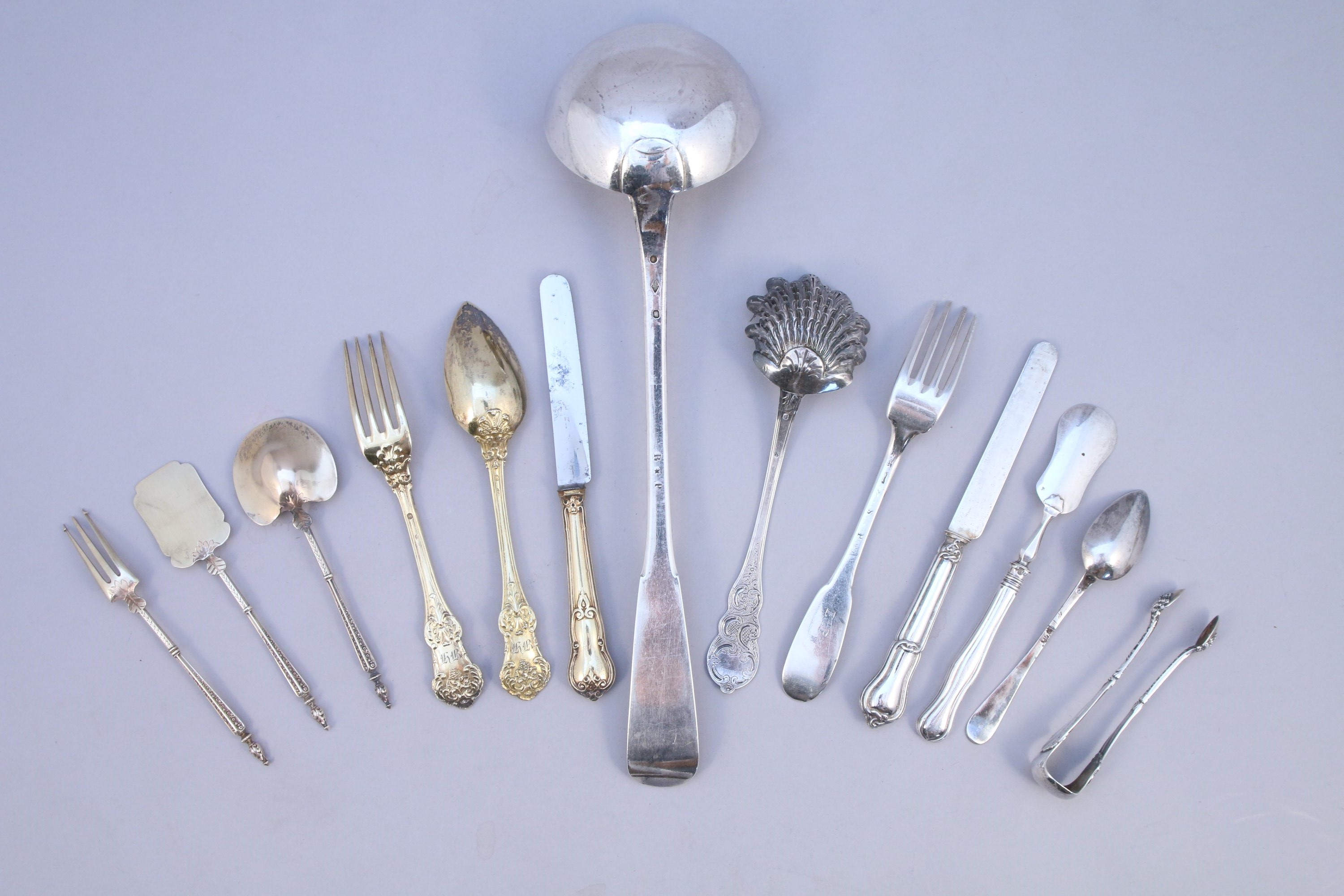- TROIS PIÈCES de SERVICE à bonbon en vermeil, le manche à la "Russe" gravé d'un décor de fleurs de champs. Poinçon Minerve, XIX-XXe. Orfèvre: LP.