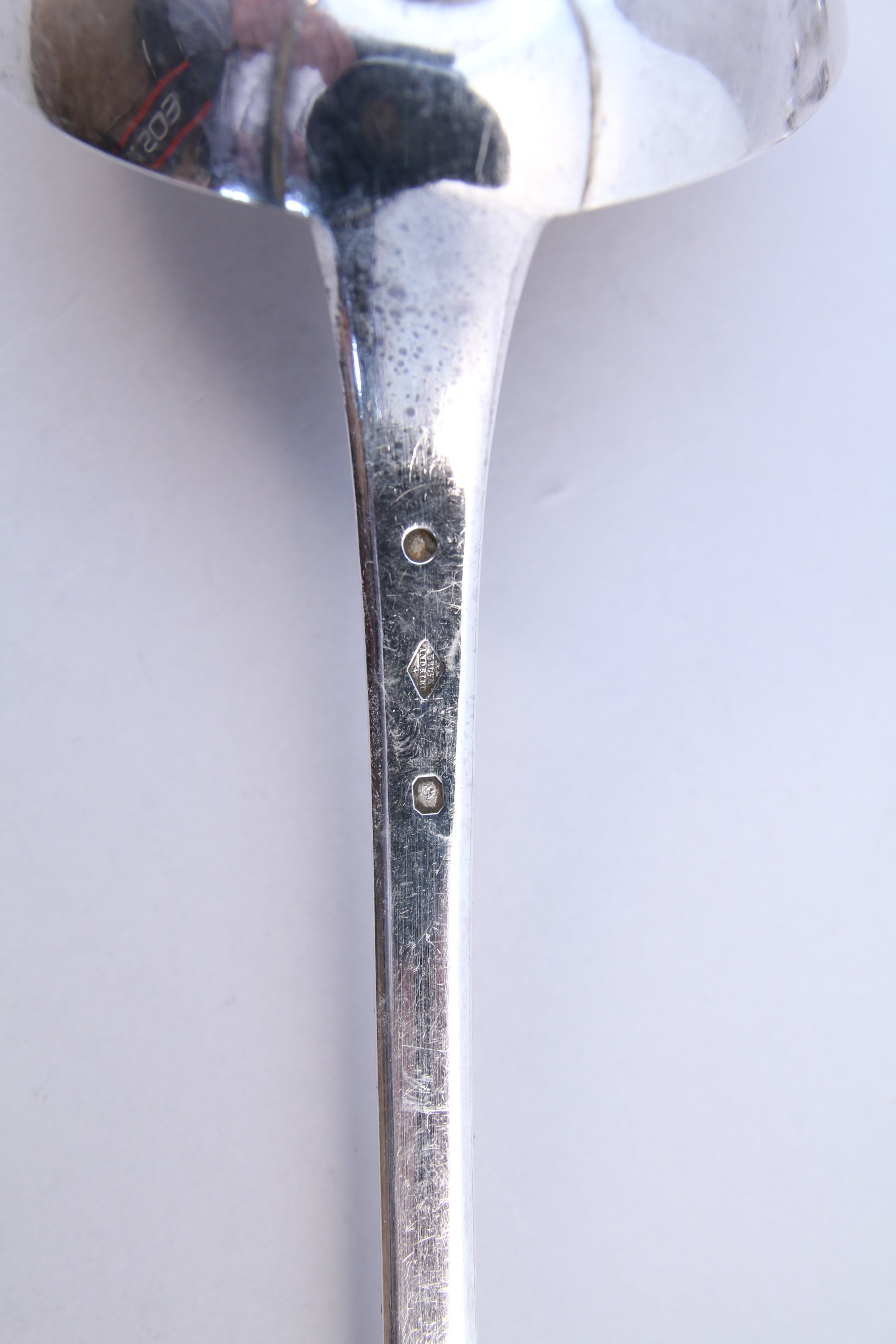 - CUILLÈRE à SAUPOUDRER, manche violonné à décors guilloché et gravé d'enroulements.