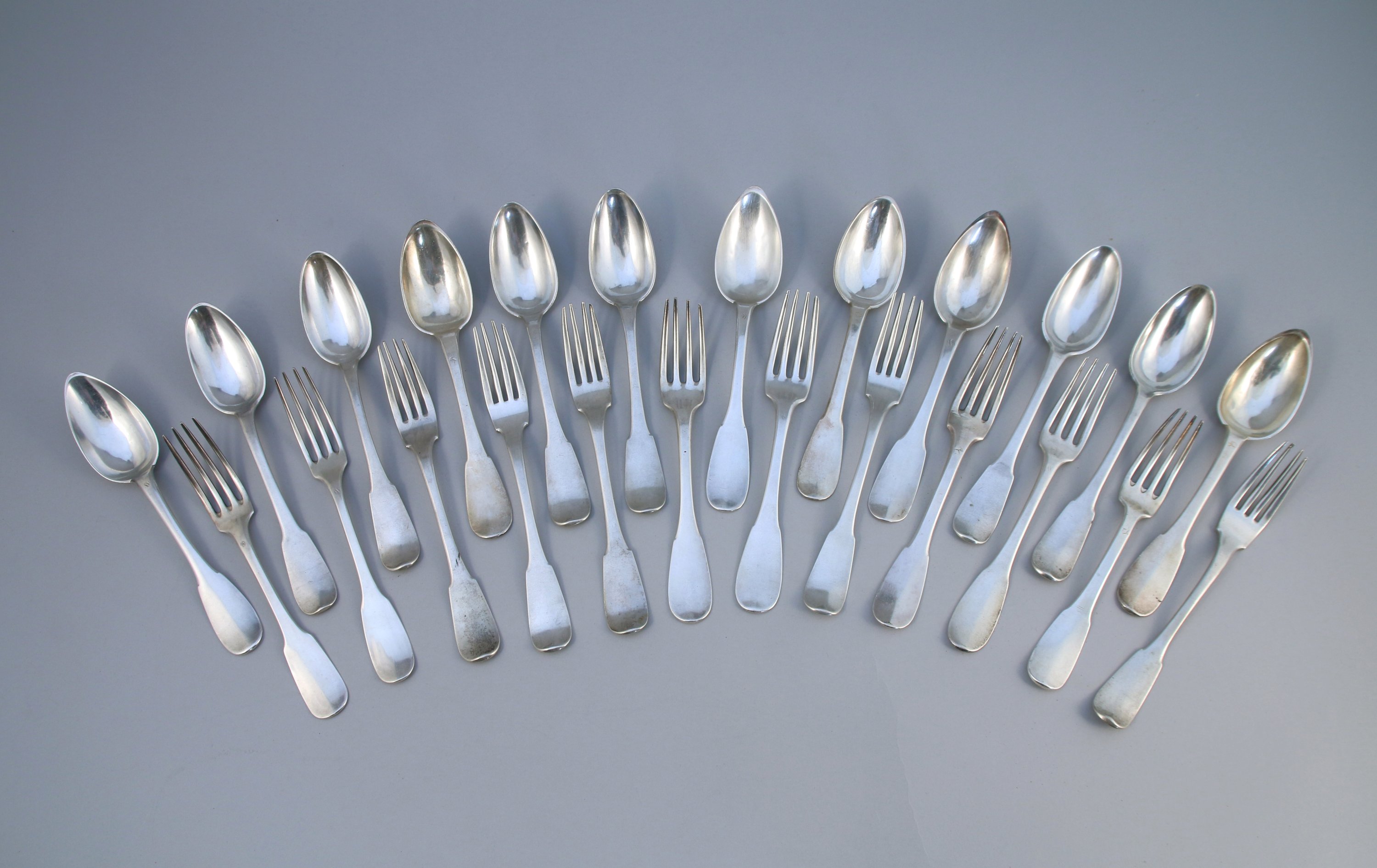 ENSEMBLE de COUVERTS DE TABLE en argent modèle uniplat.