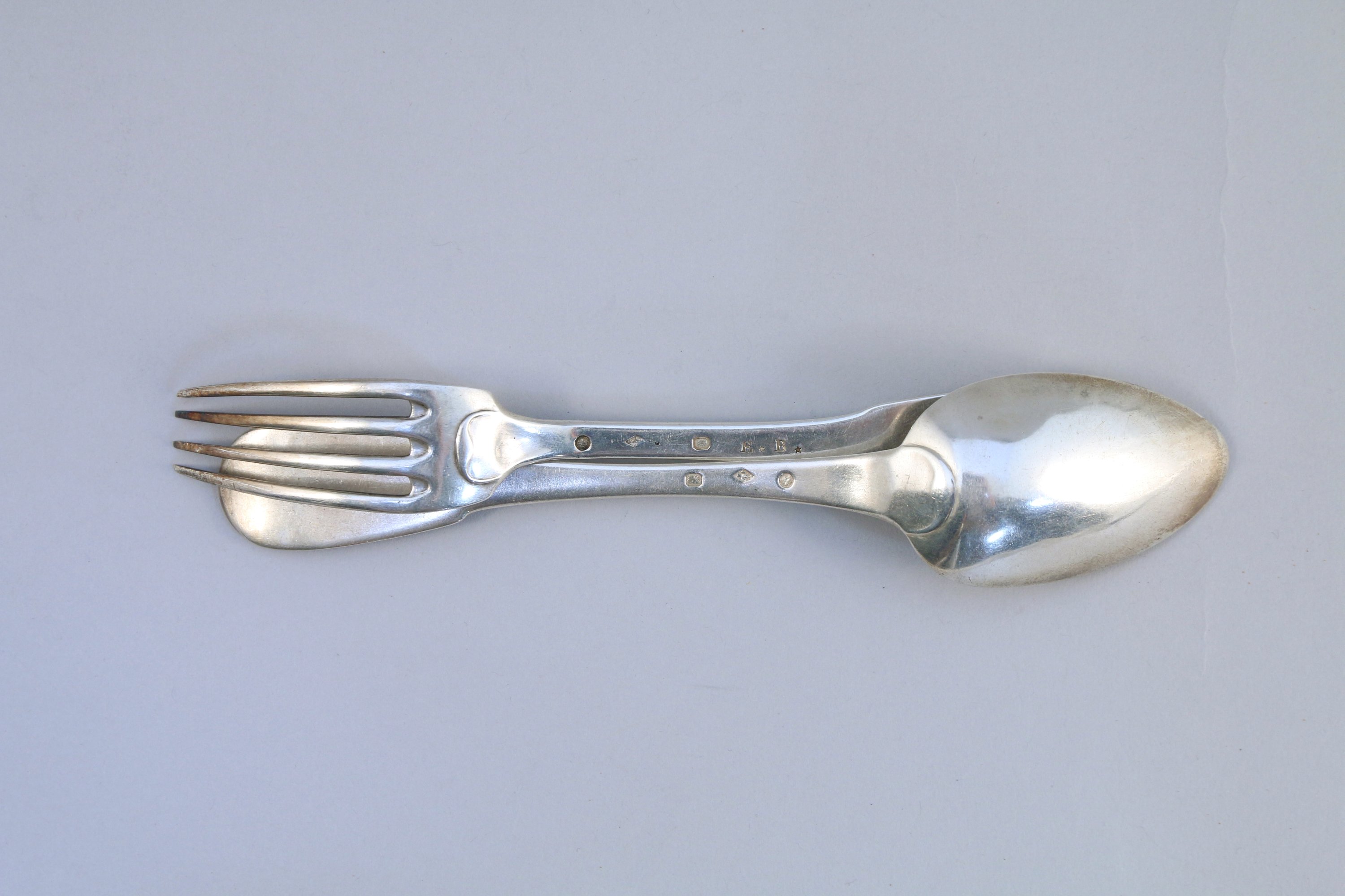 - UN COUVERT. Poinçon Viellard PARIS (1819-1839). Orfèvre: Cincinnatis Lorillon, installé 239 rue Saint-Martin à Paris. Poids 140 g.