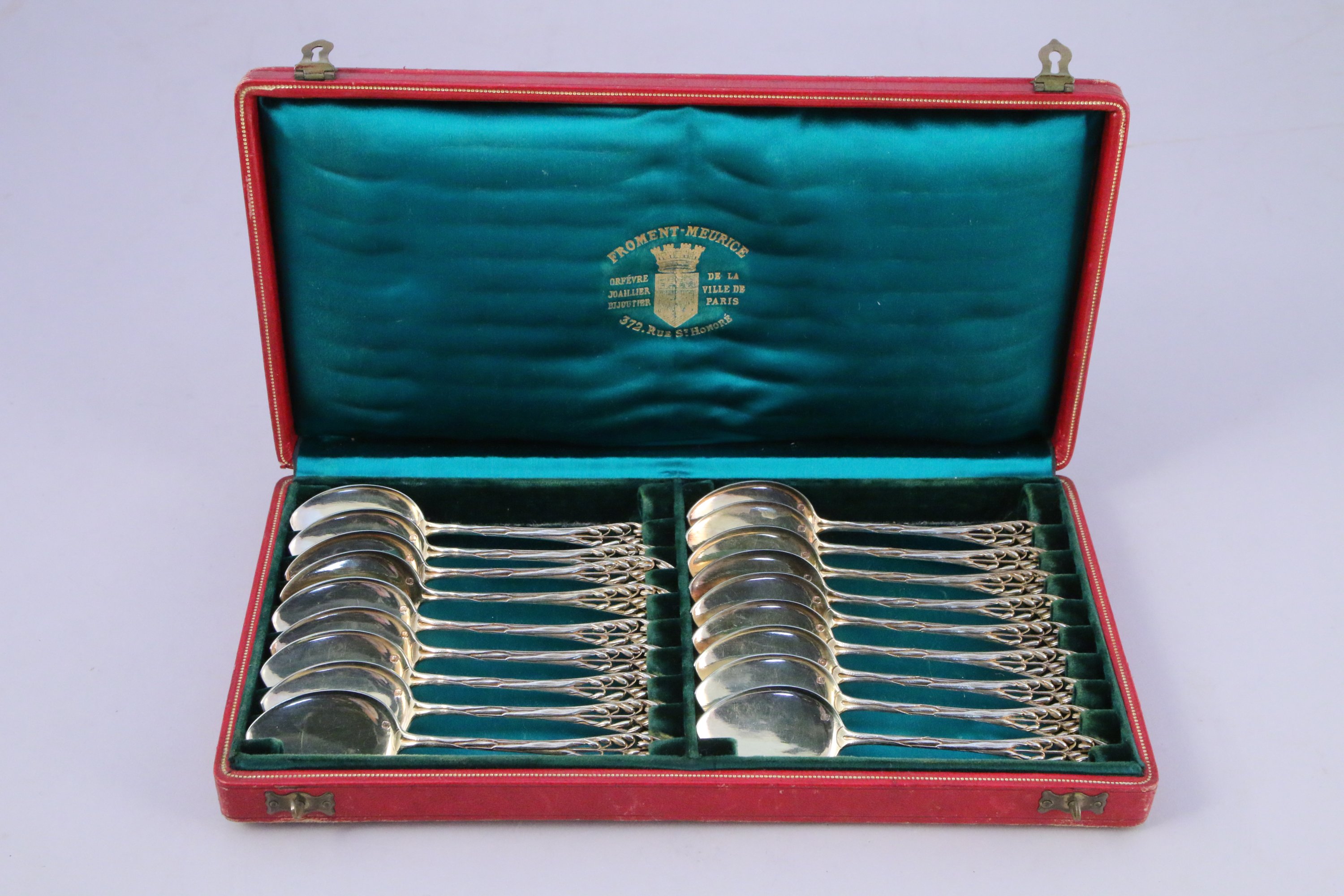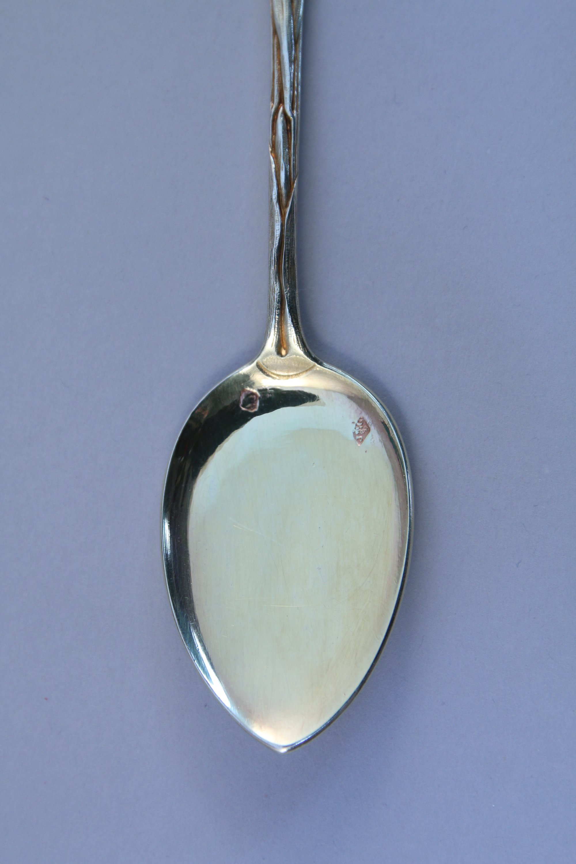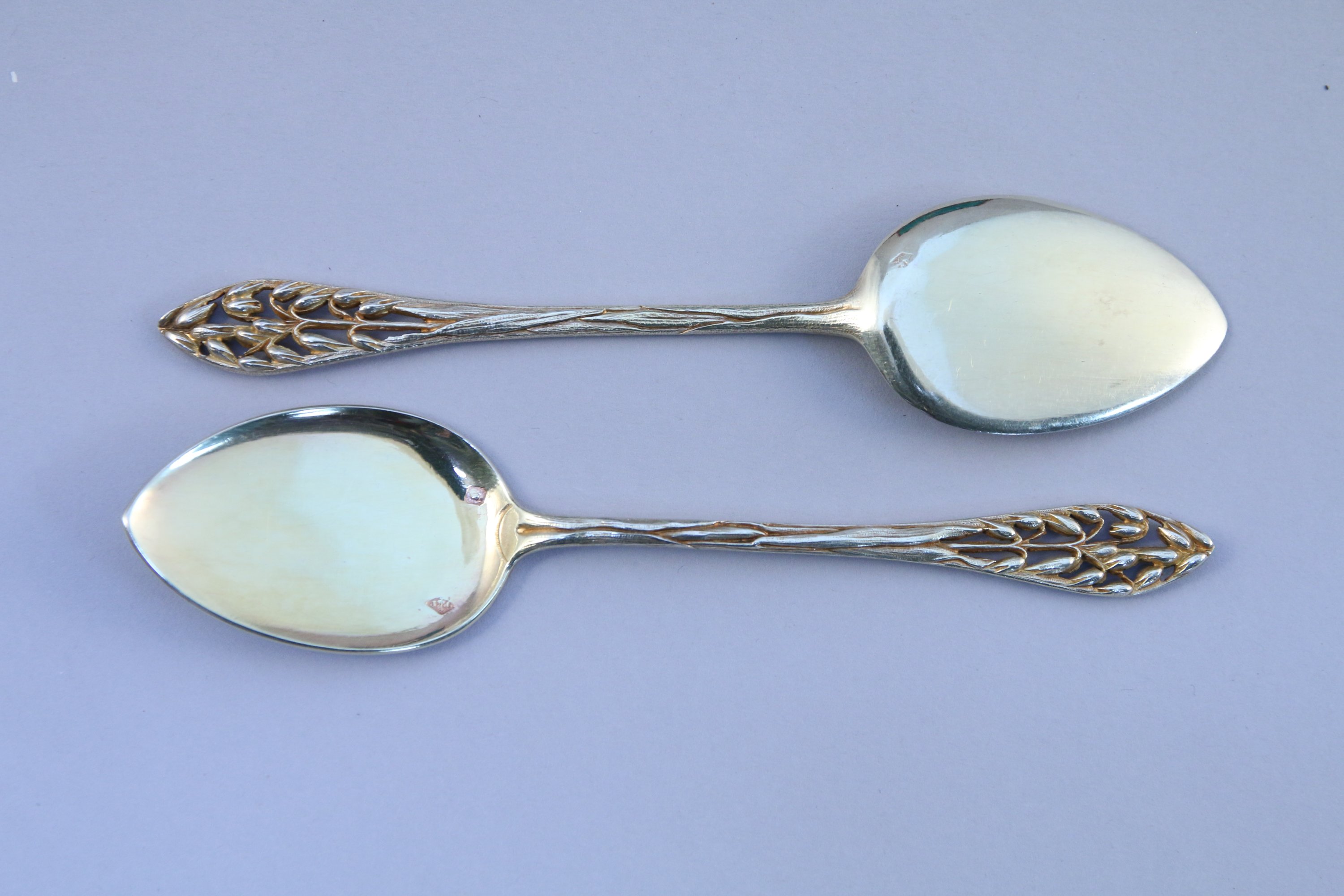 Suite de DIX HUIT CUILLÈRES à GLACE en vermeil, la spatule ajourée d'un décor feuillagé.