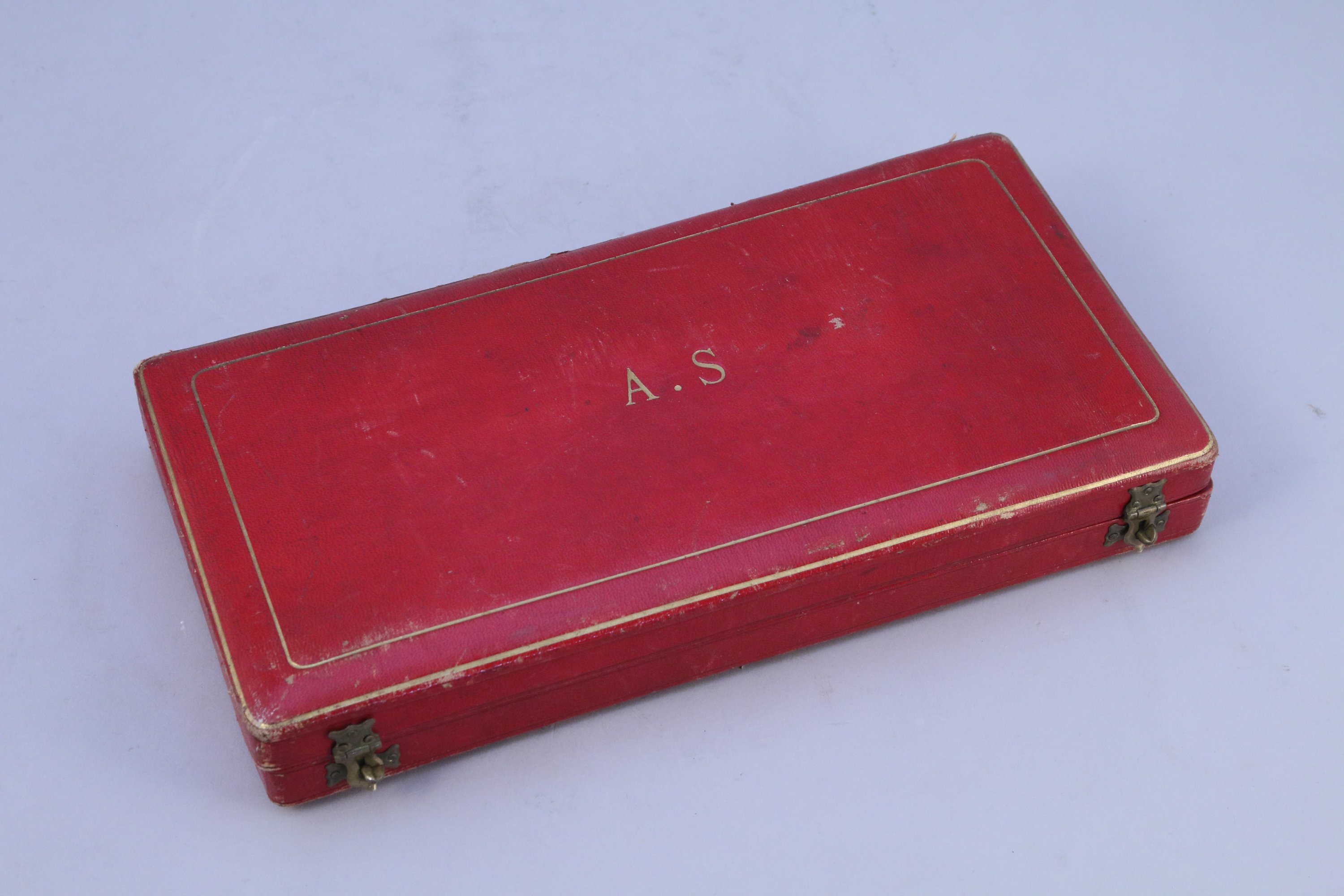 Écrin de la maison Froment-Meurice gainé de marocain rouge monogrammé "A.S".