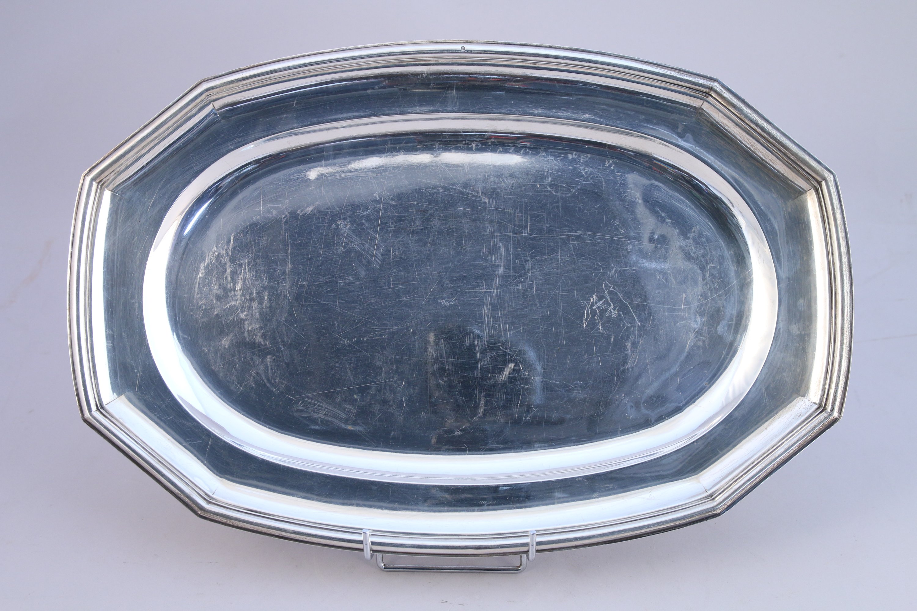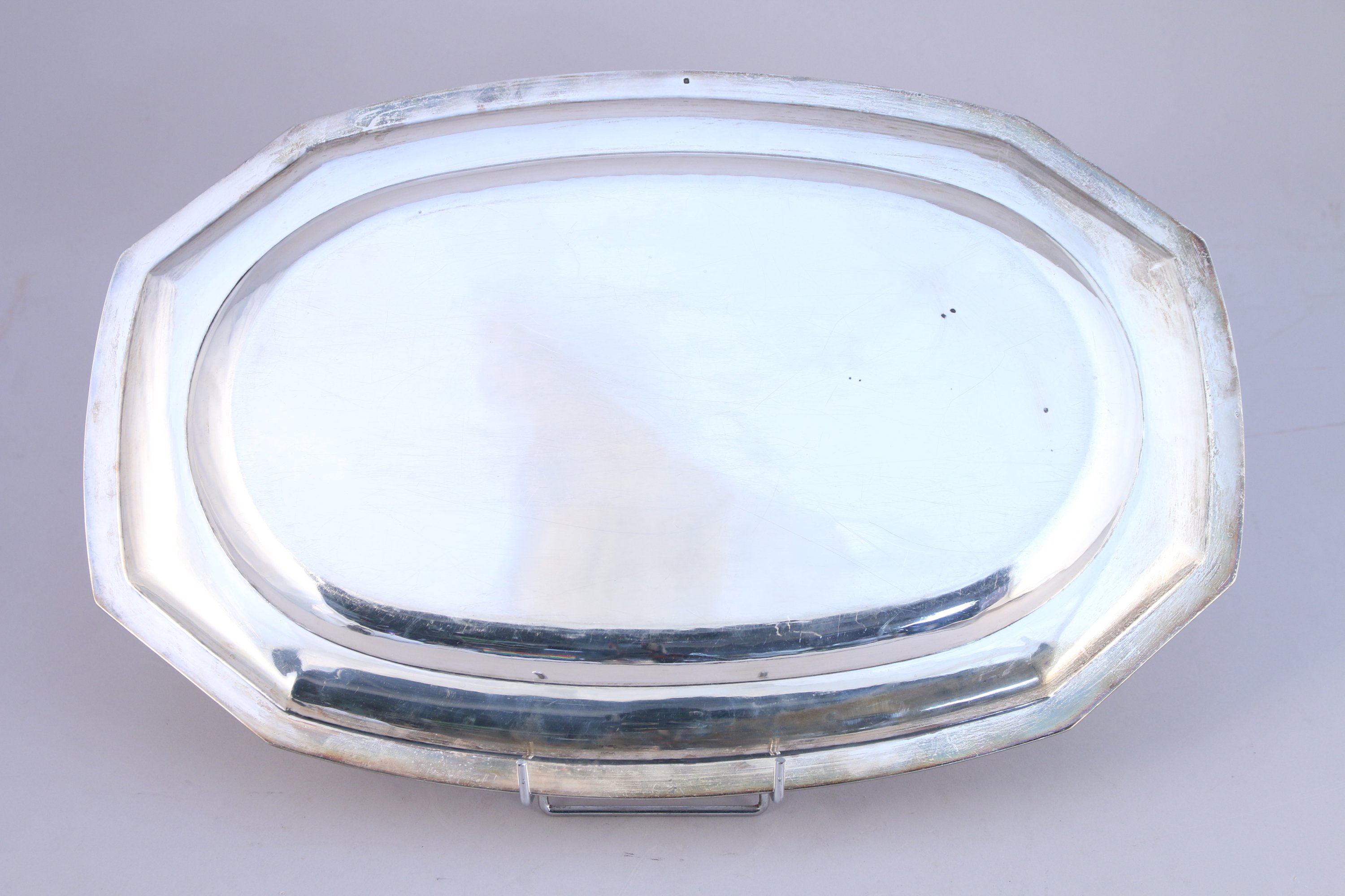 PLAT en argent de forme oblonge à pans coupés, la bordure à moulure et filet.