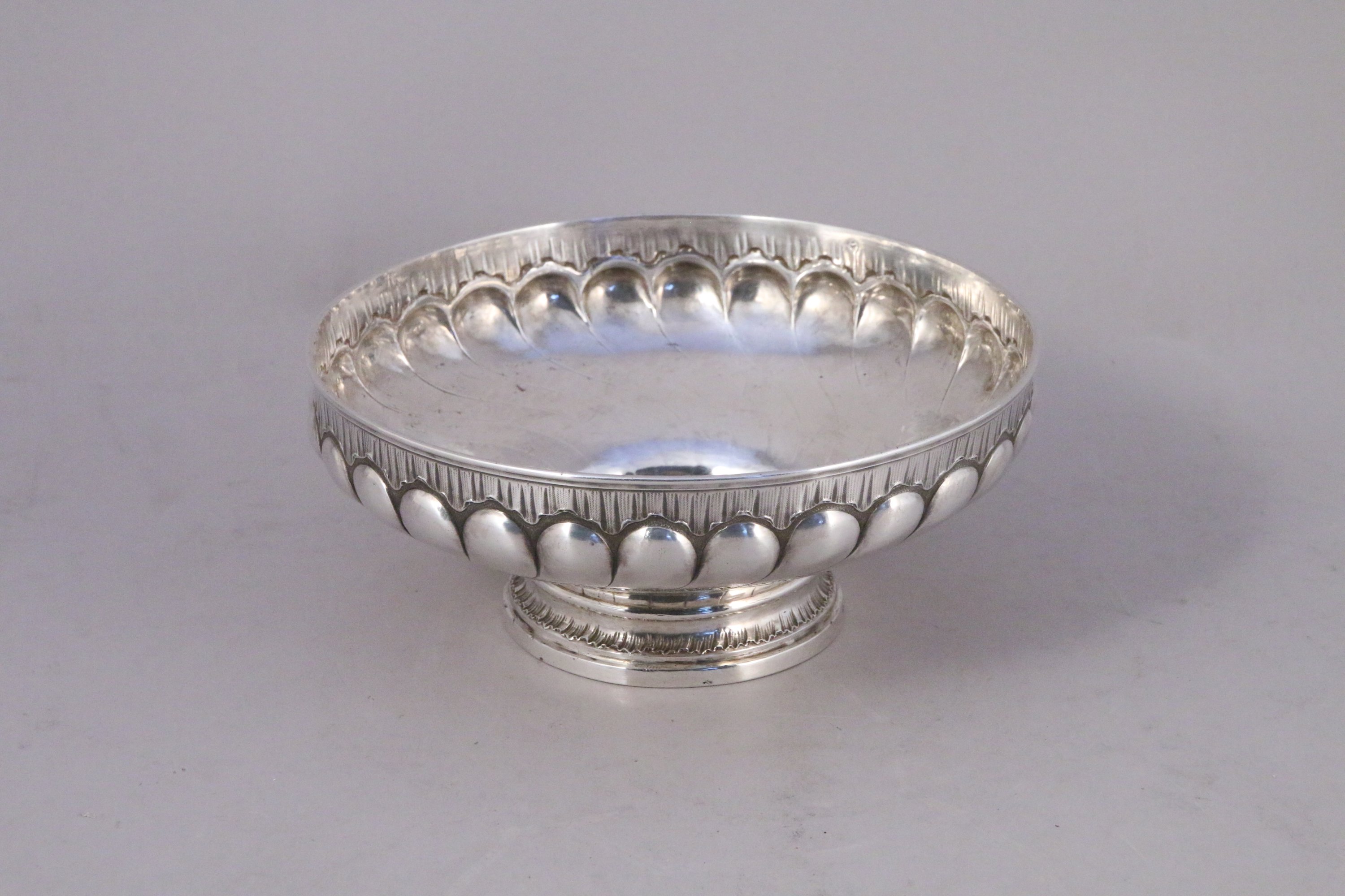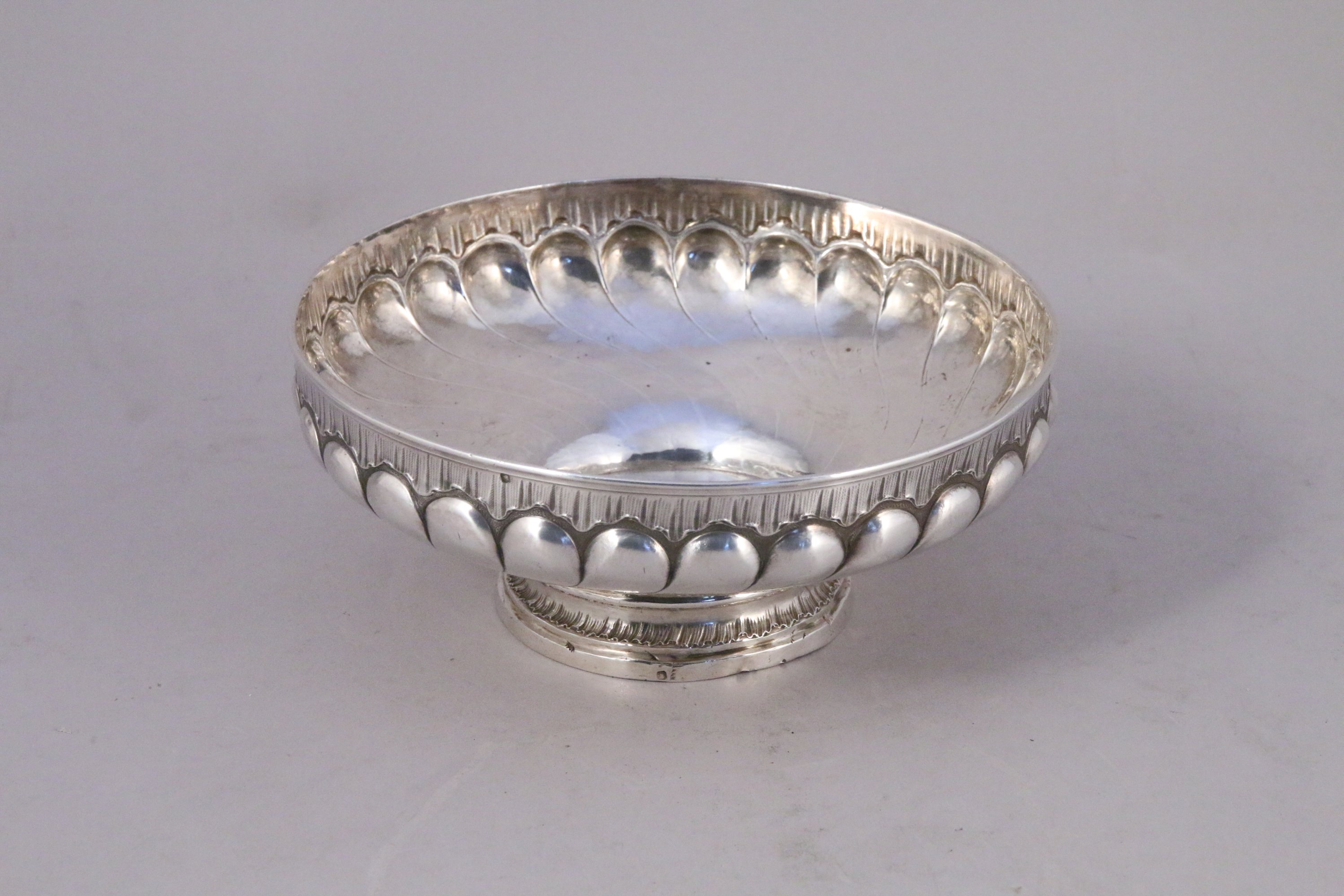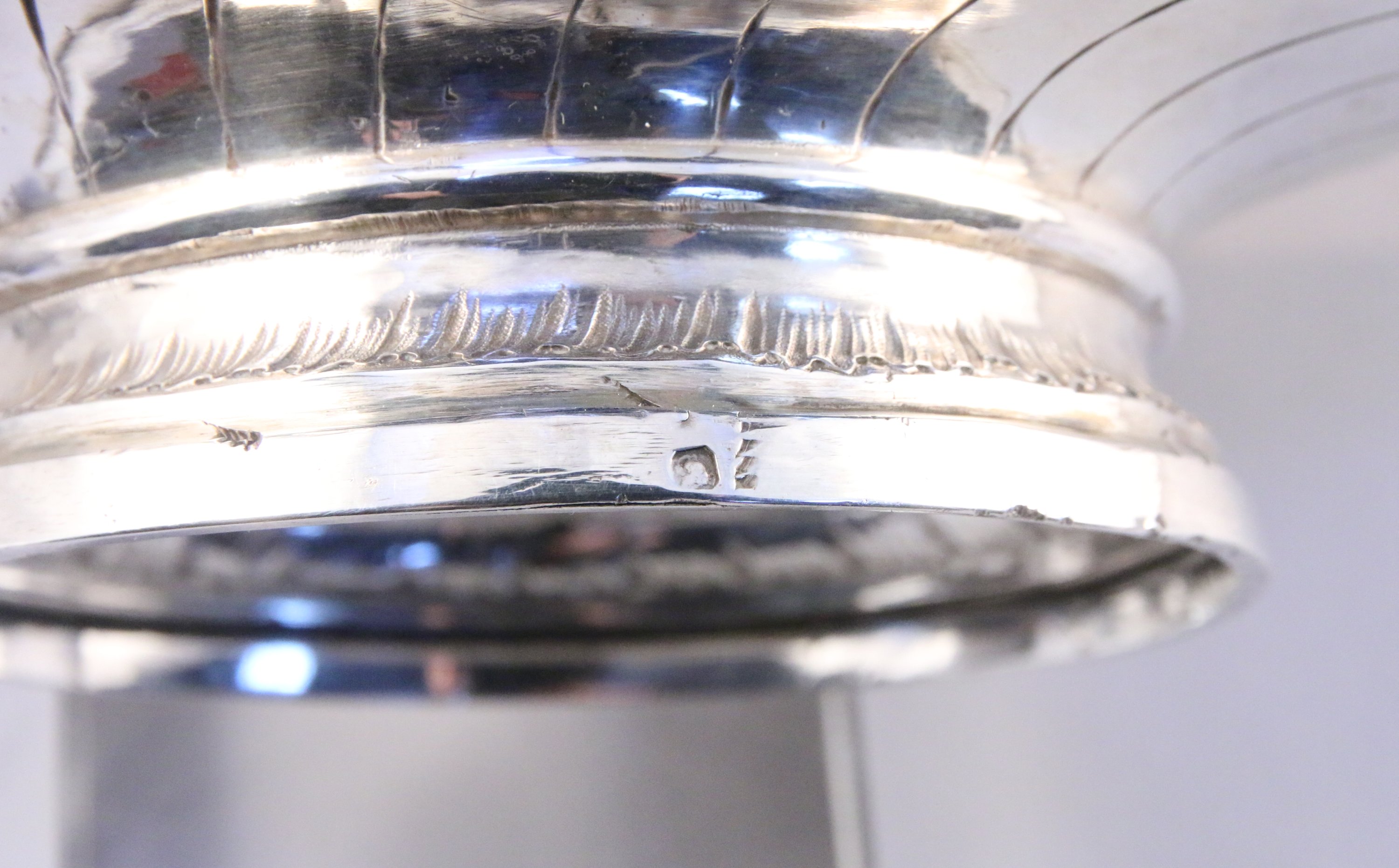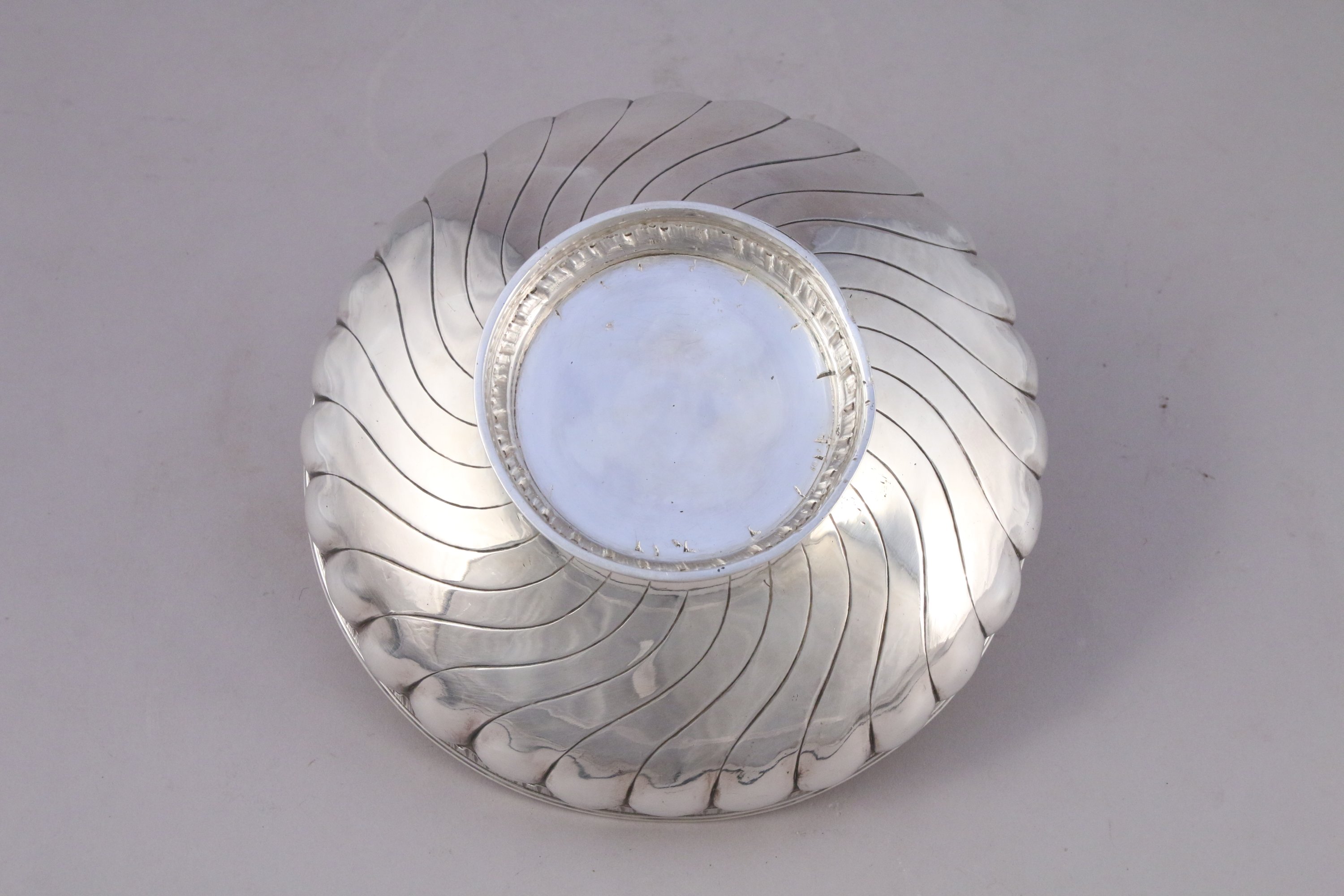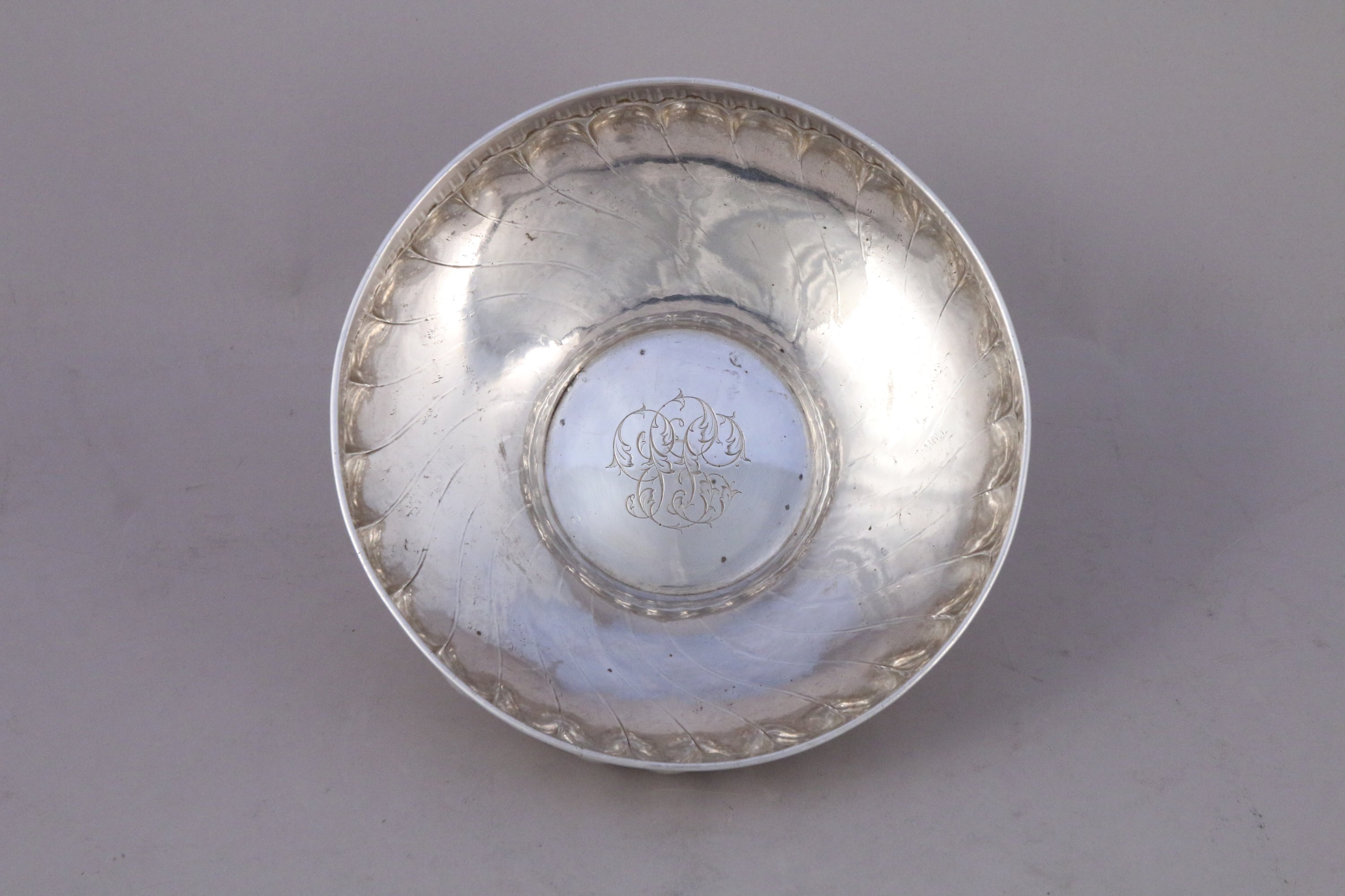 COUPE en argent à décor au repoussé d'un motif de côtes torses et de vagues sur fond amati repris à la base du piedouche. Le fond gravé du monogramme "L S B".