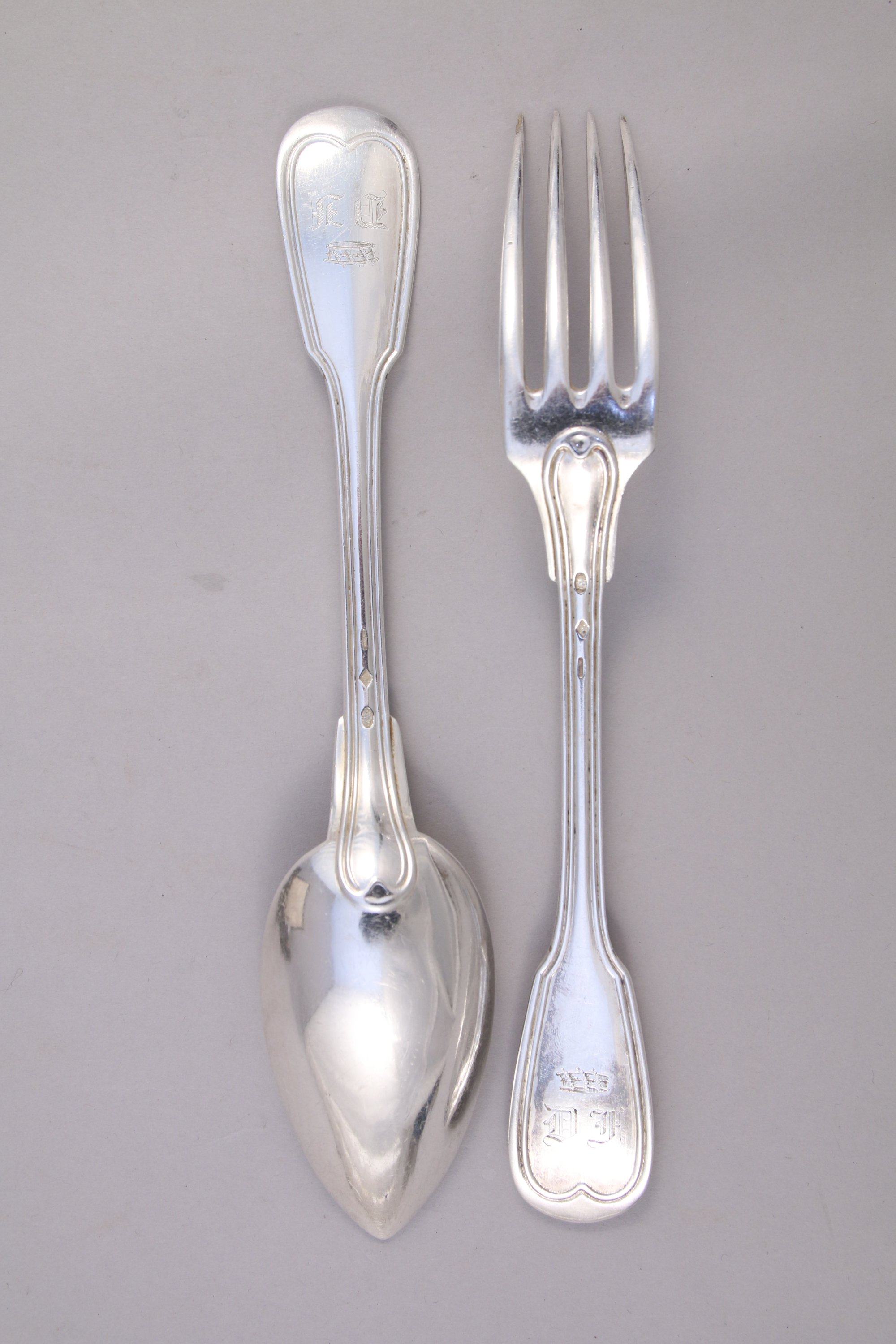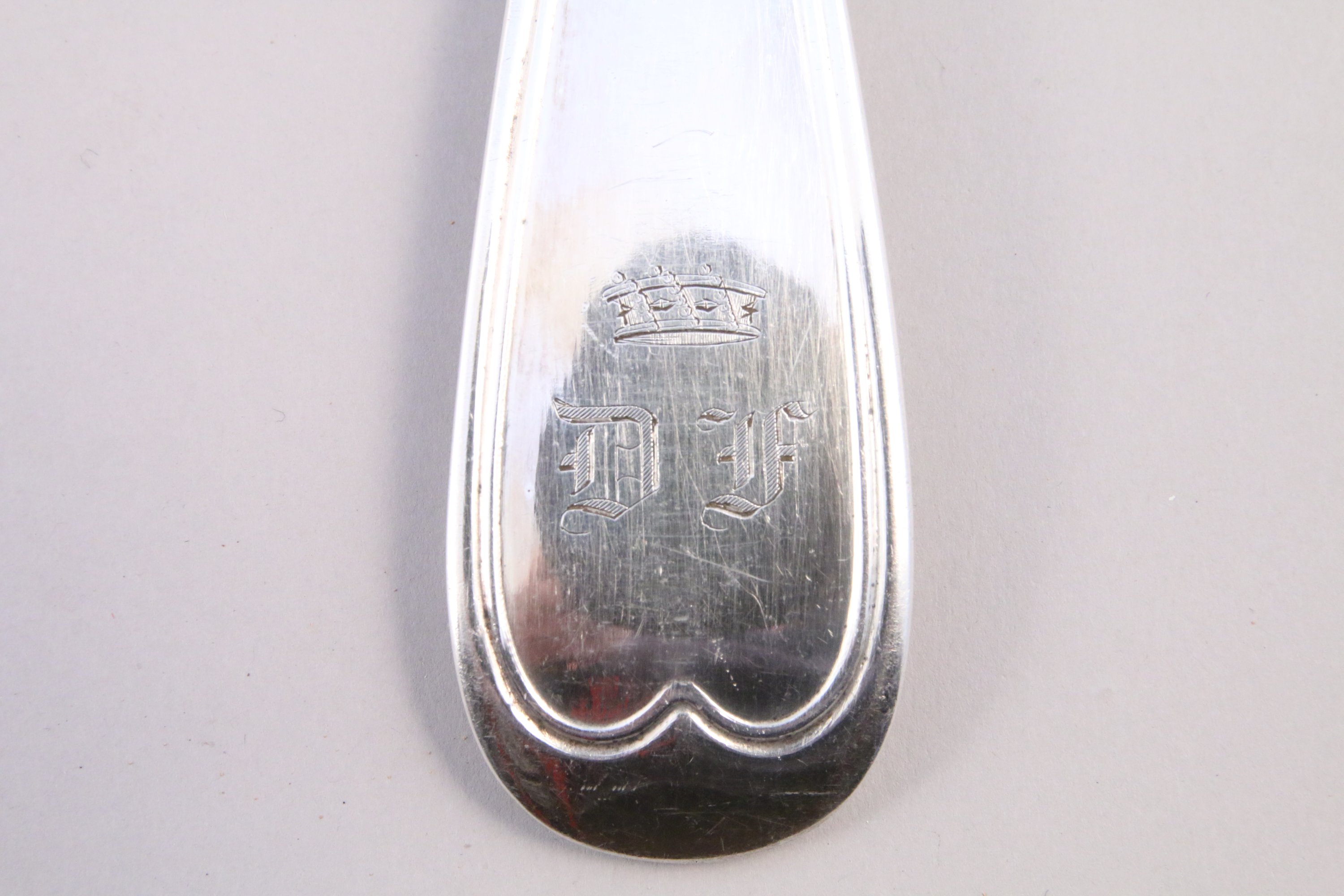 CHRISTOFLE MÉNAGÈRE de 25 pièces en métal argenté, modèle filet, les initiales sommées d'une couronne baronale, comprenant: 12 fourchettes, 12 cuillers, une louche.