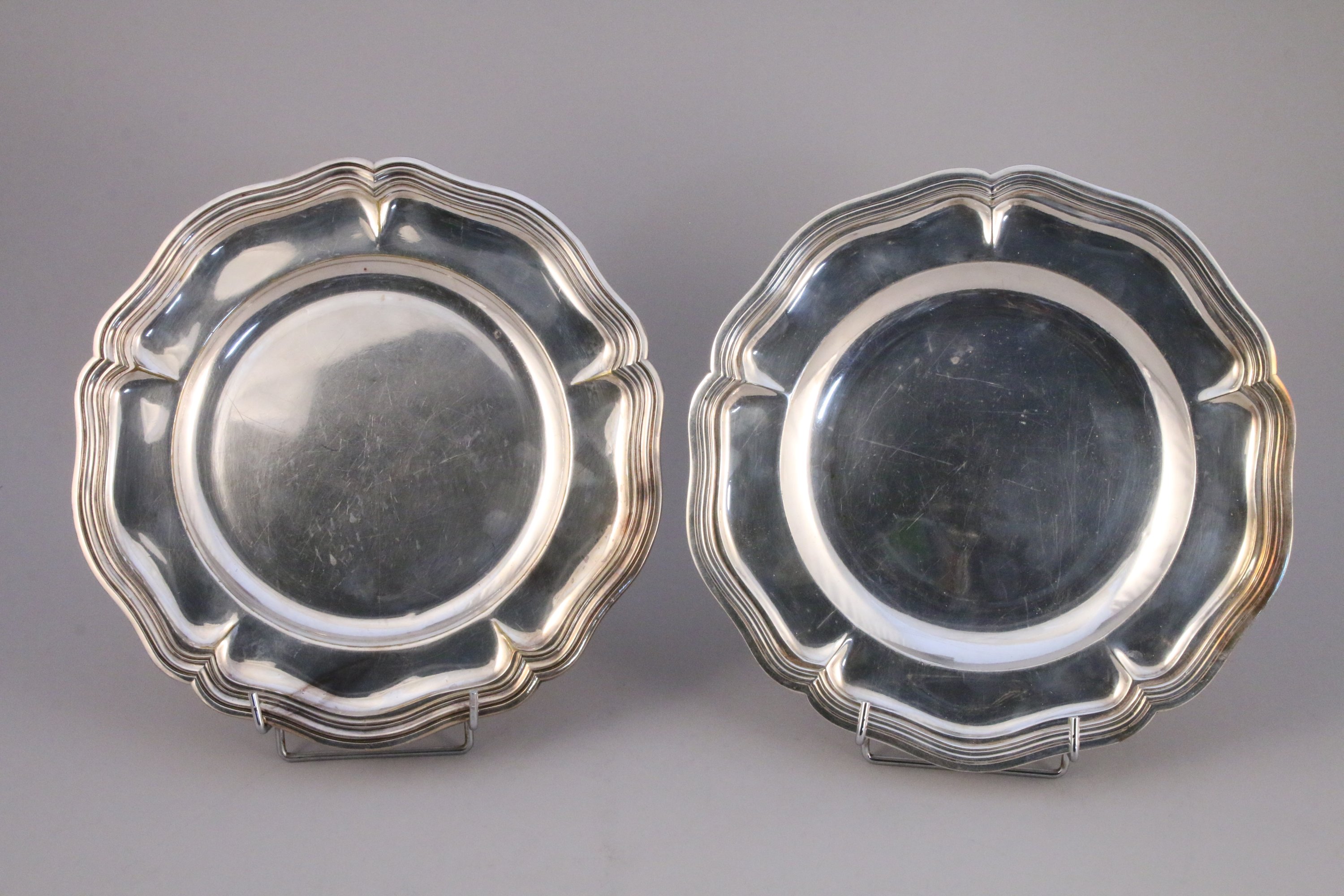 PAIRE de PLATS en métal argenté de forme ronde à battes-contours.