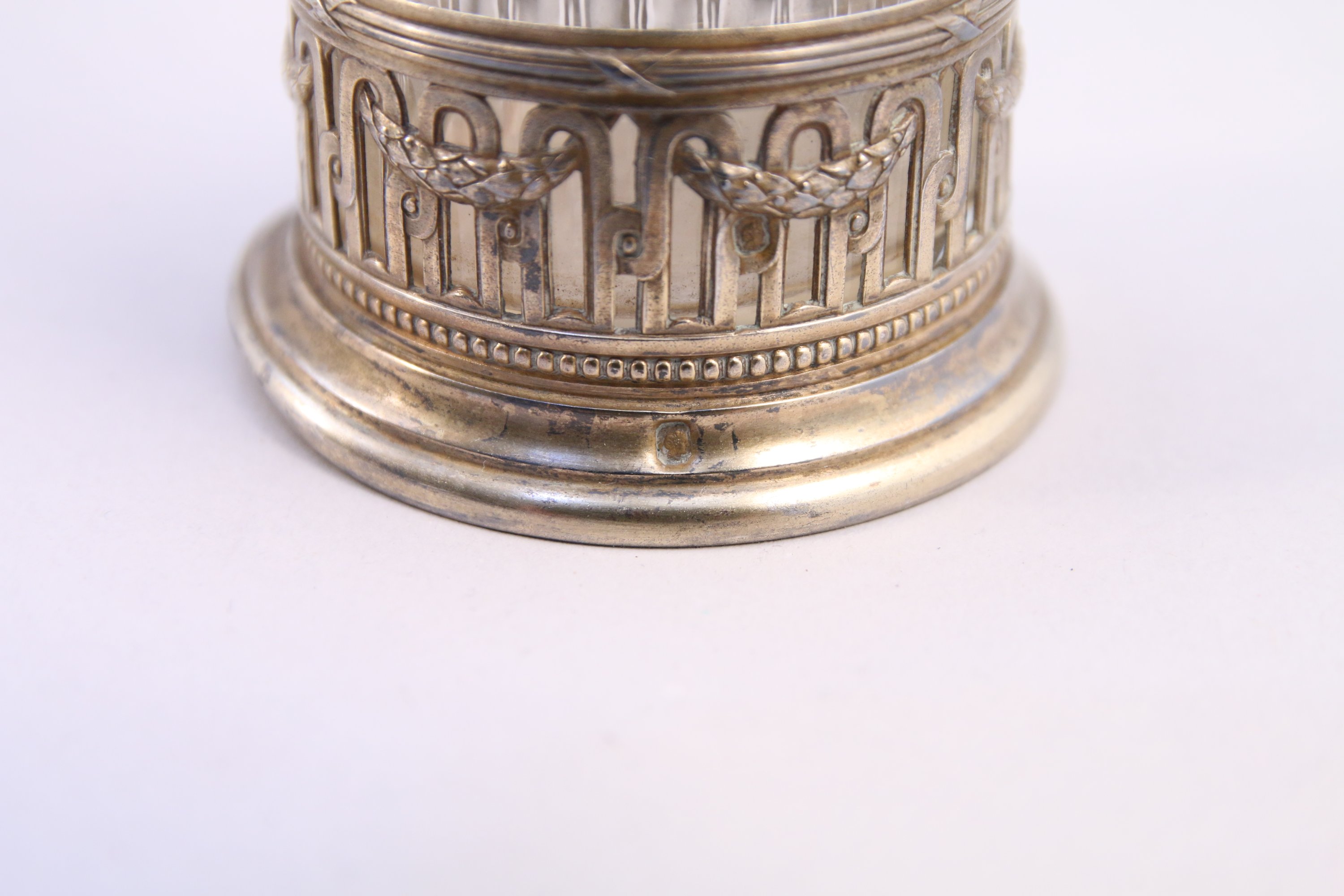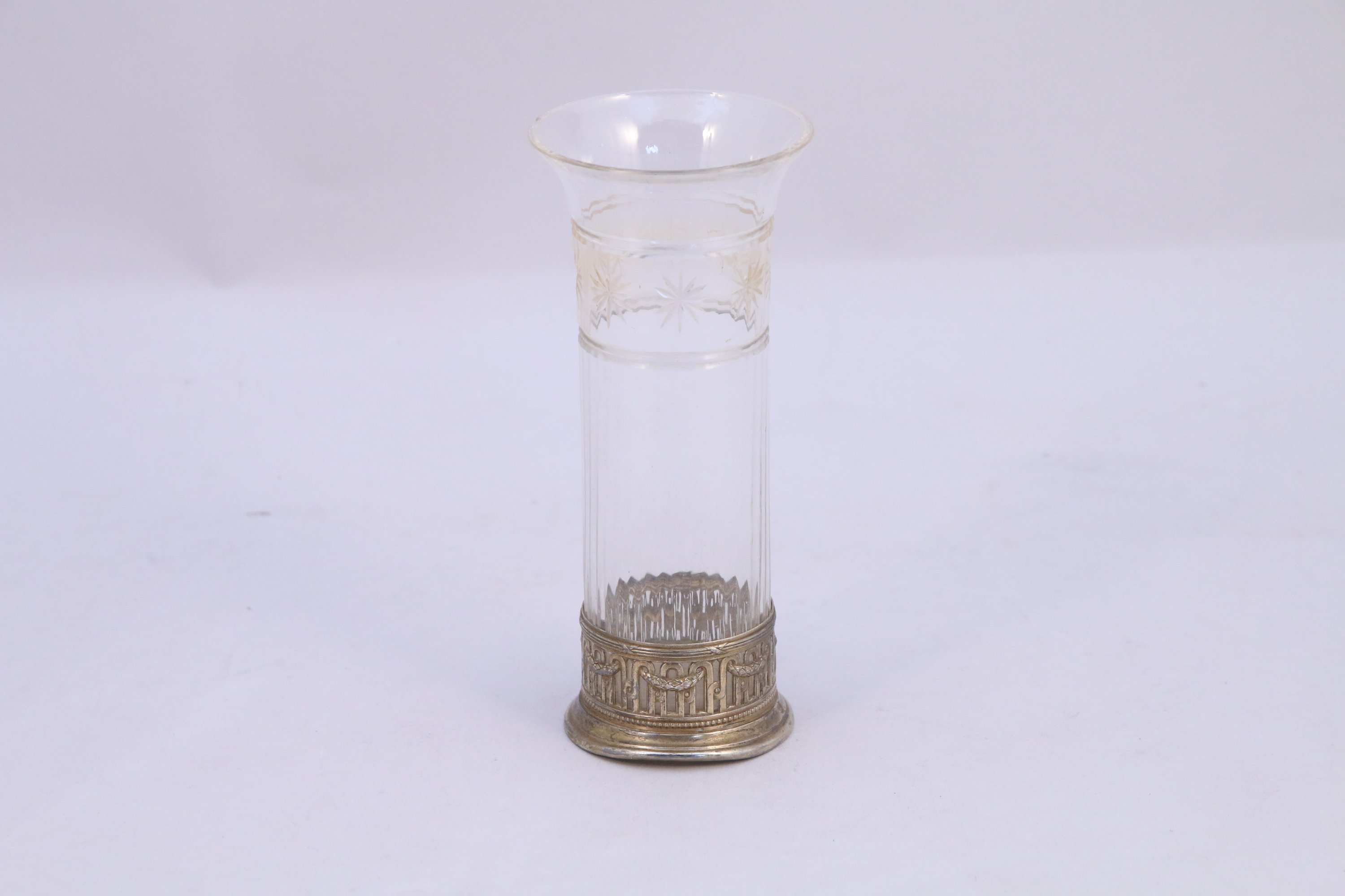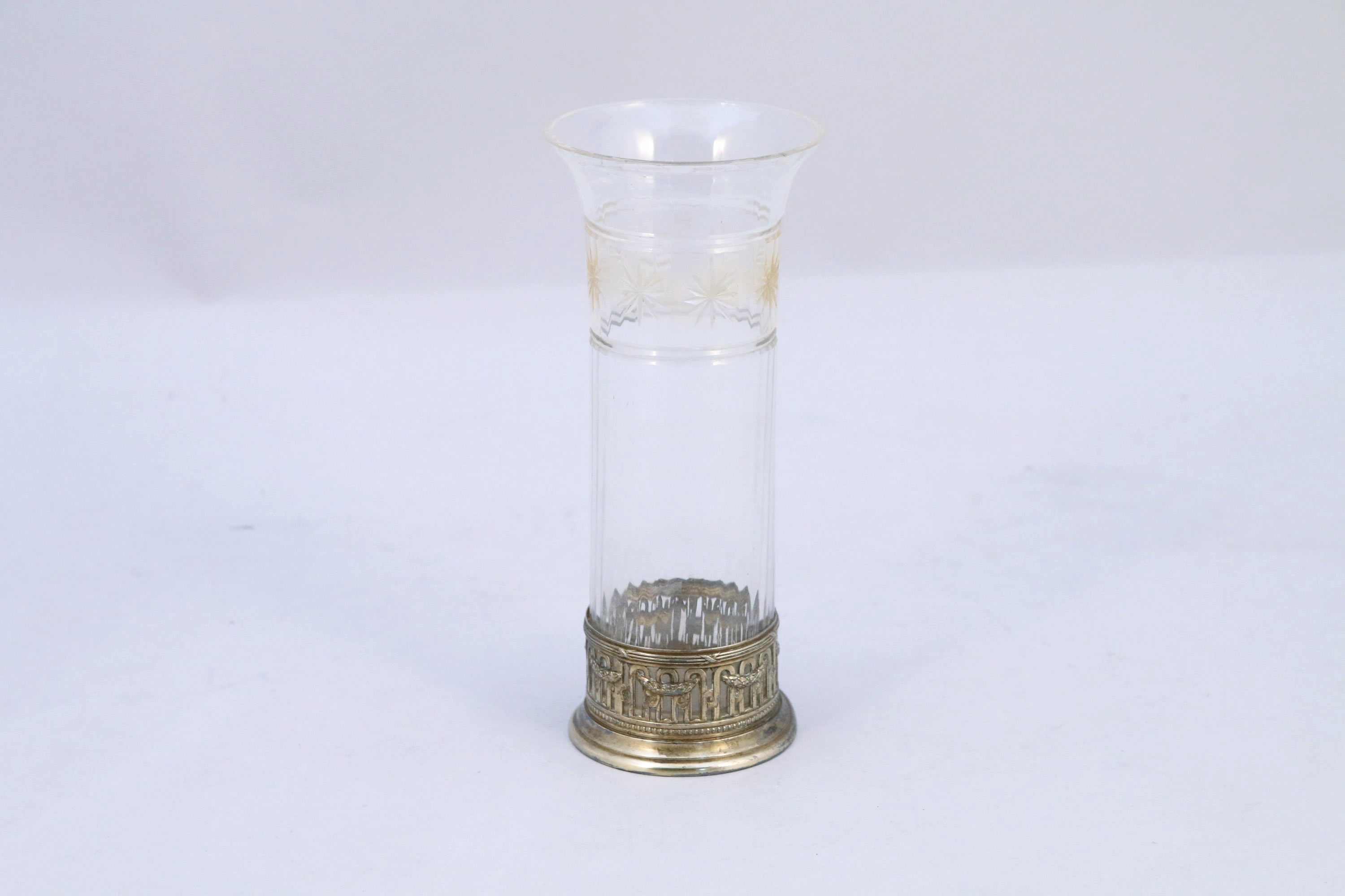VASE CORNET en argent gravé d'une frise d'étoiles, avec sa monture d'arches ajourées.