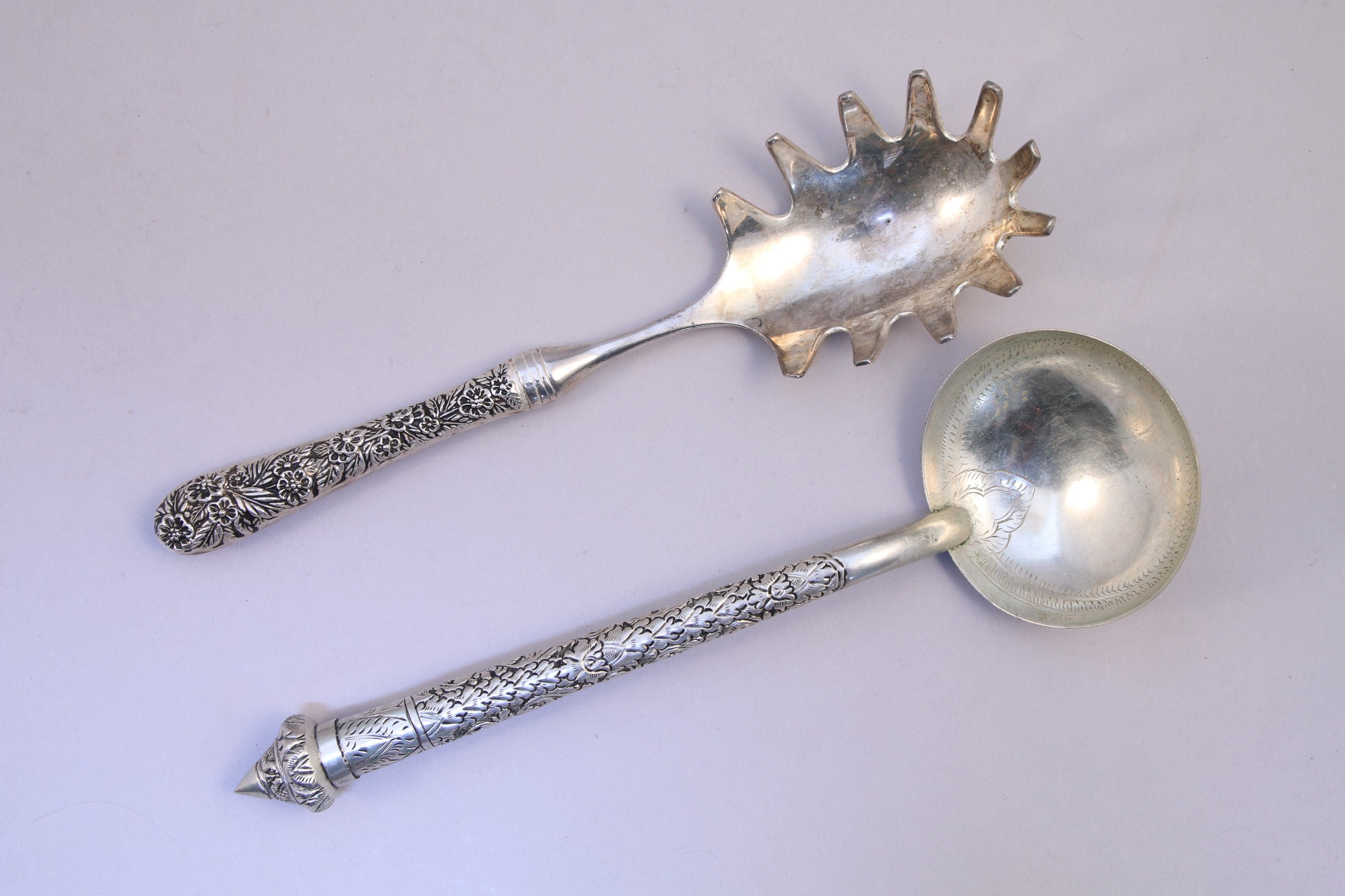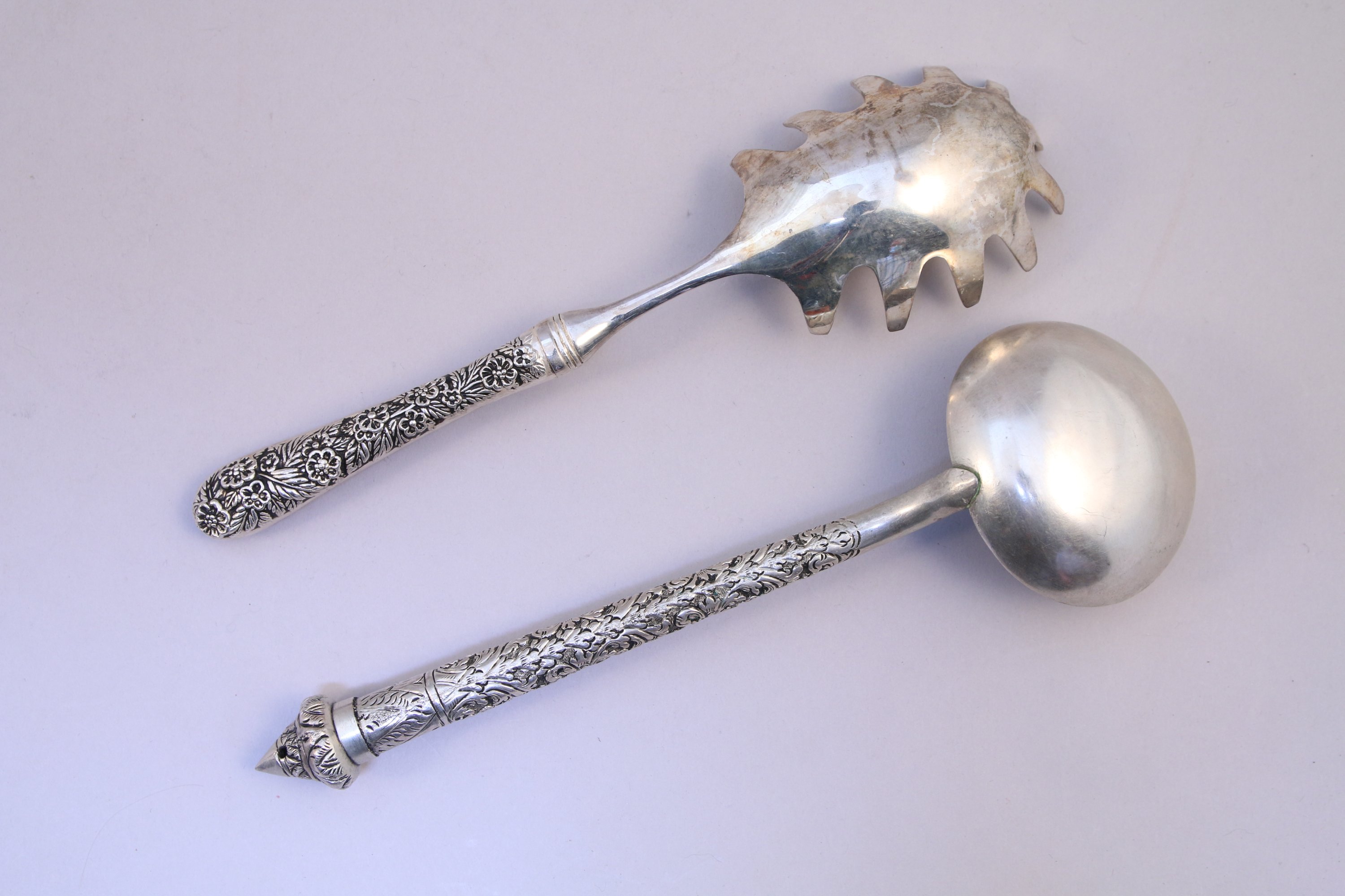 JOINT: LOUCHE et CUILLER de service en métal argenté.