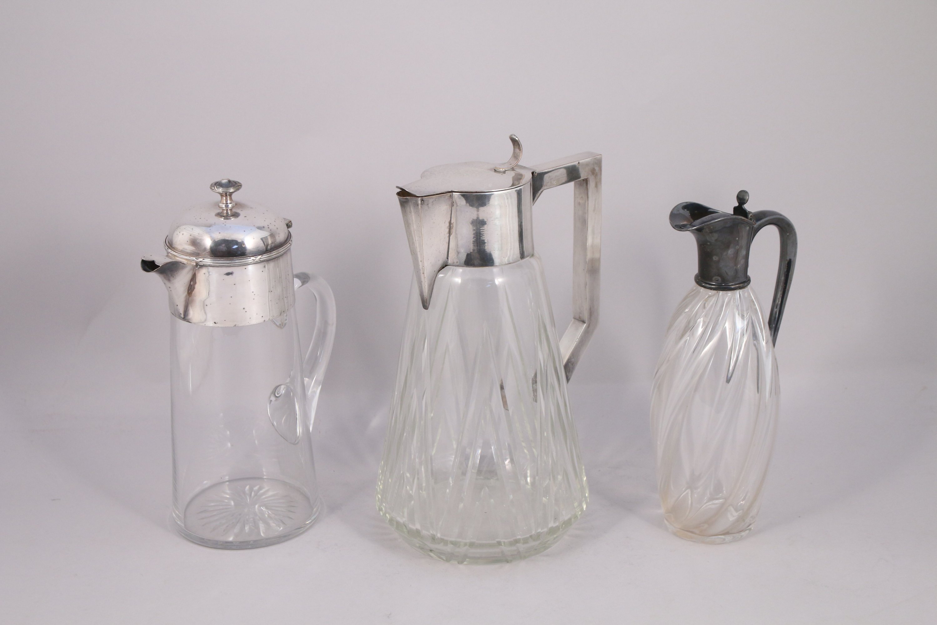 JOINT: CARAFE à VIN en verre de forme torse, monture en métal argenté. Haut. 27 cm.