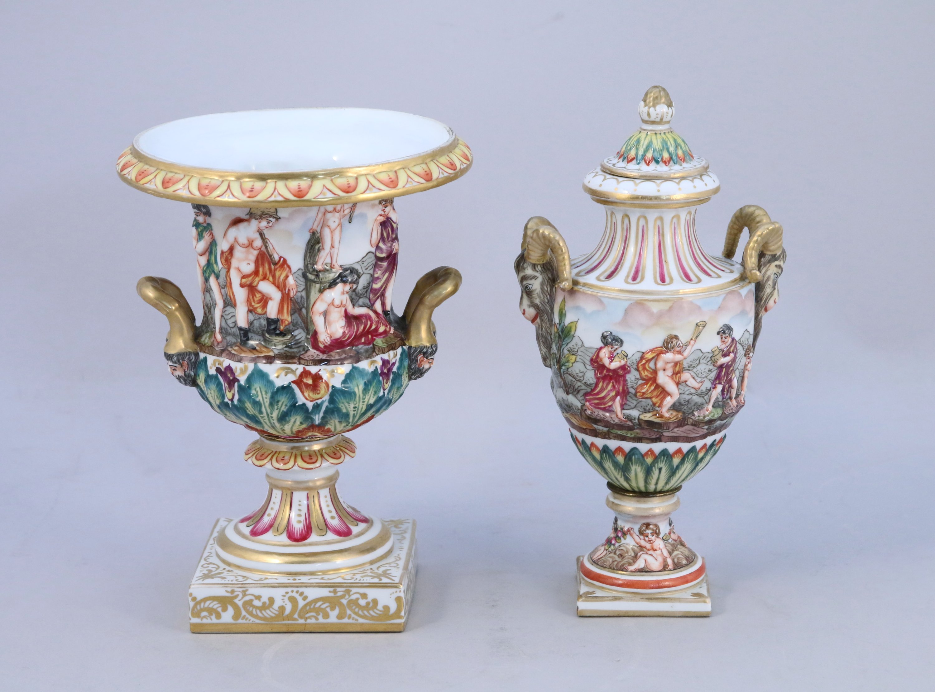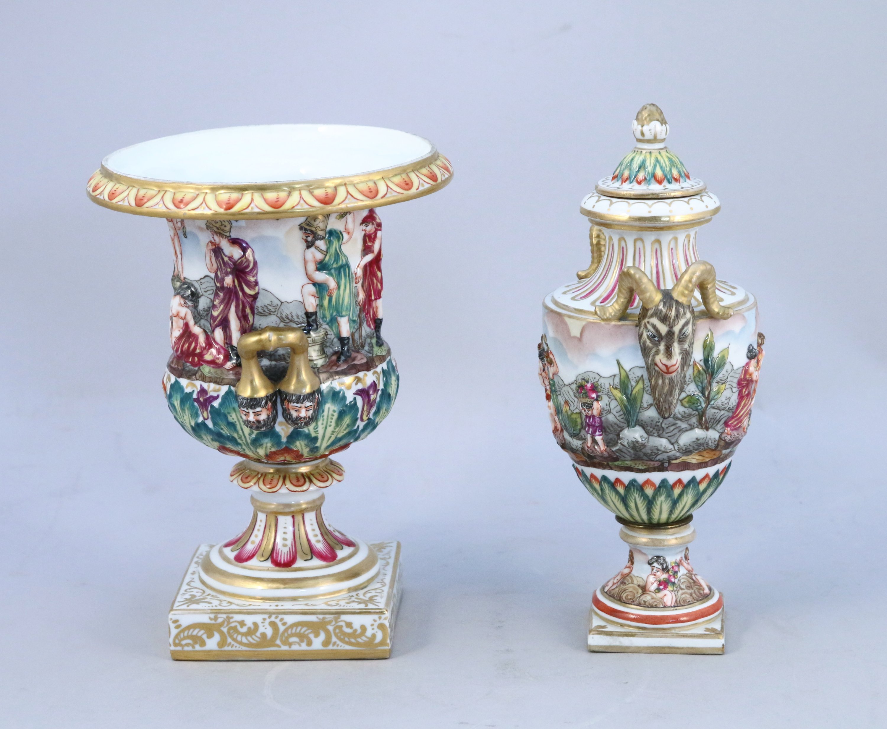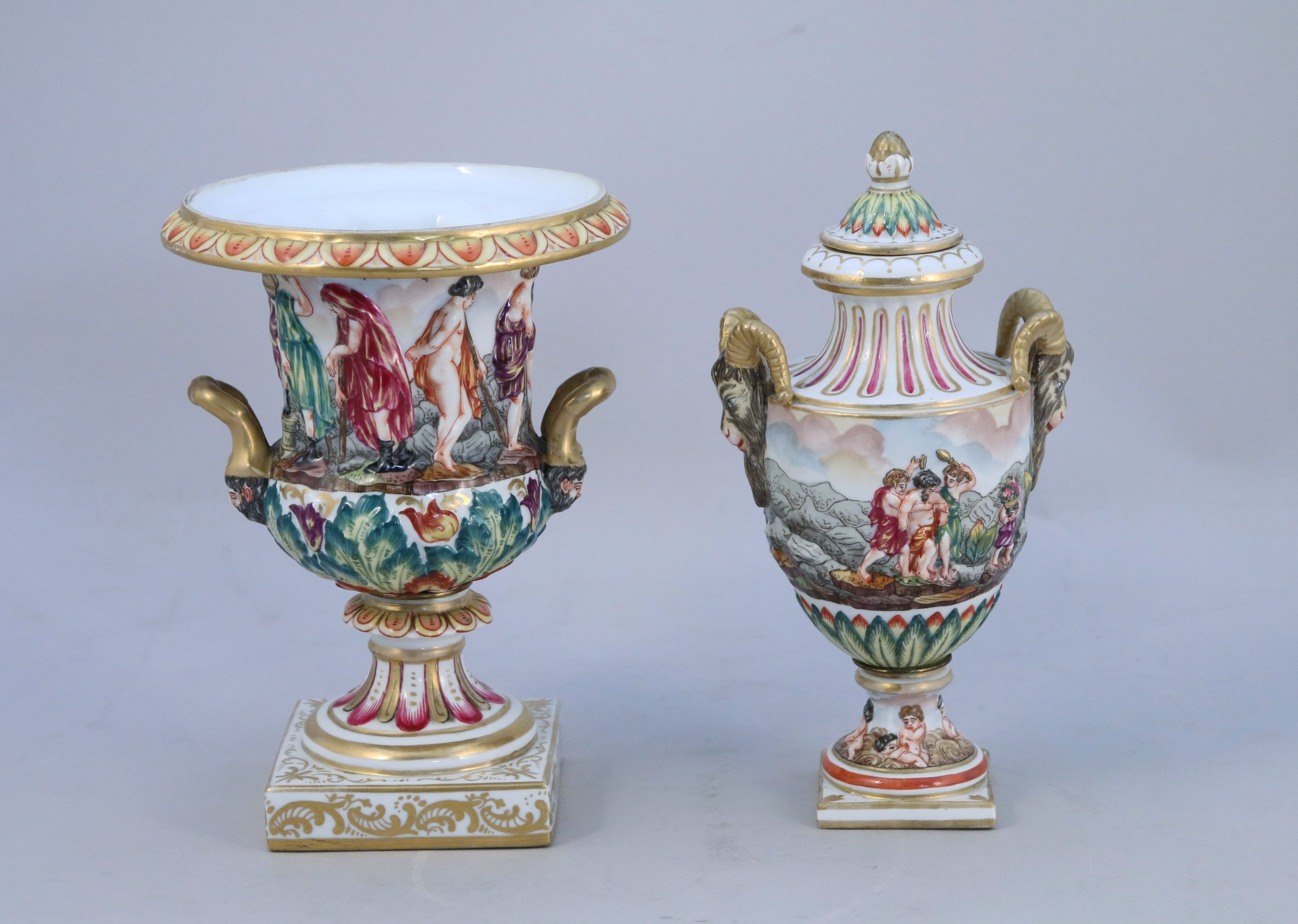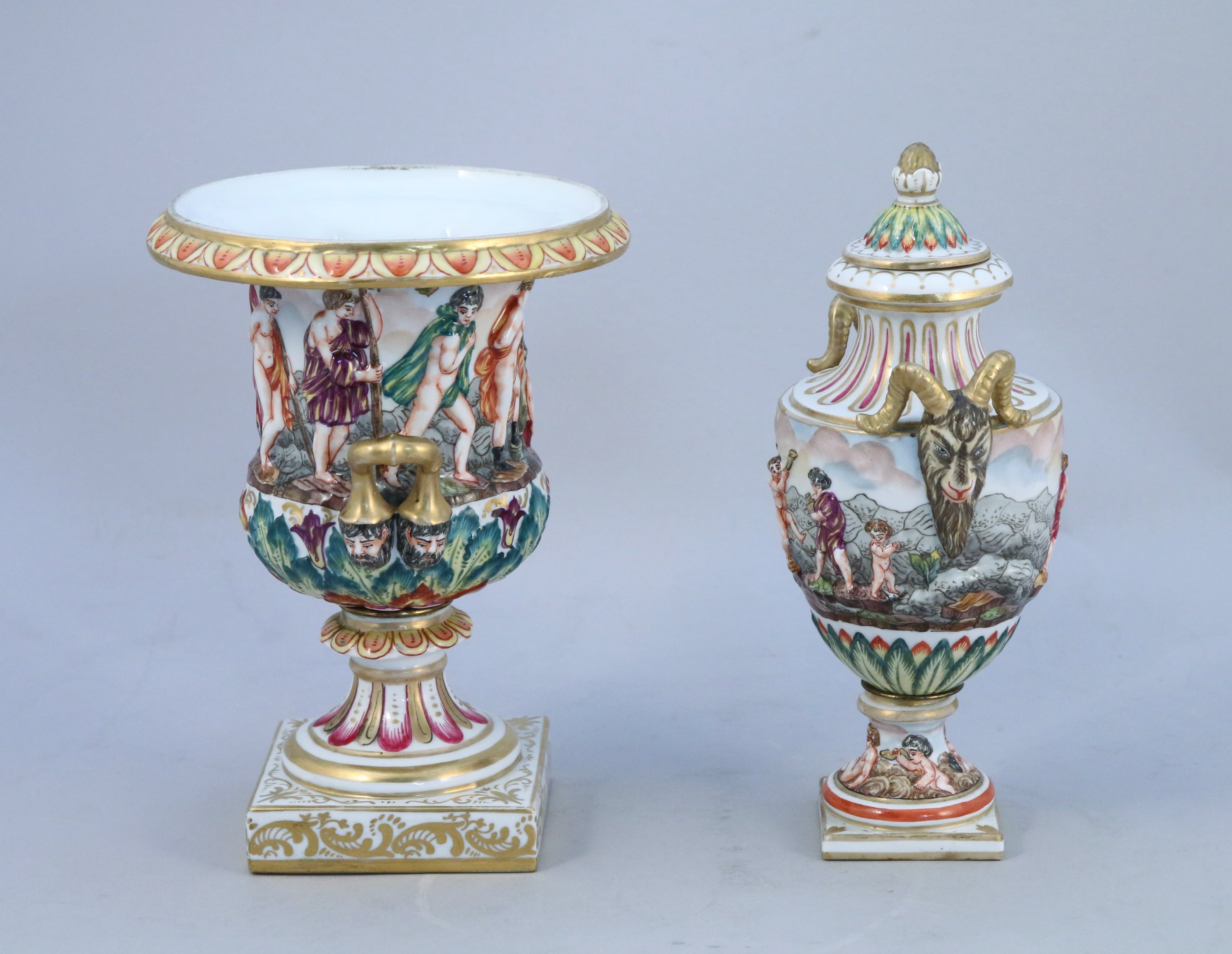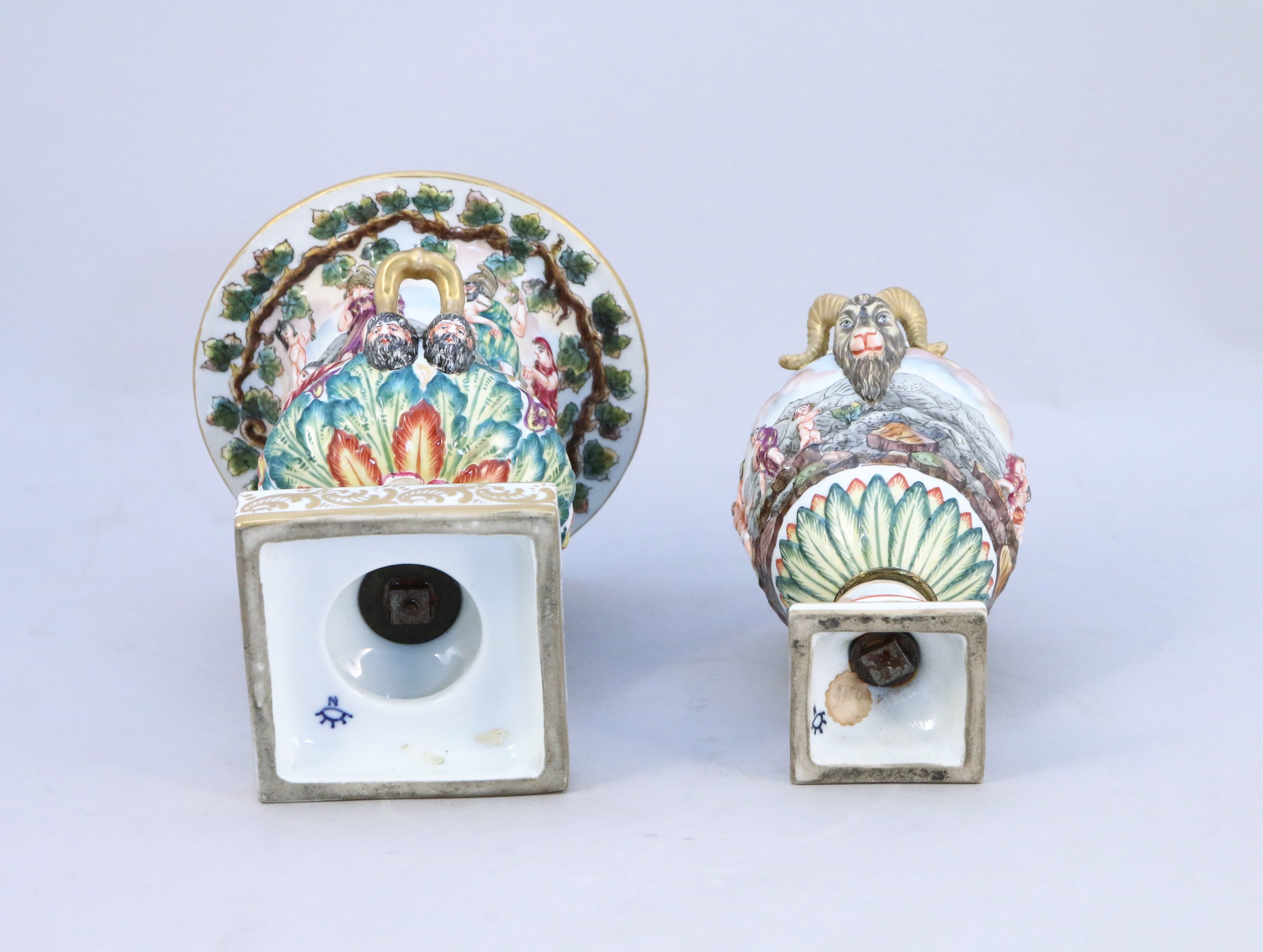 CAPODIMONTE. RÉUNION de deux PIÈCES en porcelaine: