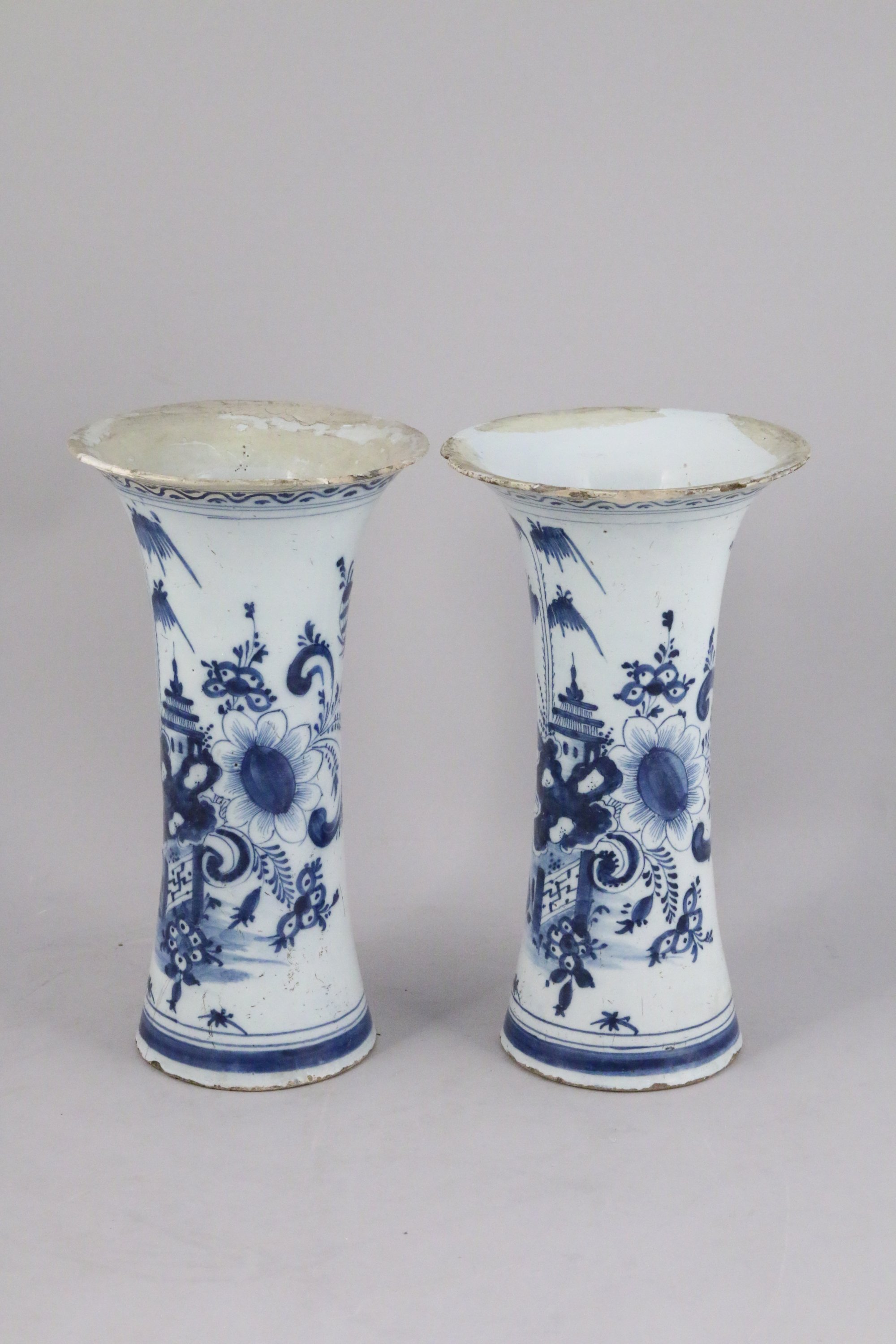 en faience en bleu et blanc à décor de d'oiseaux dans un paysage à la pagode.