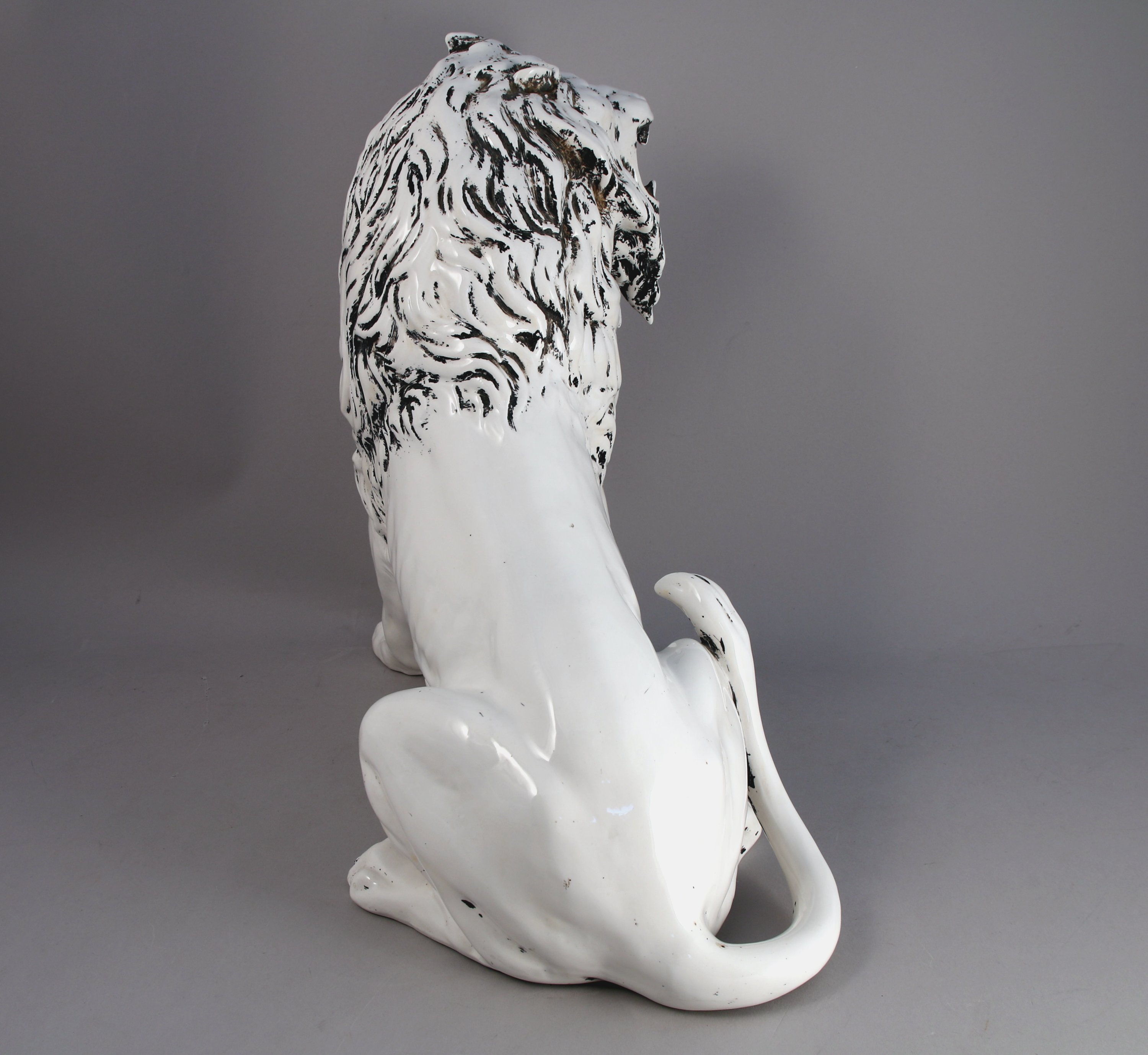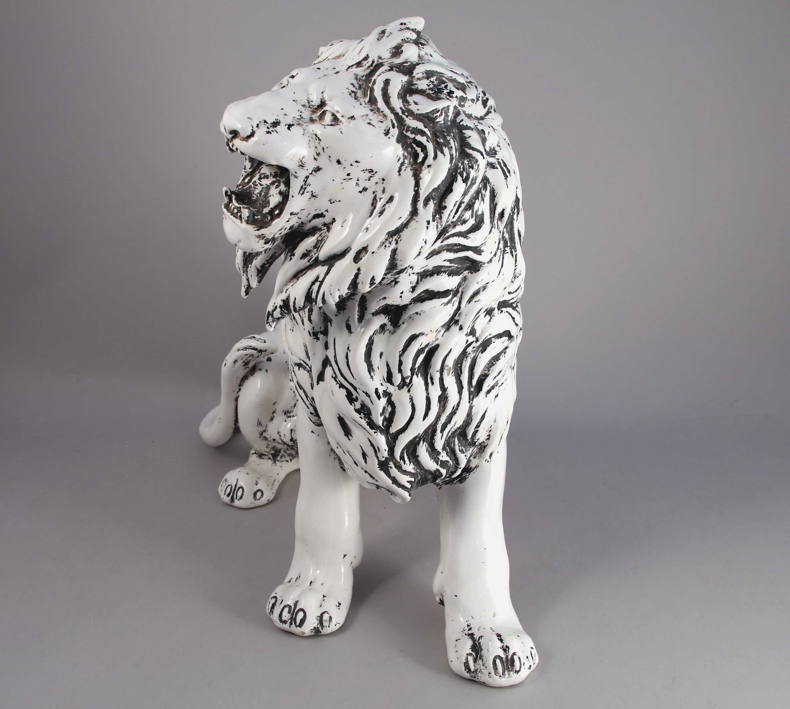 en faïence vernissée blanche. Signature olographe et cachet d'une manufacture européenne au dessous.