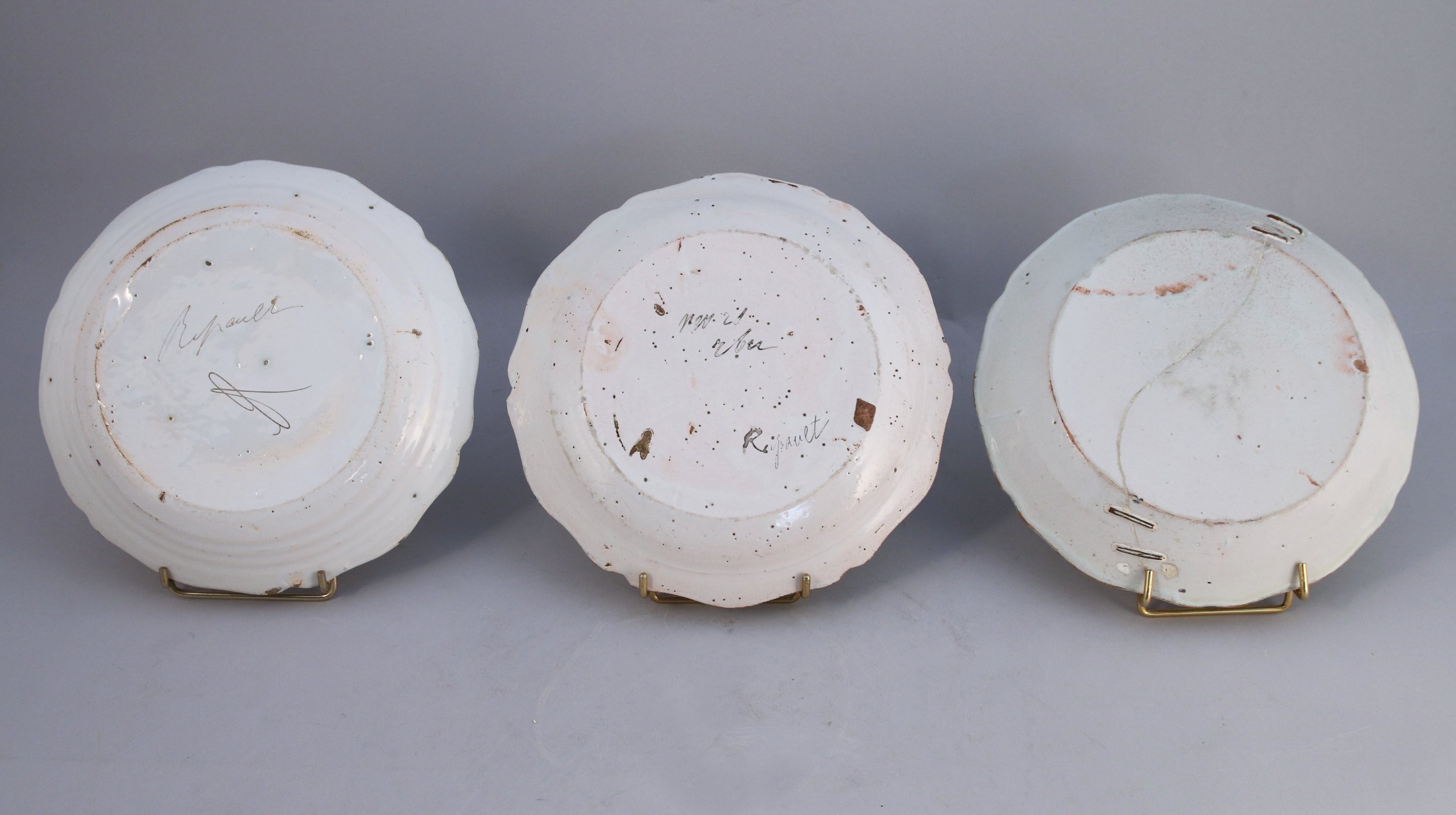 - ASSIETTE, représentant la réunion des Trois Ordres: l'épée, la crosse, et la bêche tête en haut soutenant la fleur de lys, à la base, rameaux noués. Au revers l'inscription apocryphe "Ripault".