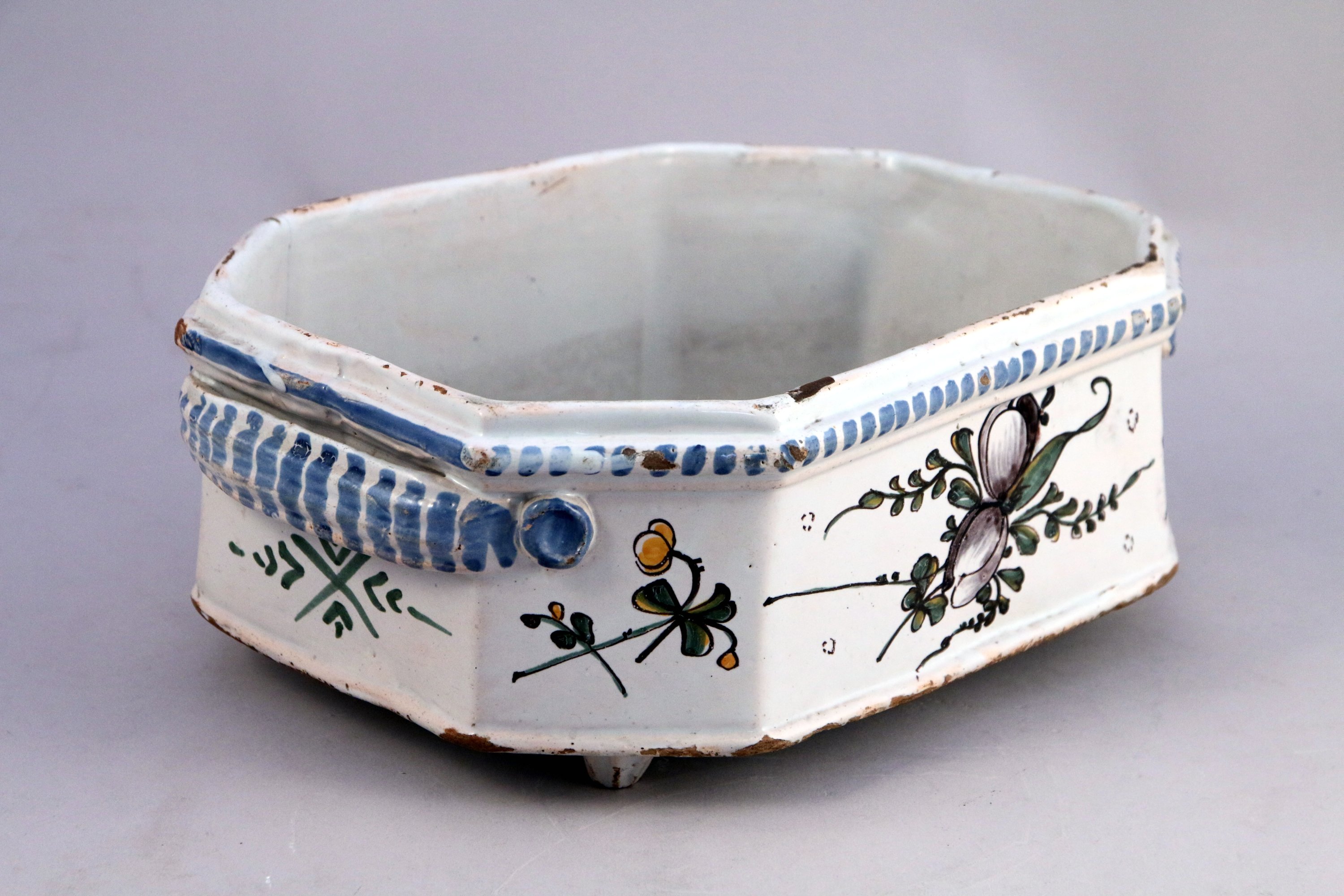 NEVERS, fin XVIIIe début XIXe. JARDINIÈRE rectangulaire à pans coupés