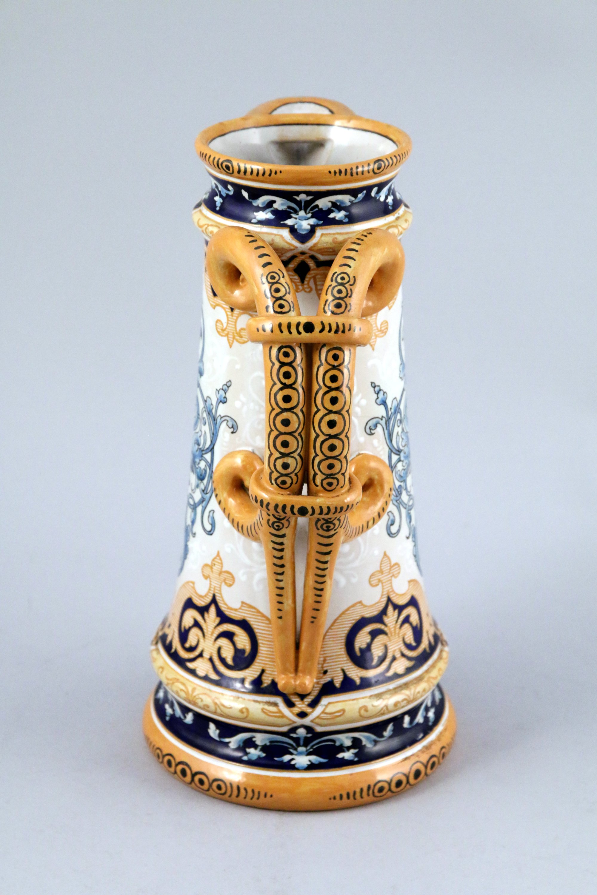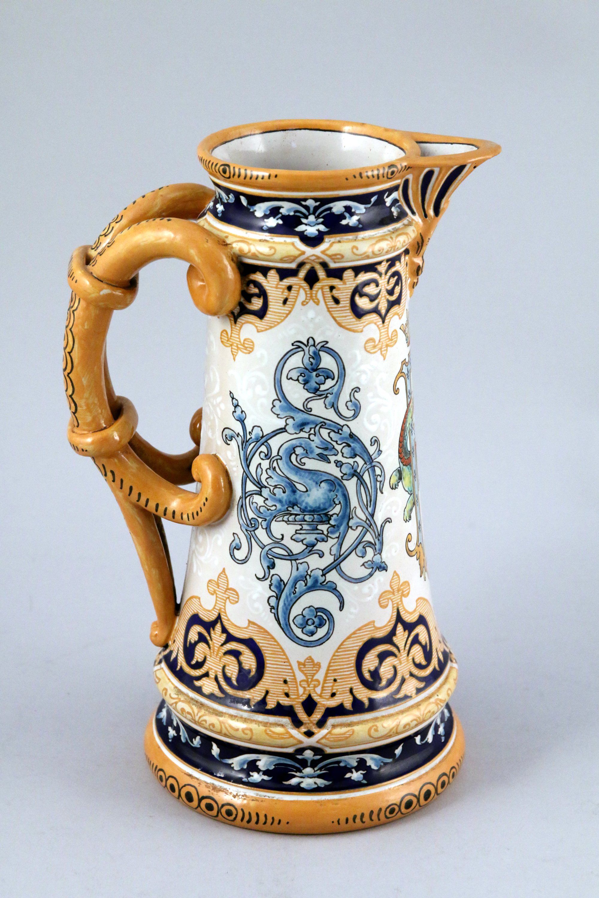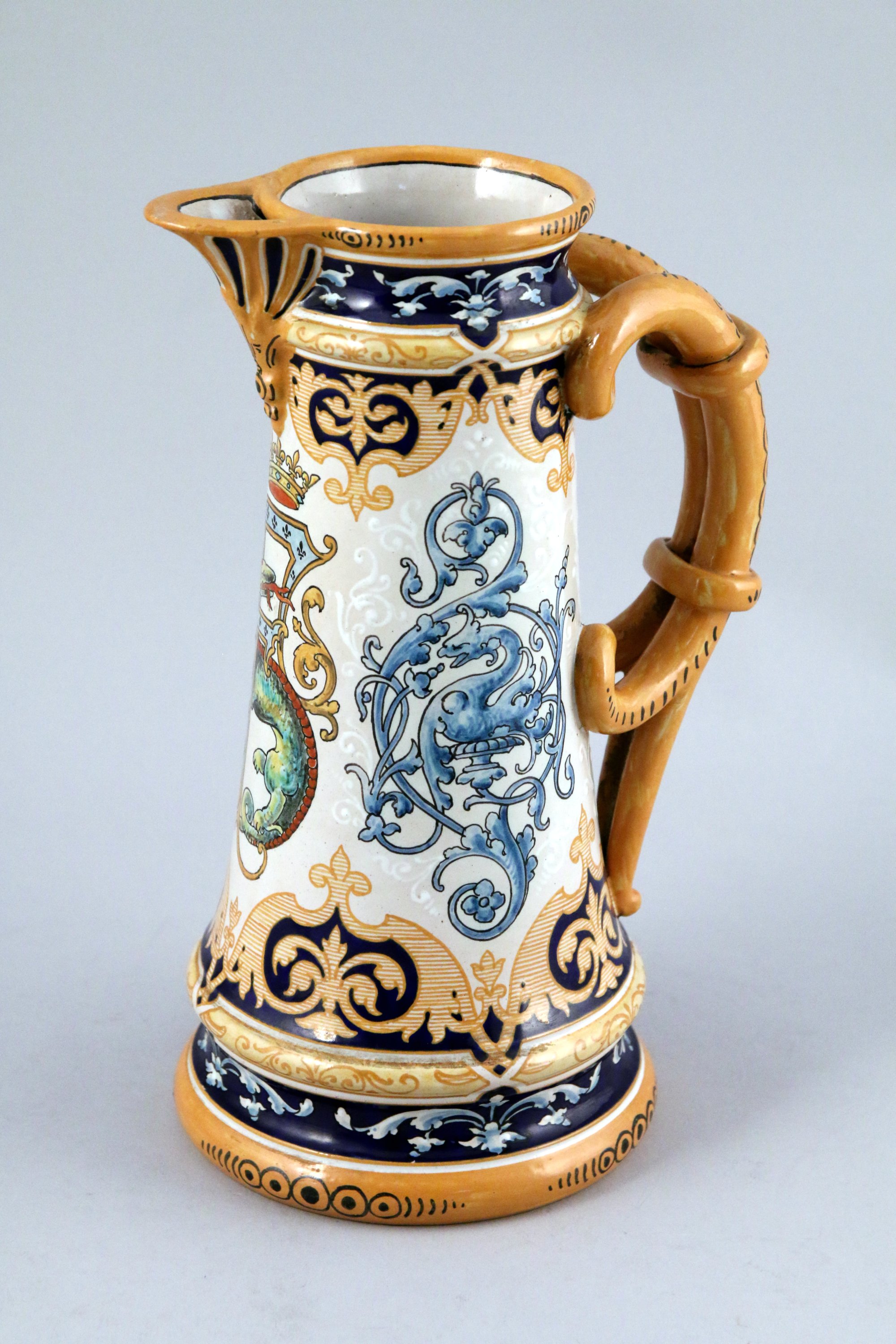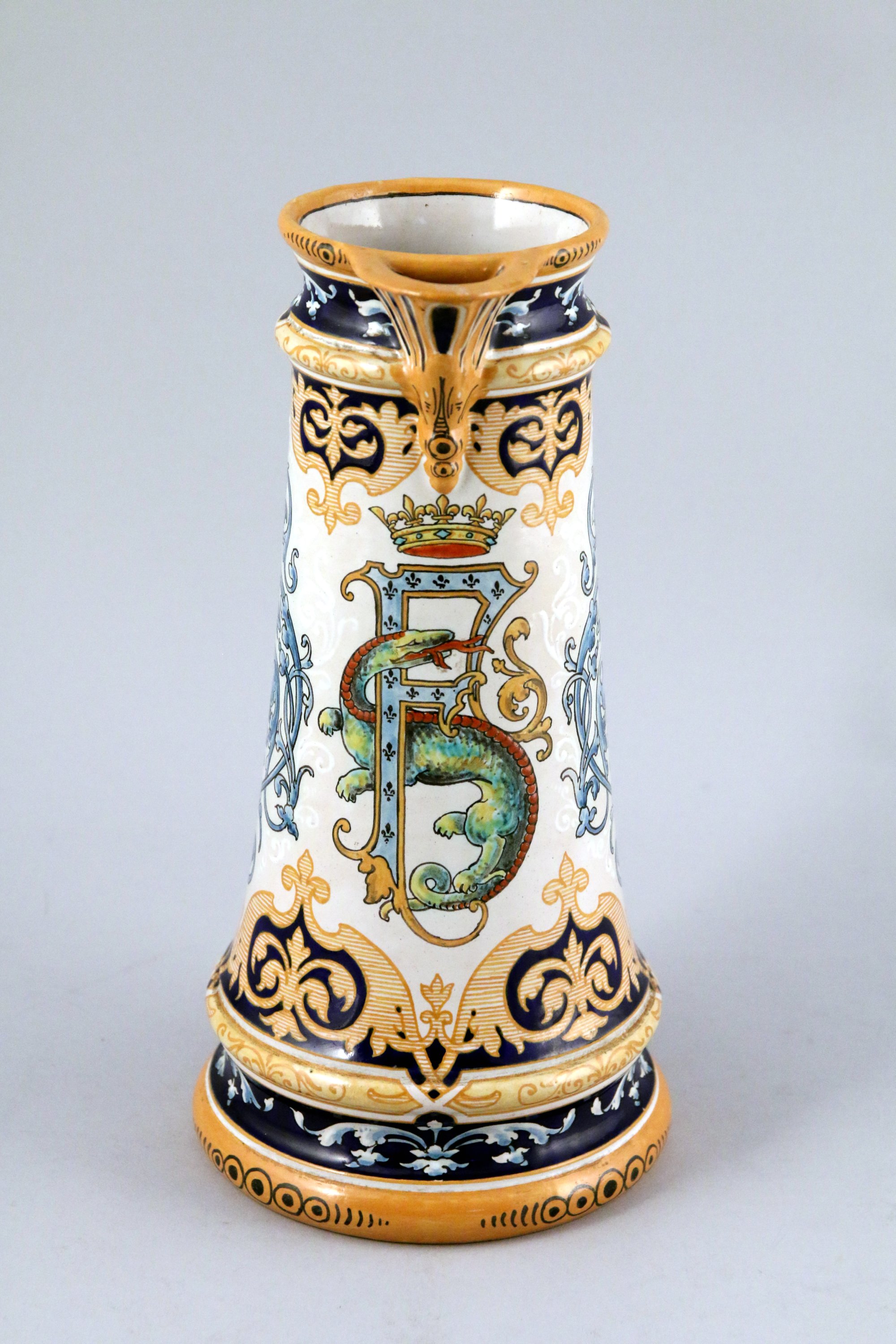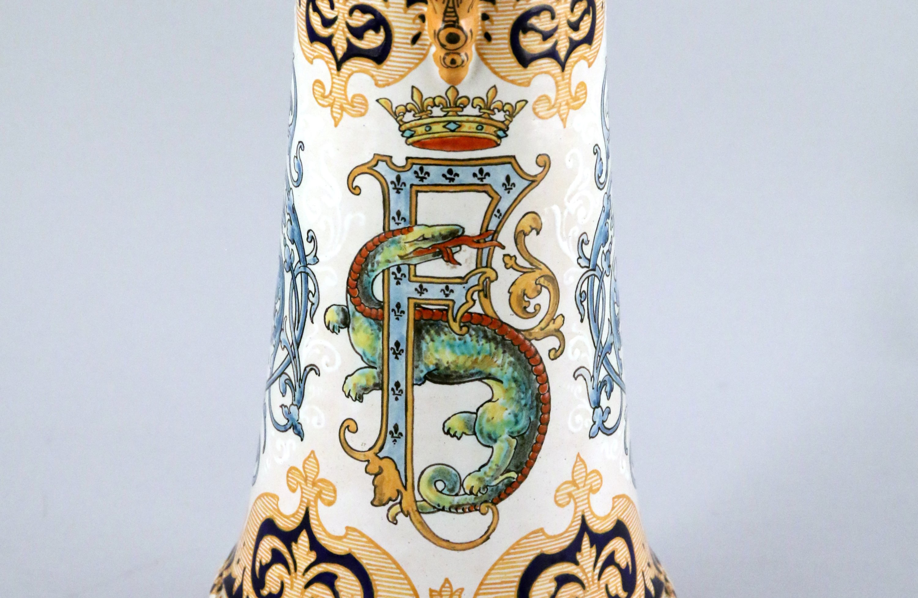 en céramique émaillée à décor de rinceaux, grotesques et candélabres et d'une salamandre enlacée dans un F pour François Ier.