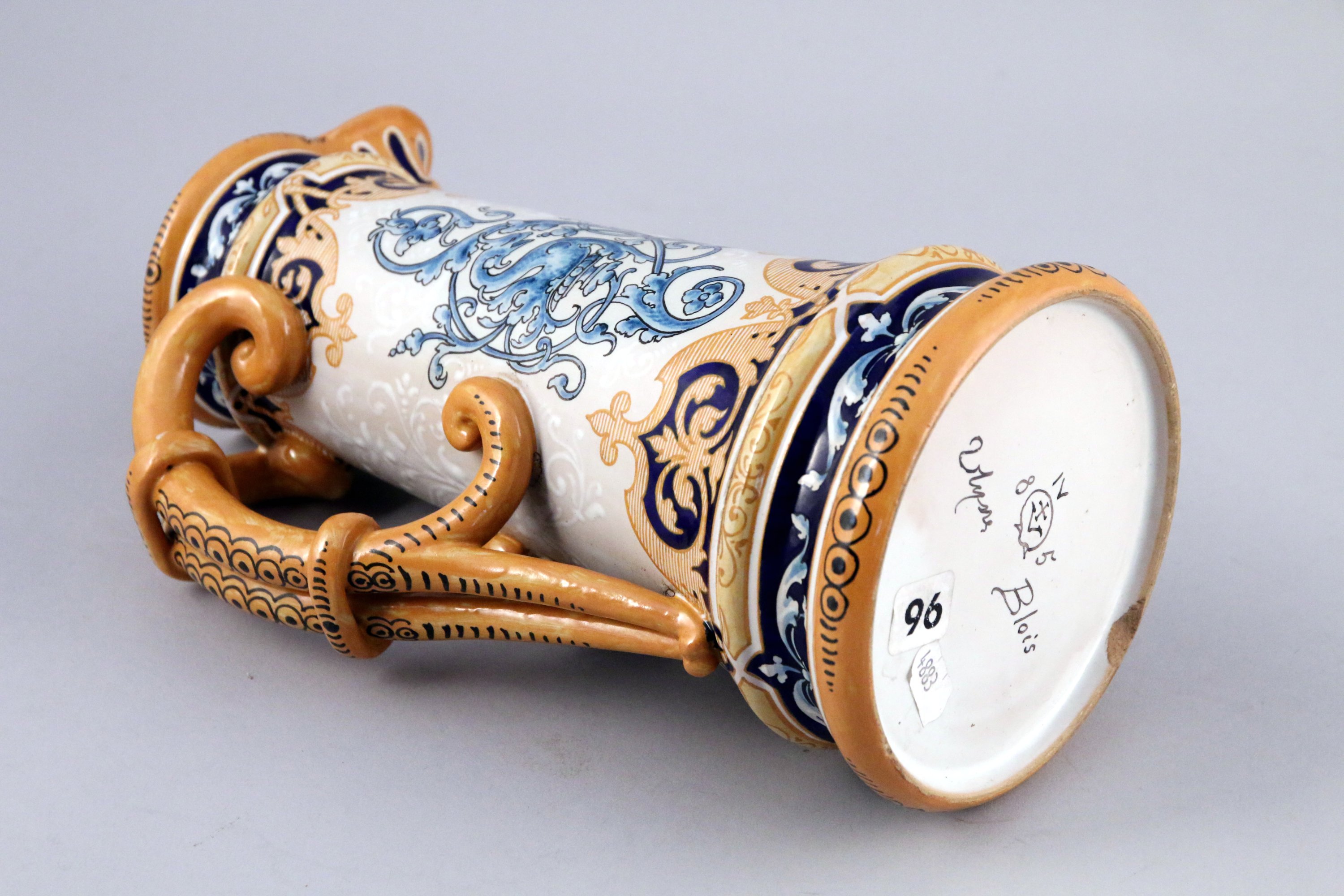 Martine TISSIER de MALLERAIS, "La faïence de Blois 1862-1953", éditions Berger m, 2017, pour une exemplaire similaire pp. 39 et 80.