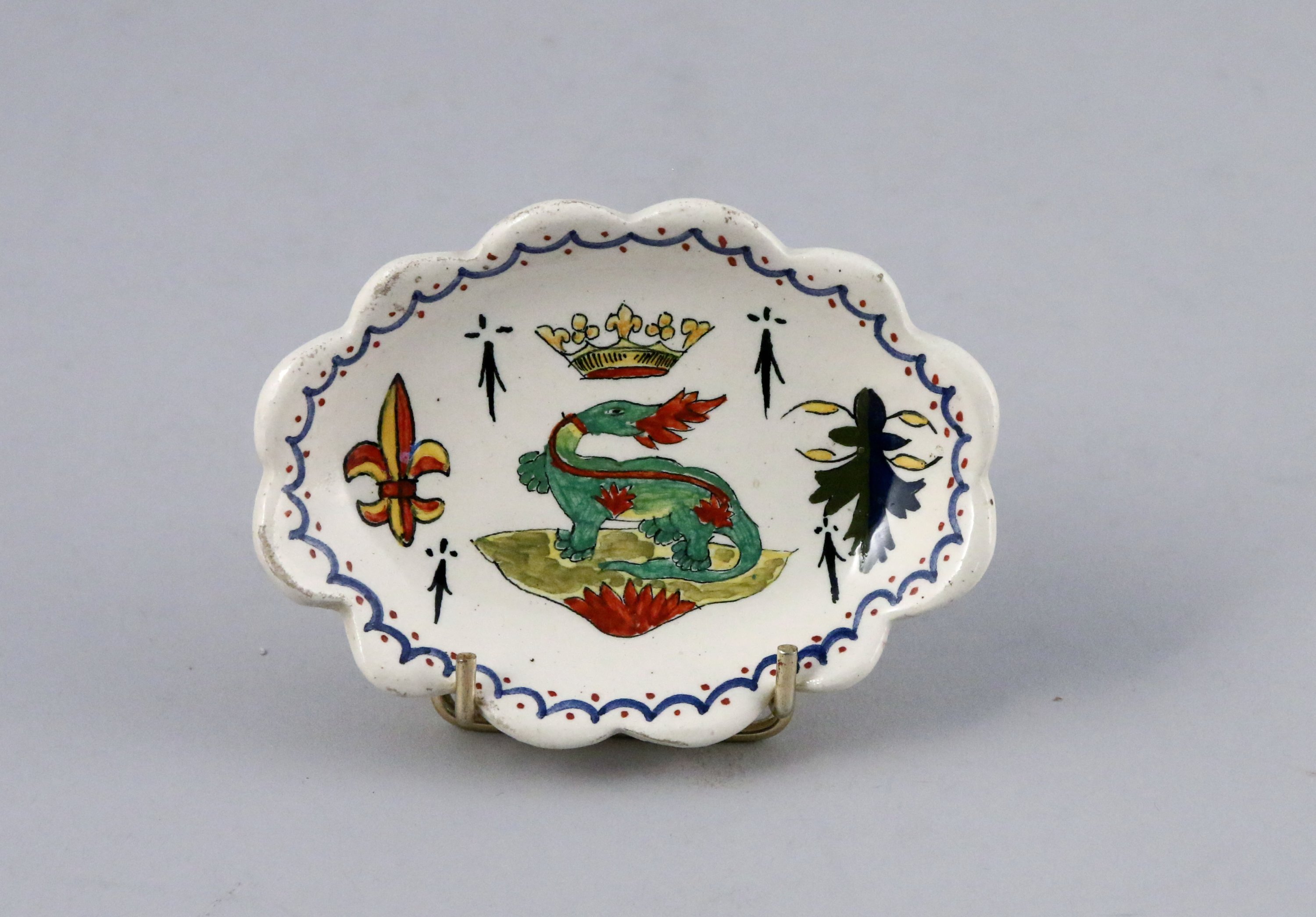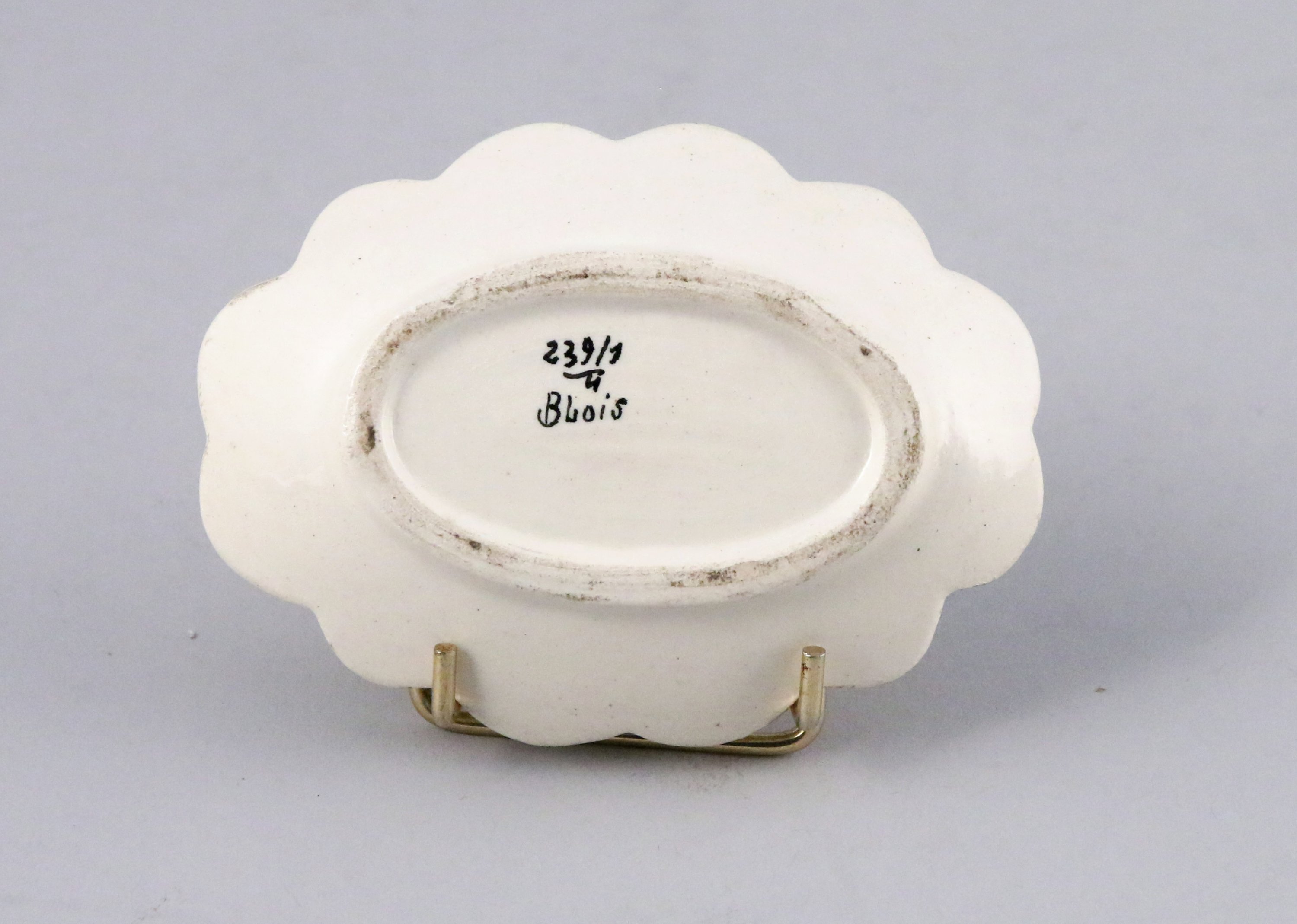 BLOIS. VIDE- POCHE en céramique émaillée à décor d'une salamandre. Marque olographe Blois 239/1. Larg. 8, Long. 11 cm.
