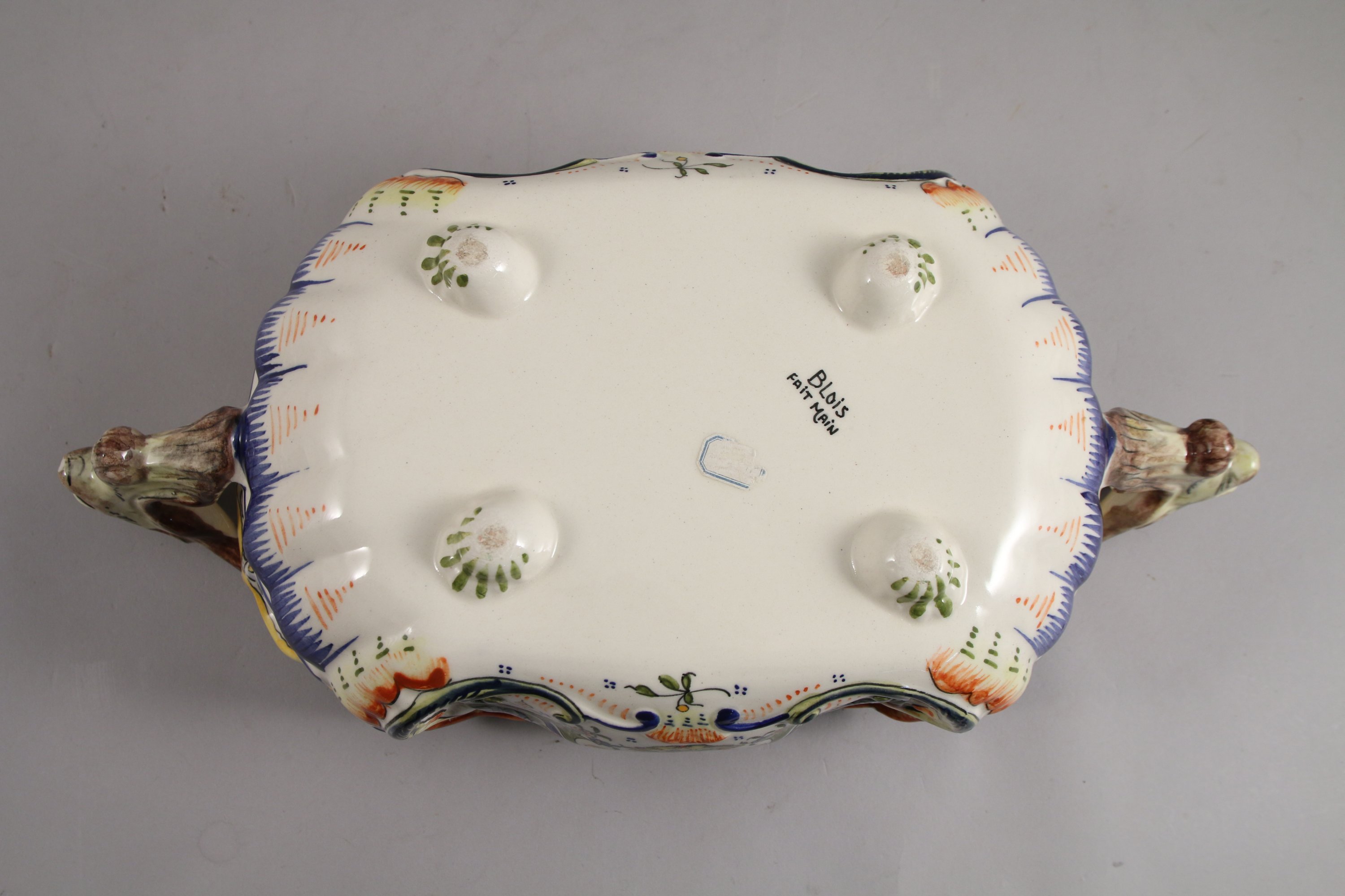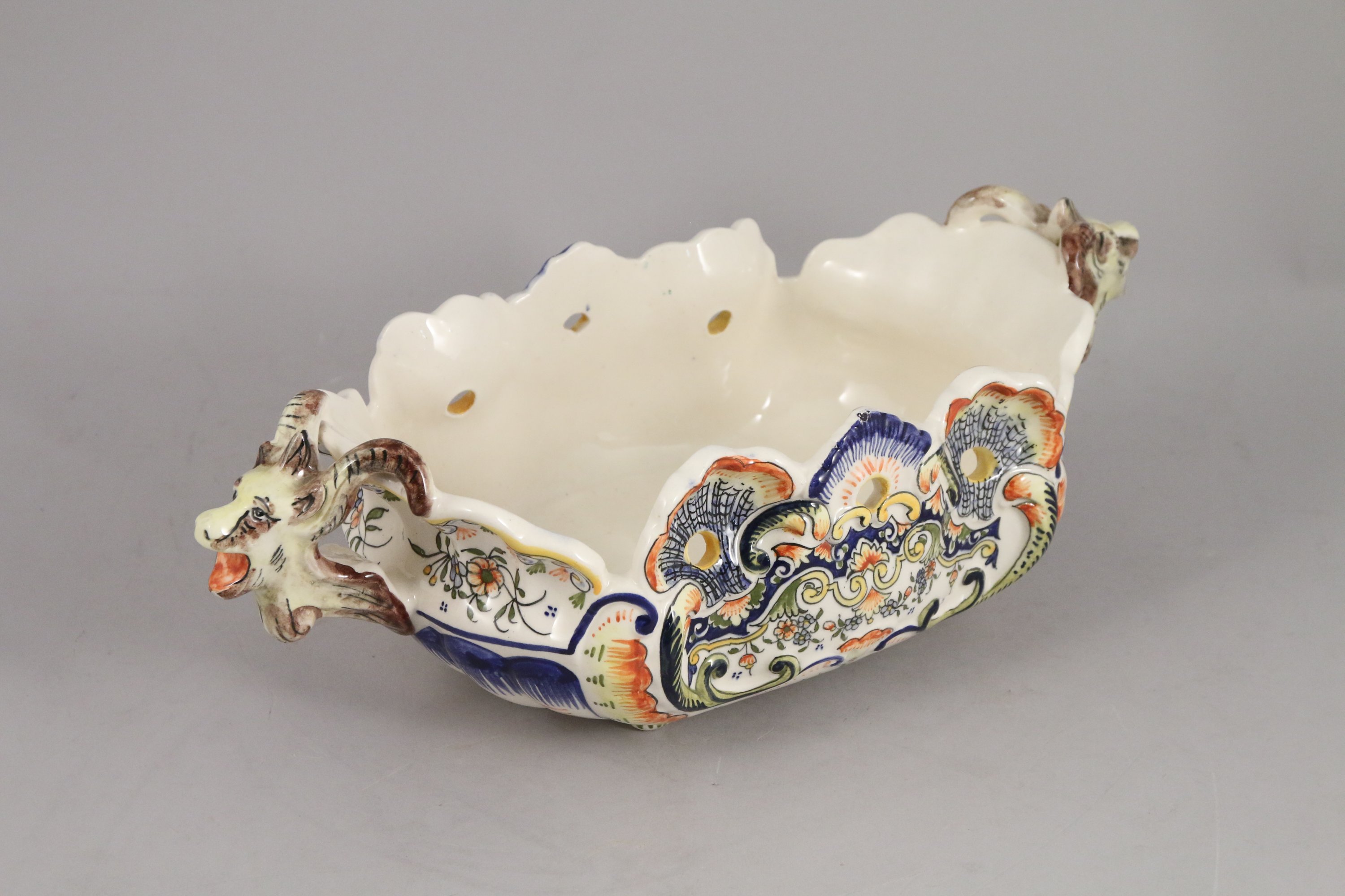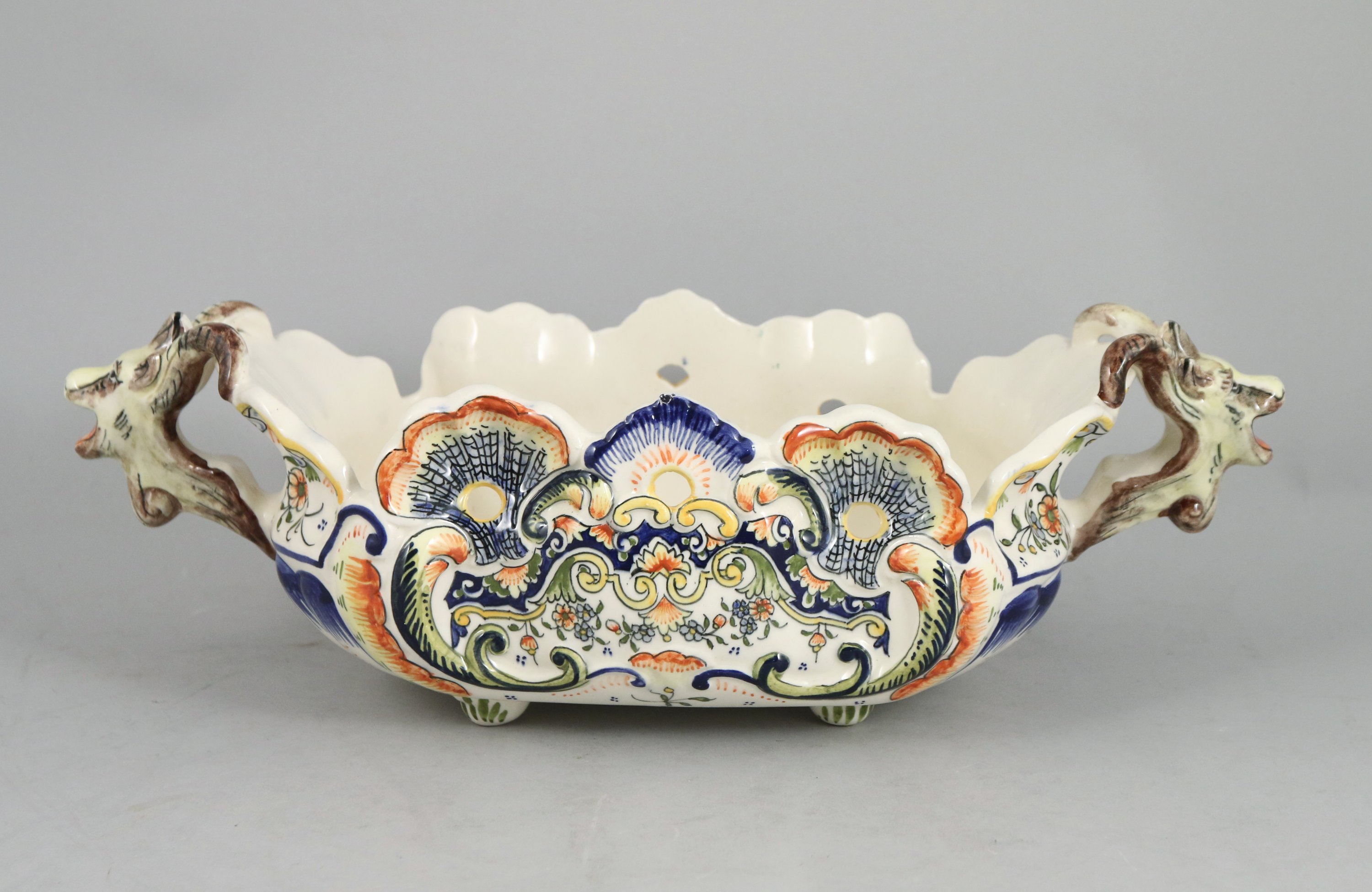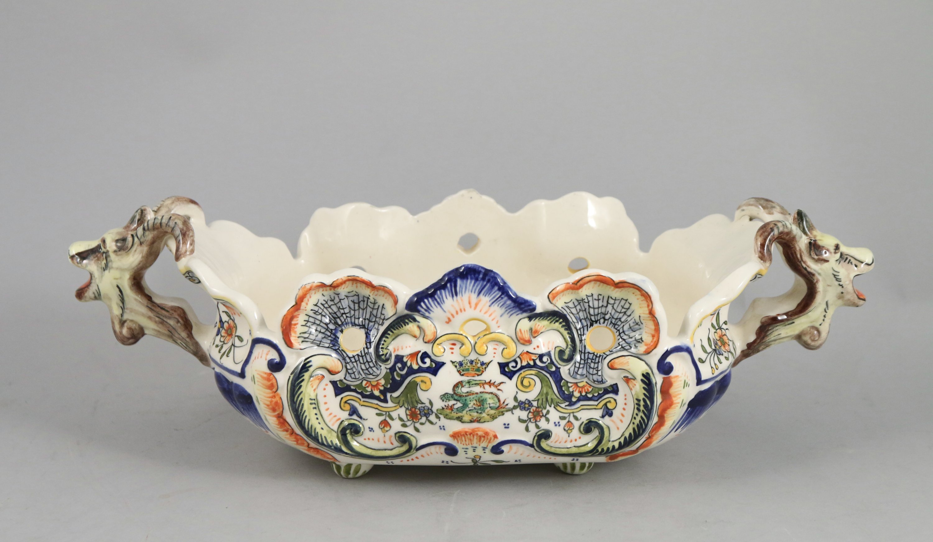 en faïence à décor polychrome d'une salamandre et rinceaux.