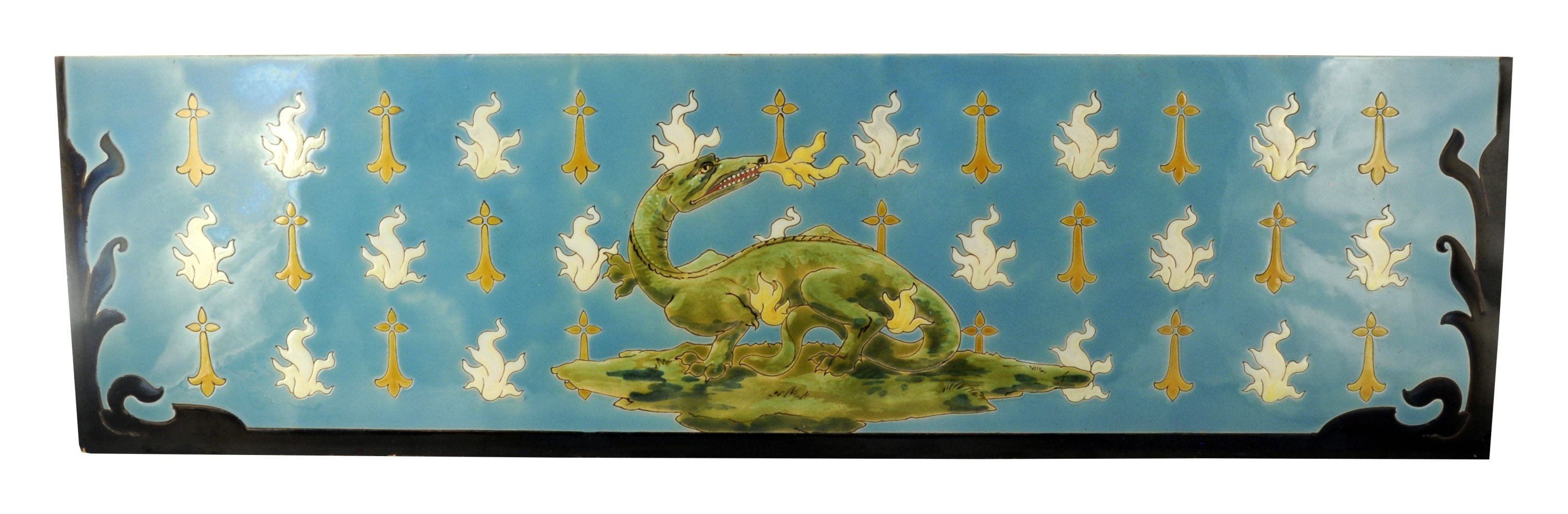 en faïence polychrome à décor dans un encadrement d'une salamandre sur un semis azur de flammes et pattes d'hermines.