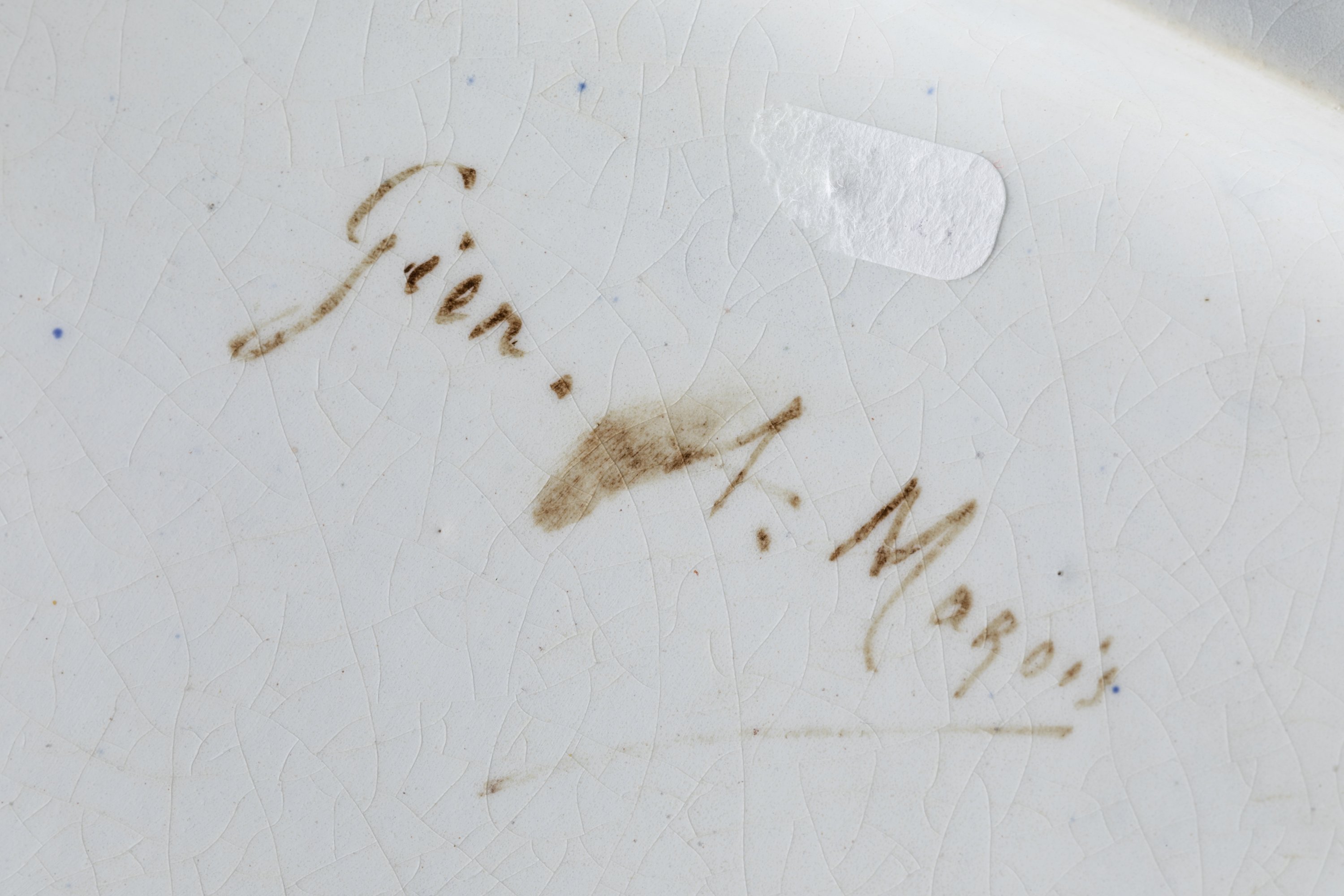 Marque de Gien olographe, circa 1871. Signée en bas à droite de chaque panneau et sous le fond " A.MAROIS ".