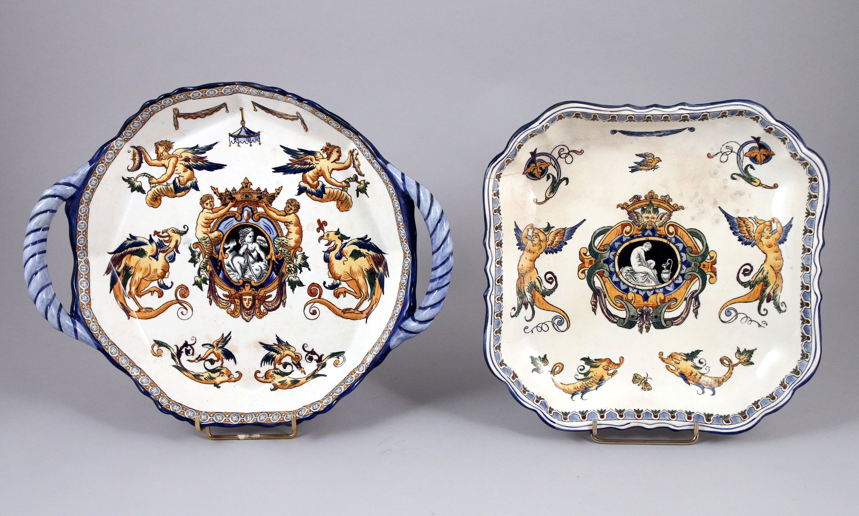 GIEN. Lot de deux PIÈCES en céramique émaillée: