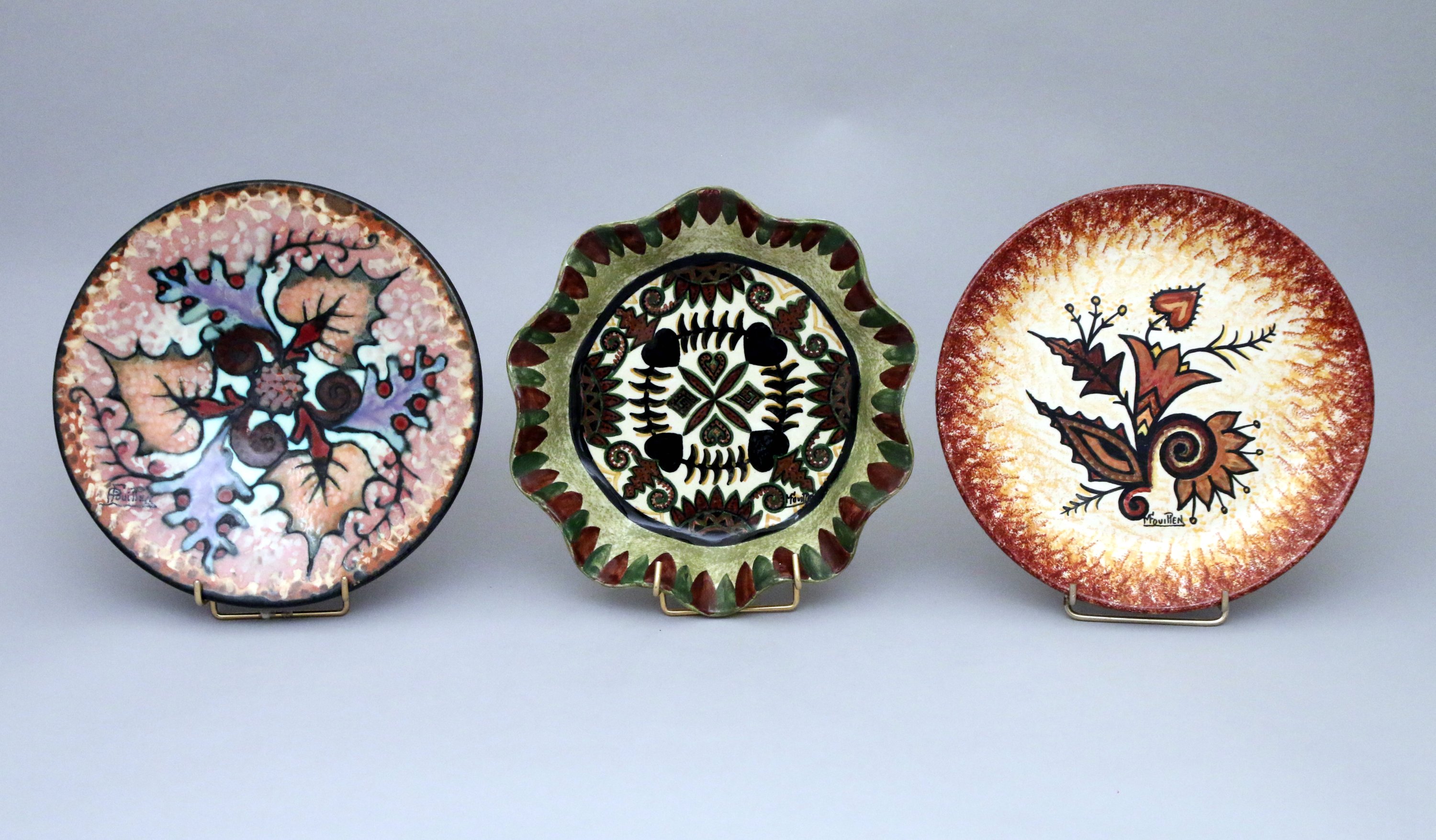 QUIMPER . Paul FOUILLEN (1899-1958). LOT de trois pièces en faïence: