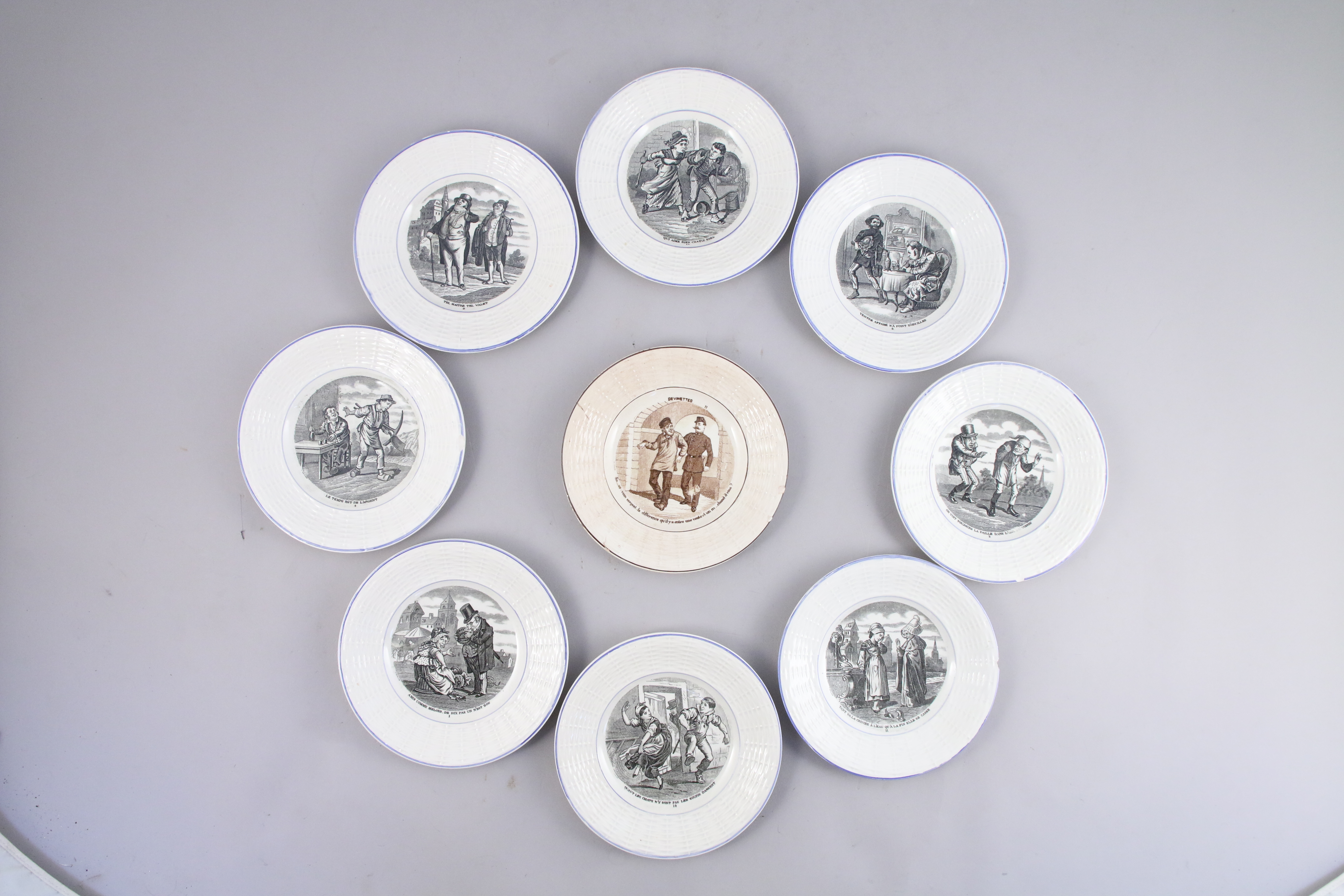 DIGOIN & SARREGUEMINES. SUITE de huit ASSIETTES à DESSERT parlantes