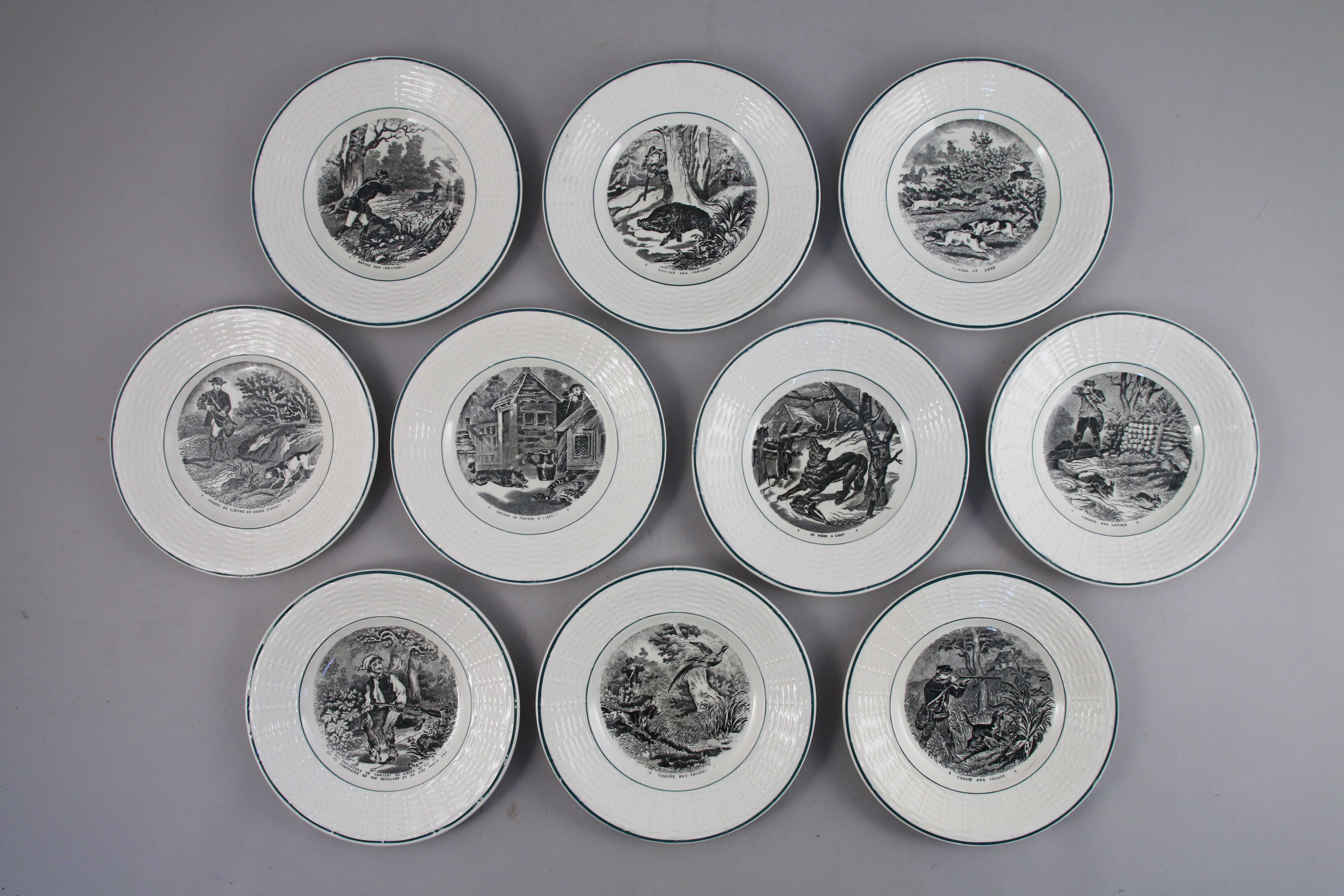 DIGOIN & SARREGUEMINES. SUITE de dix ASSIETTES à DESSERT parlantes