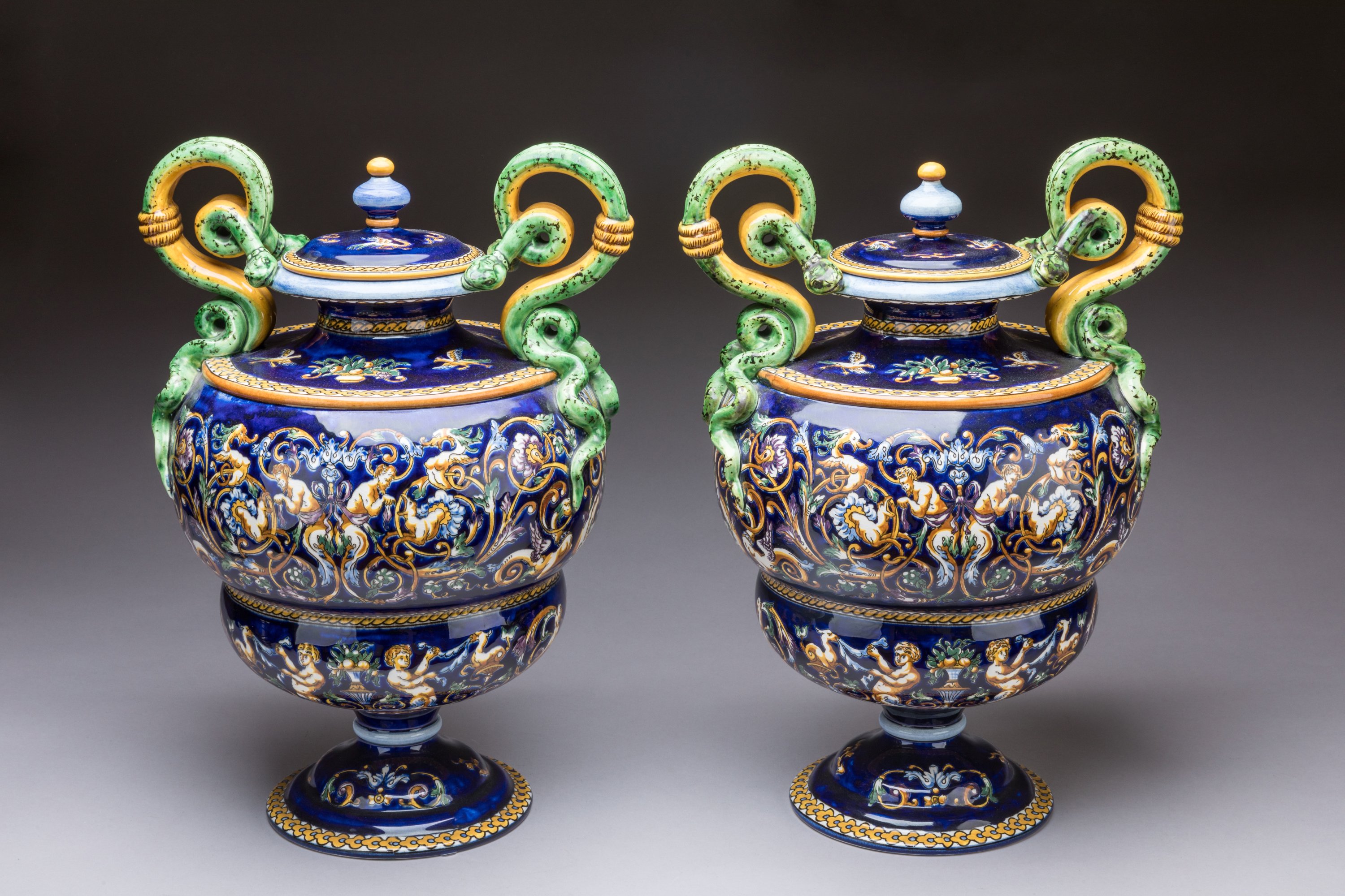 Paire de POTICHES VENTRUES aux SERPENTS